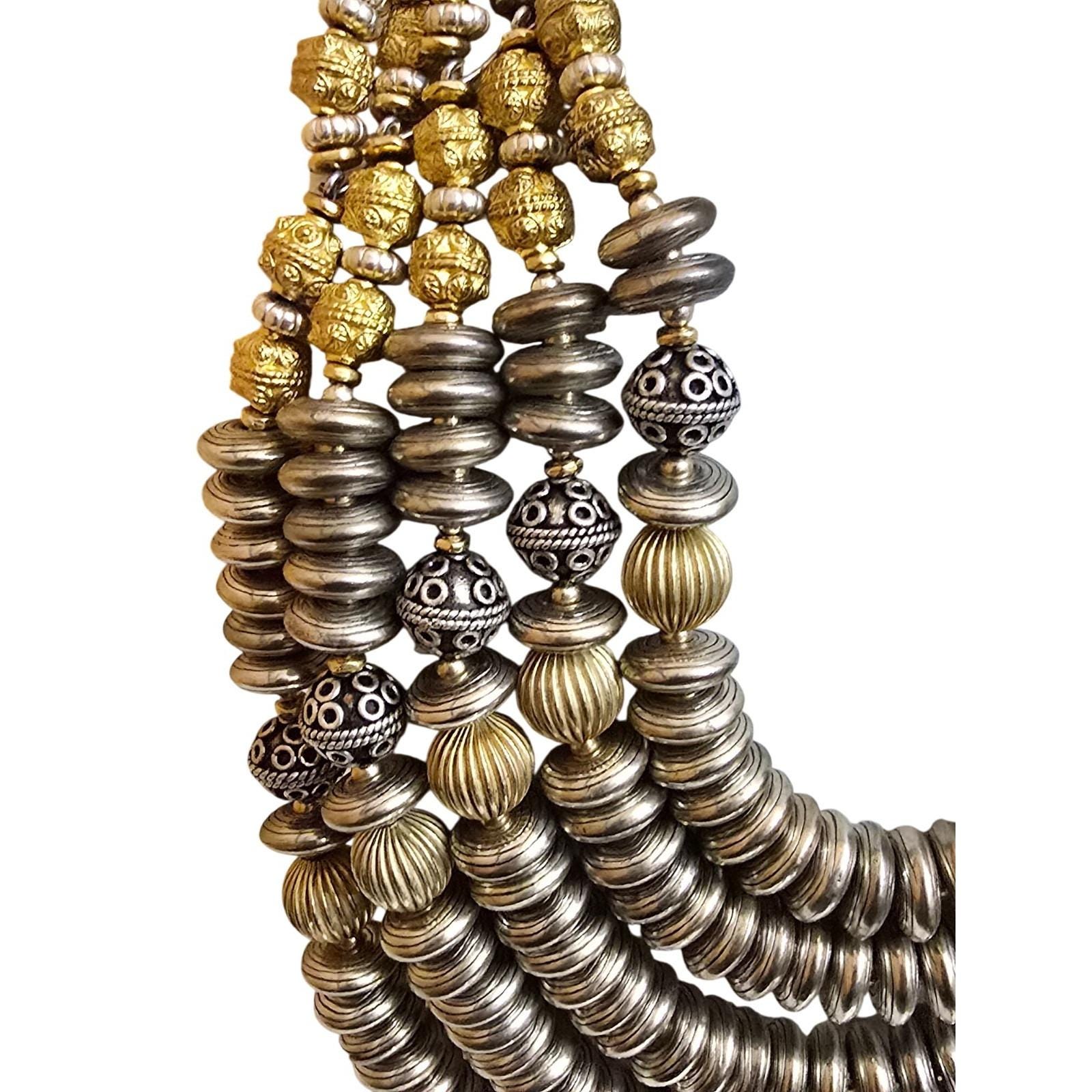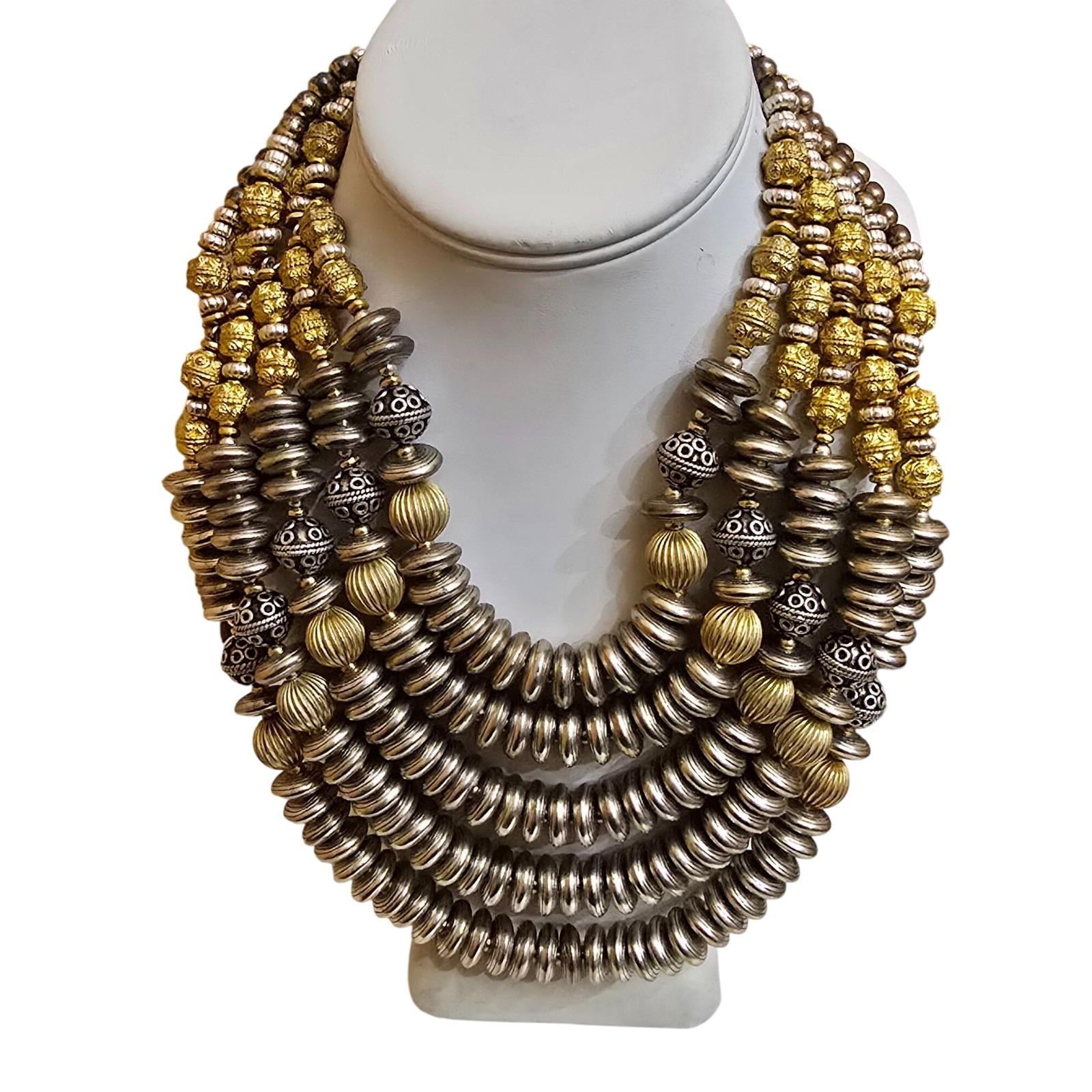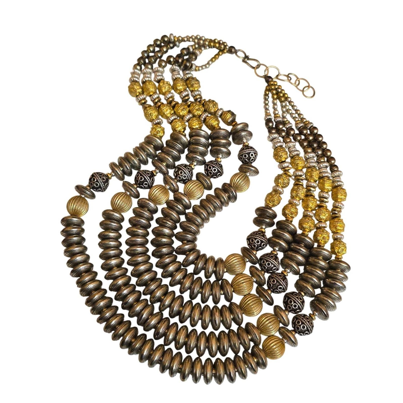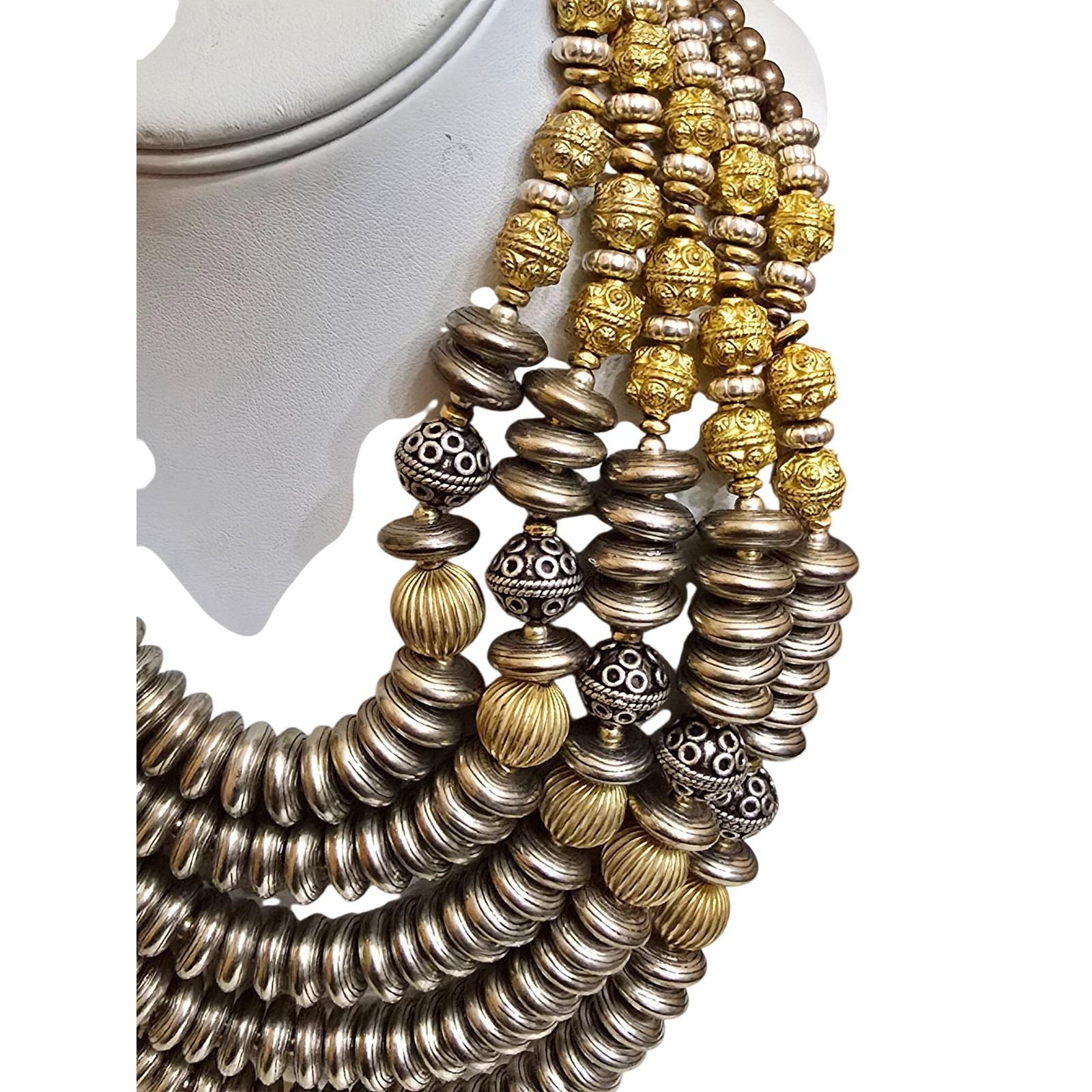 Vintage Gold Silver Tone 5-Strand Heavy Full Necklace (A9429)