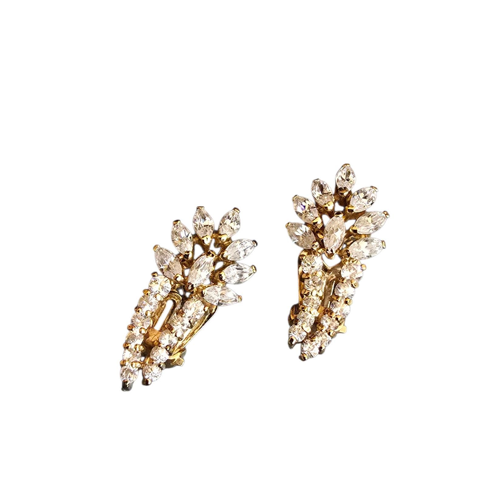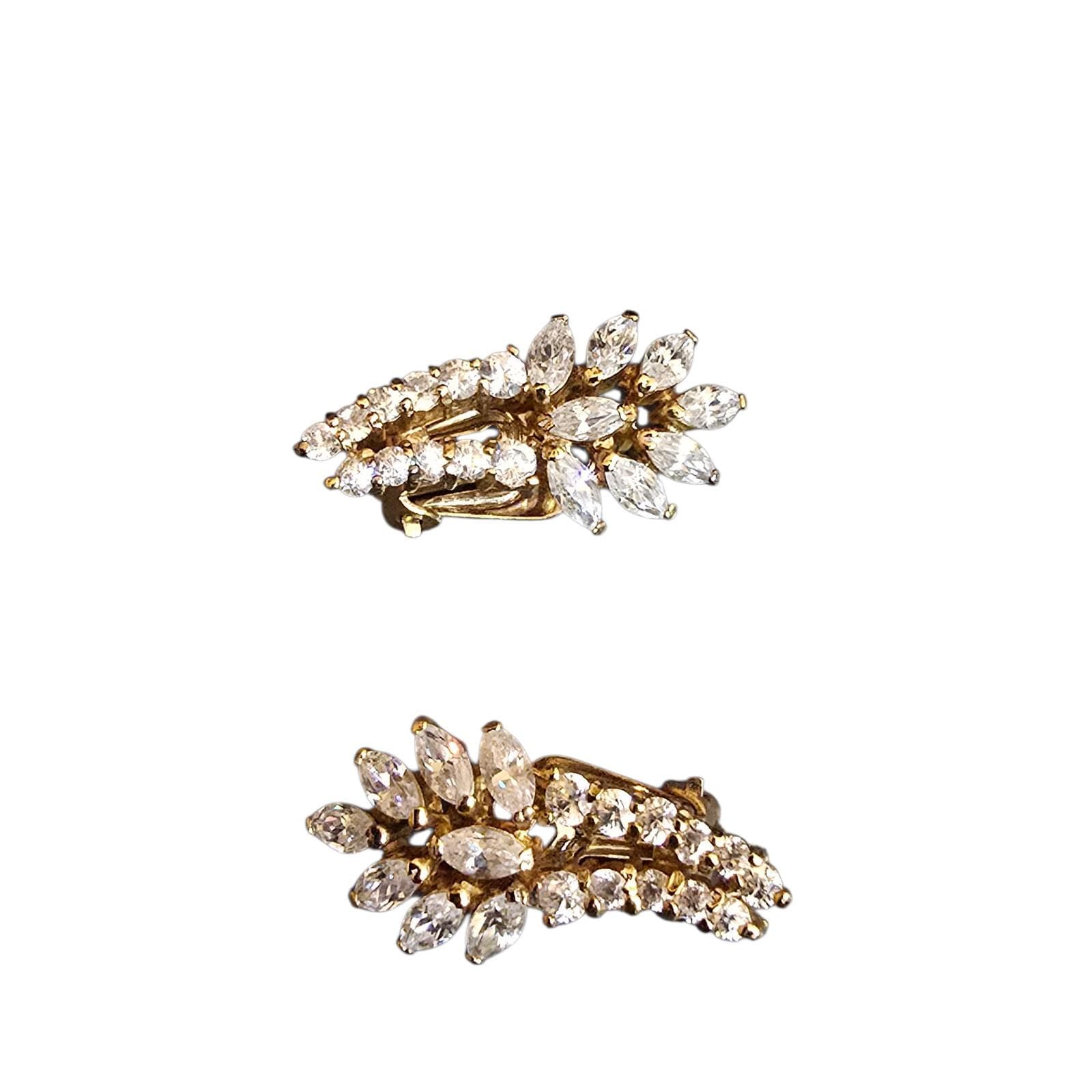 Vintage 925 Sterling CZ Clip Earrings (A9465)