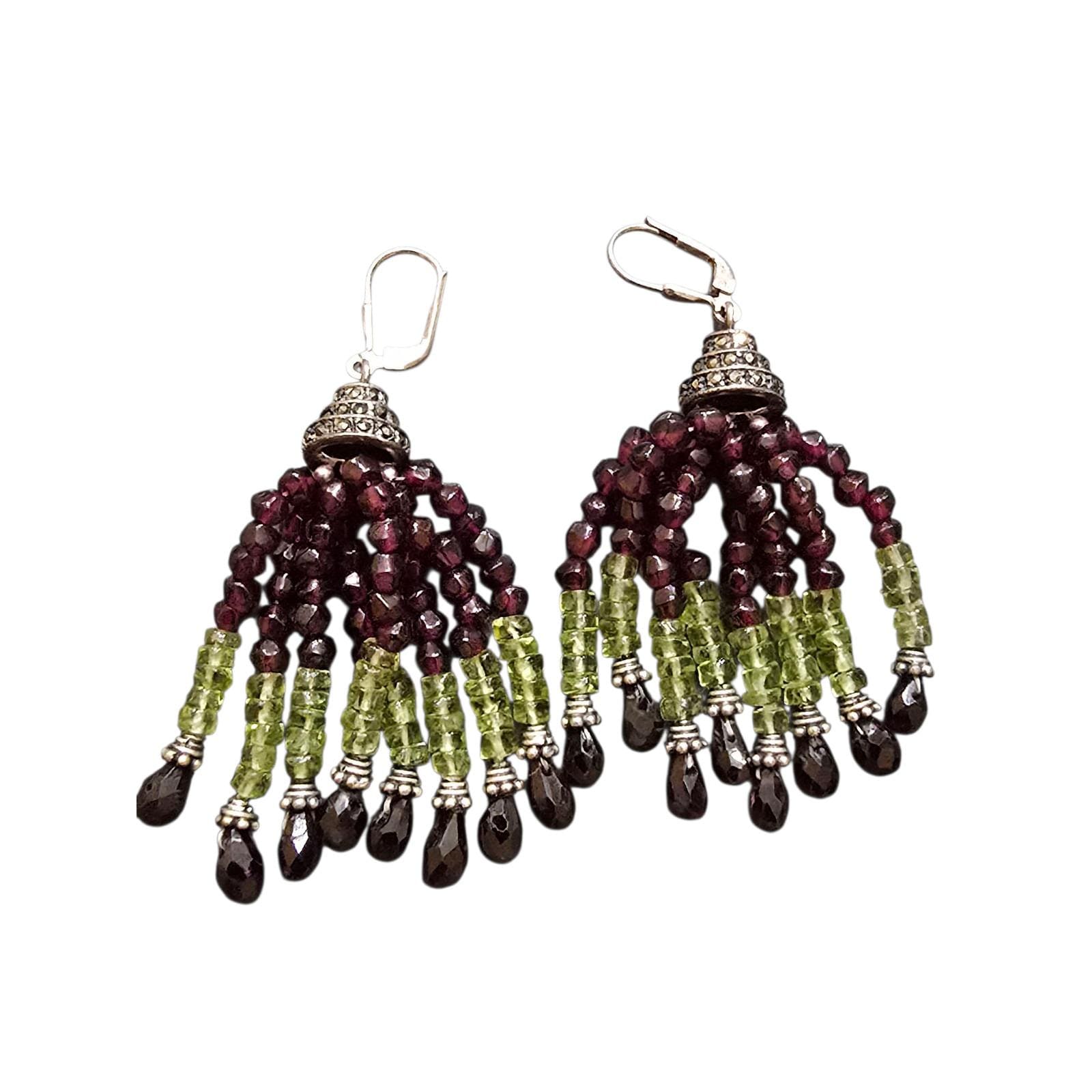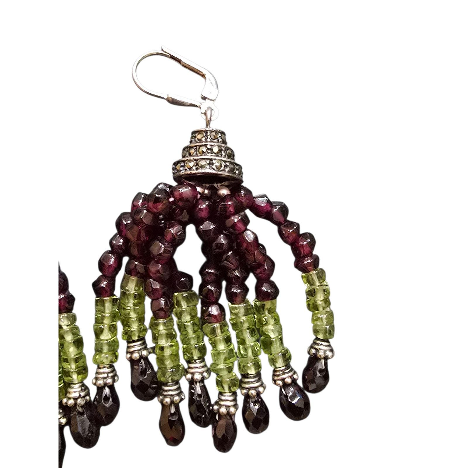 Beautiful 925 Marcasite And Semi Precious Stone Tassel Earrings (A9491)
