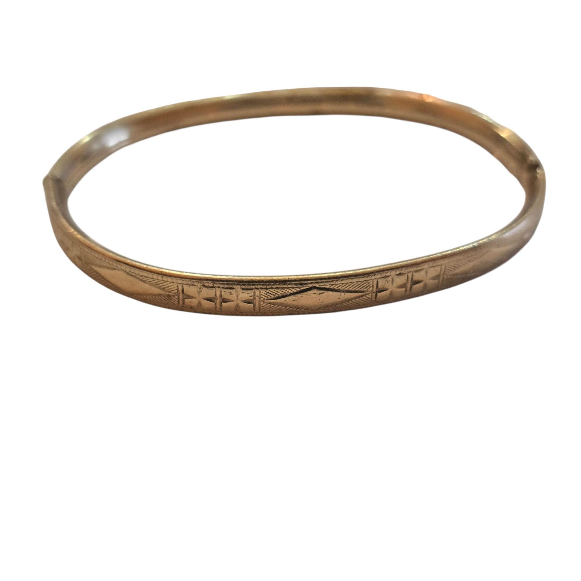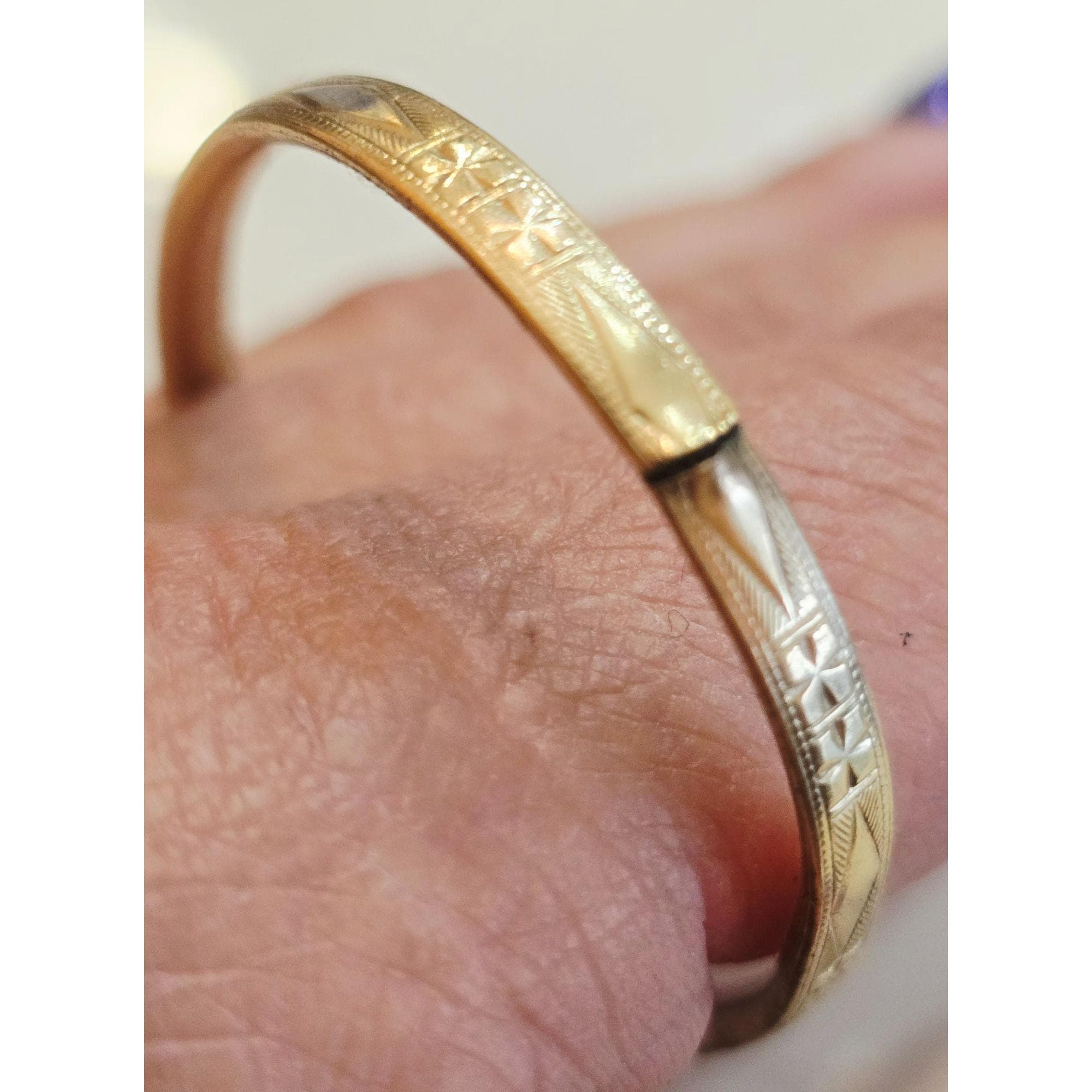 Vintage 12kt Gold Filled Signed Etched All Over Baby Bangle Bracelet (A9587)