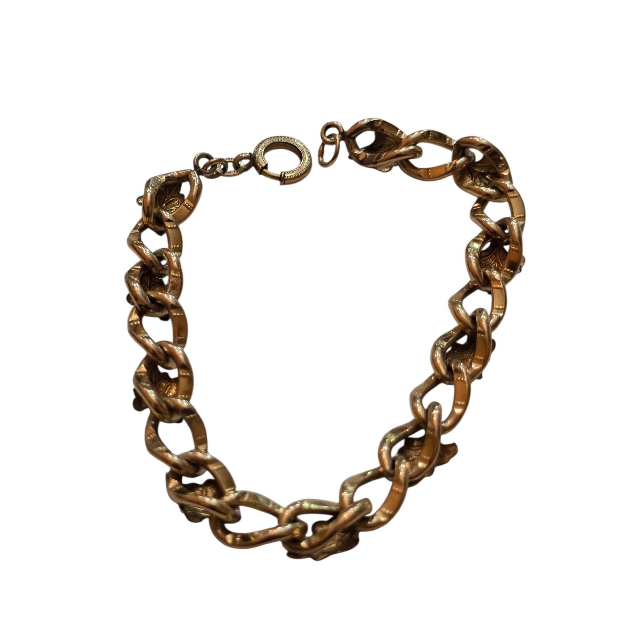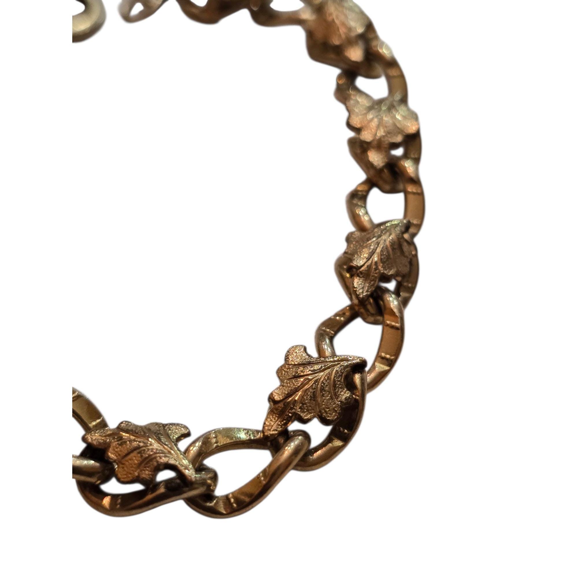 Antique Gold Filled Leaf Charm Detailed Bracelet (A3801)
