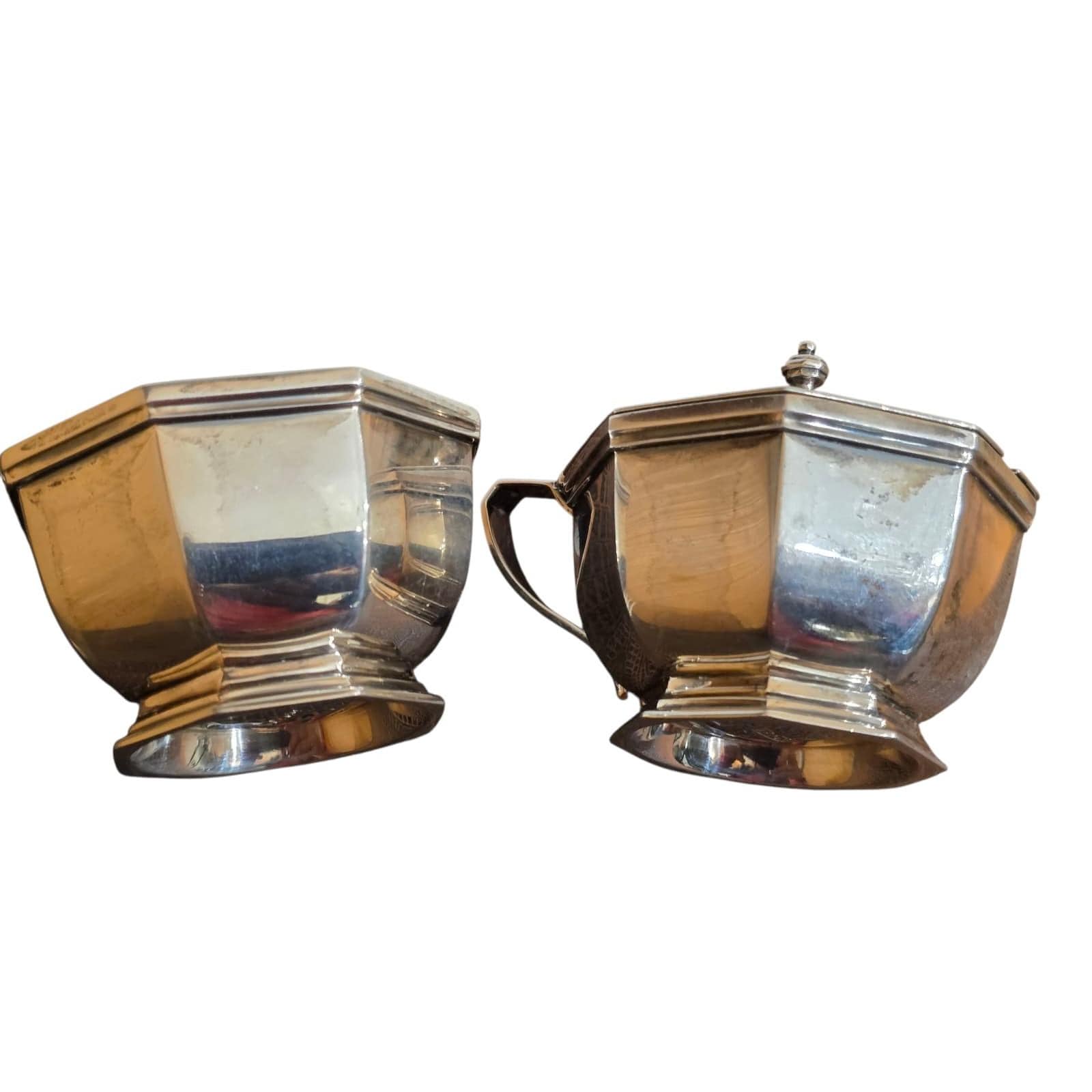 Details: All pieces marked & hallmarked. From around 1908. Amazing, superb quality. Liners come out. Weight is 6.4 ounces without glass, including spoons.