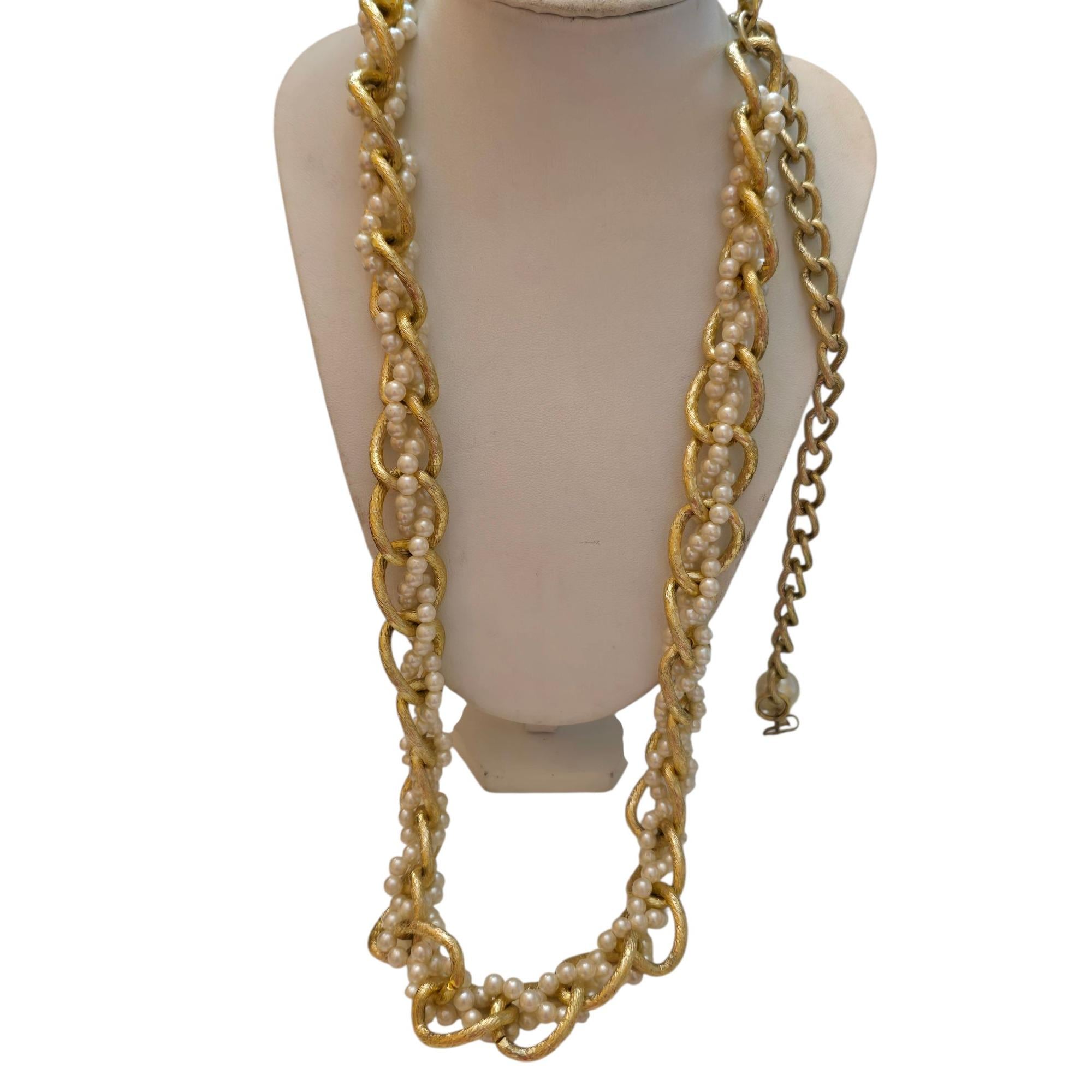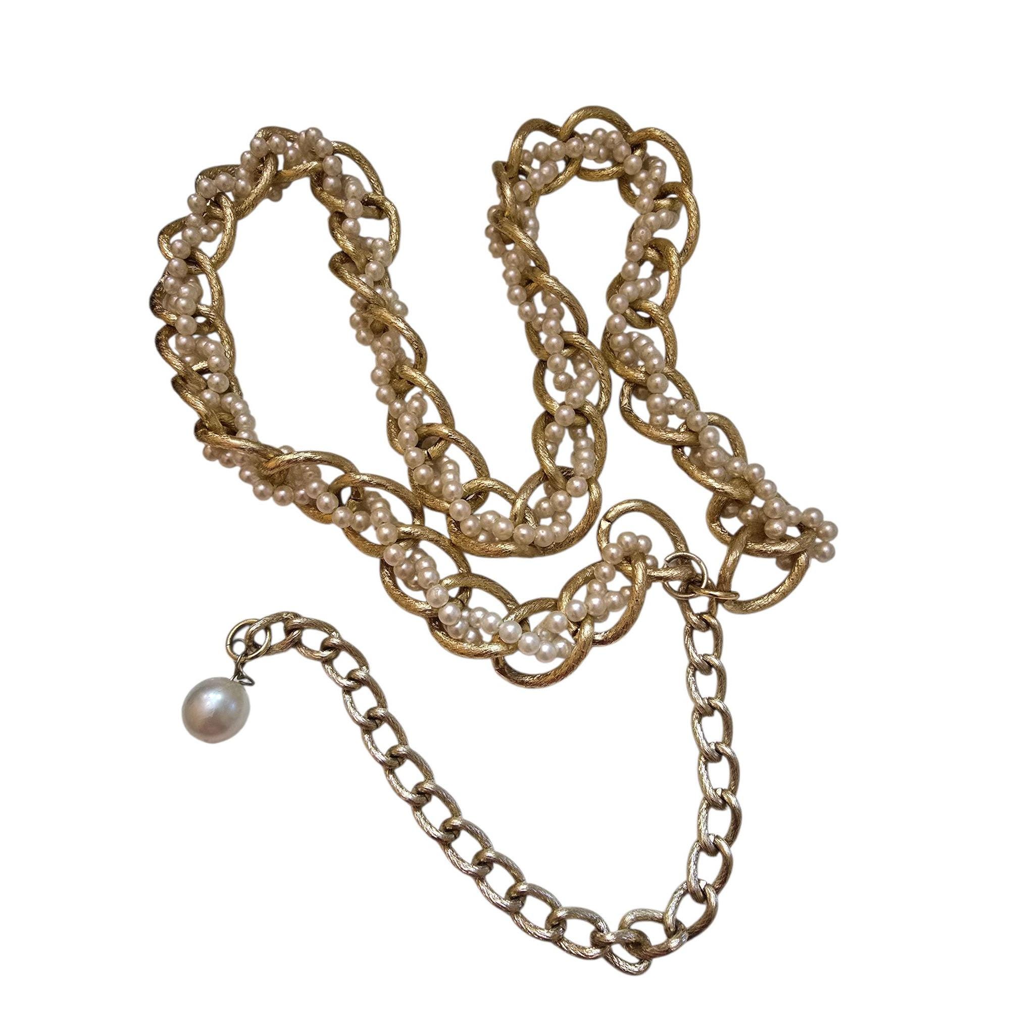 Vintage 60s Lightweight Brushed Gold with Woven Pearl Belt/Necklace (A5212)