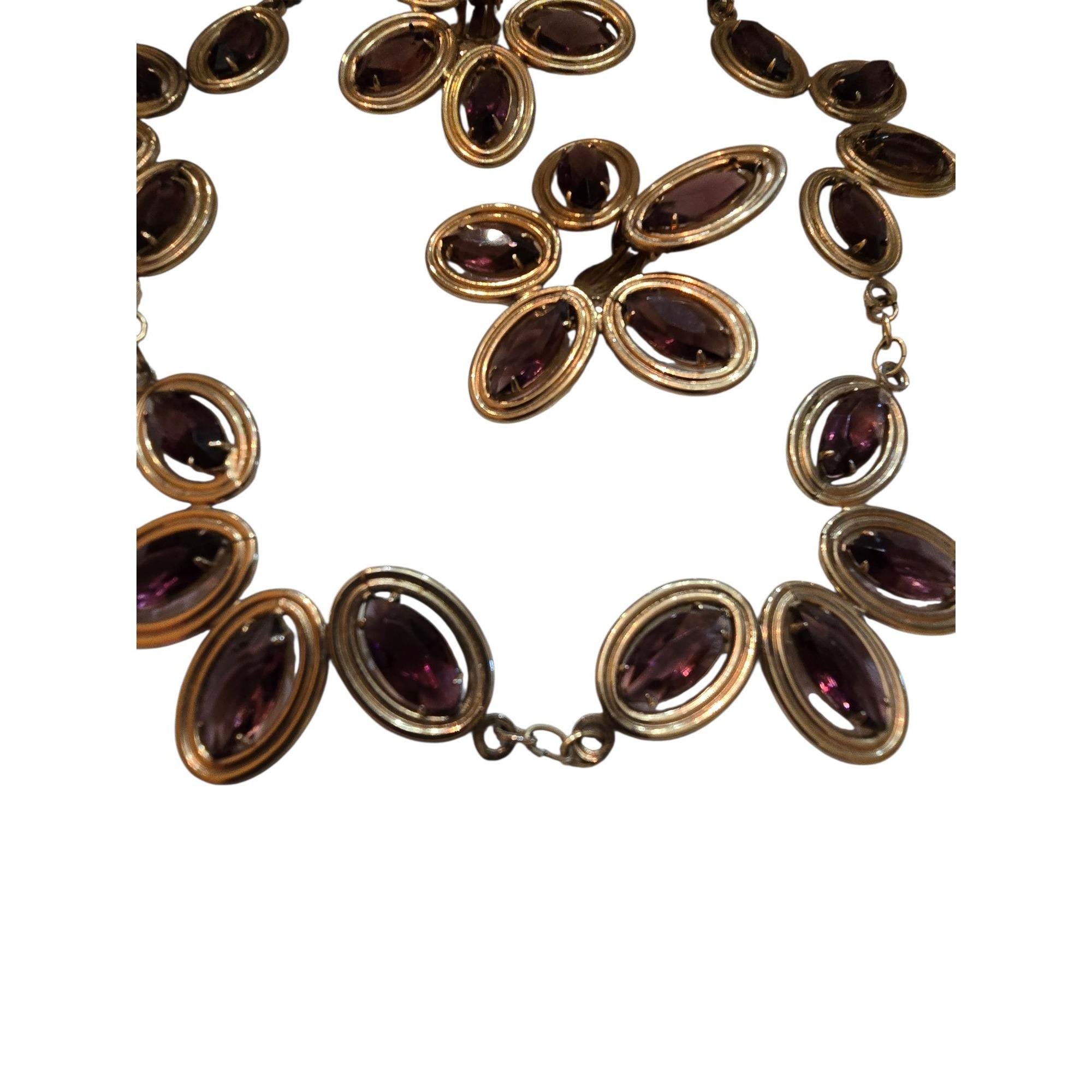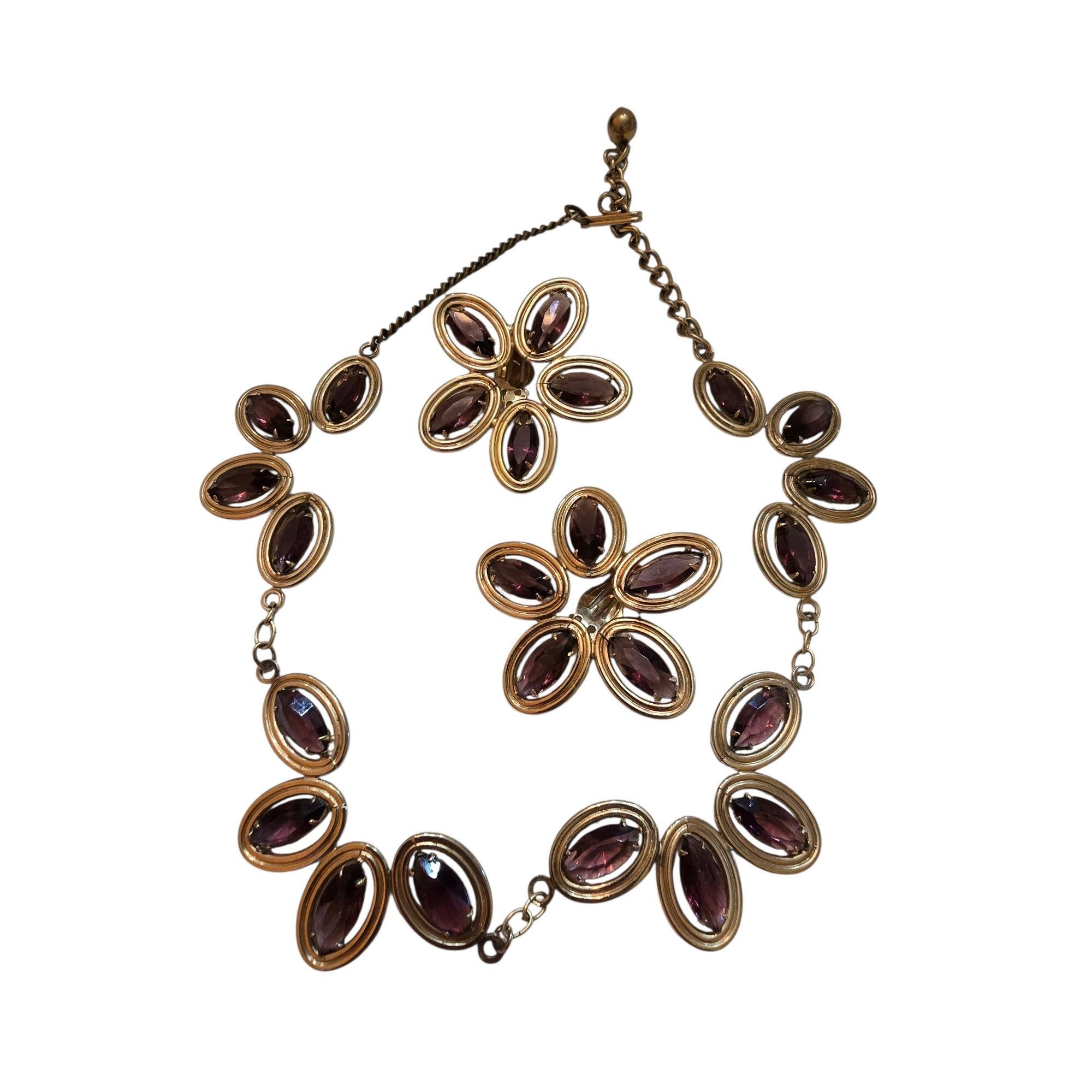 Vintage Purple Glass Collar Necklace & Clip Earrings (A5389)