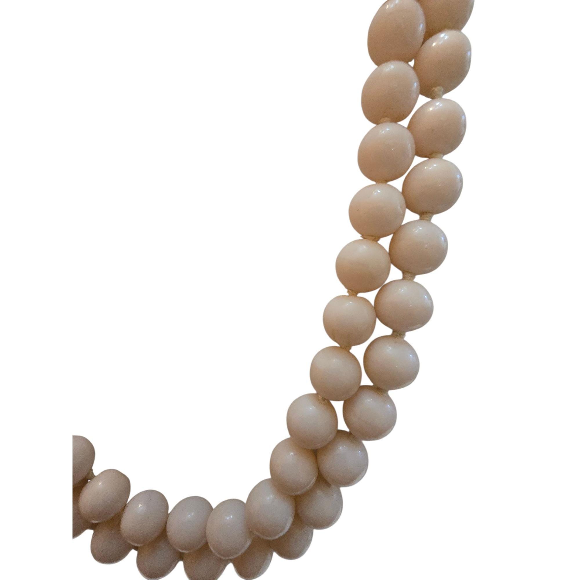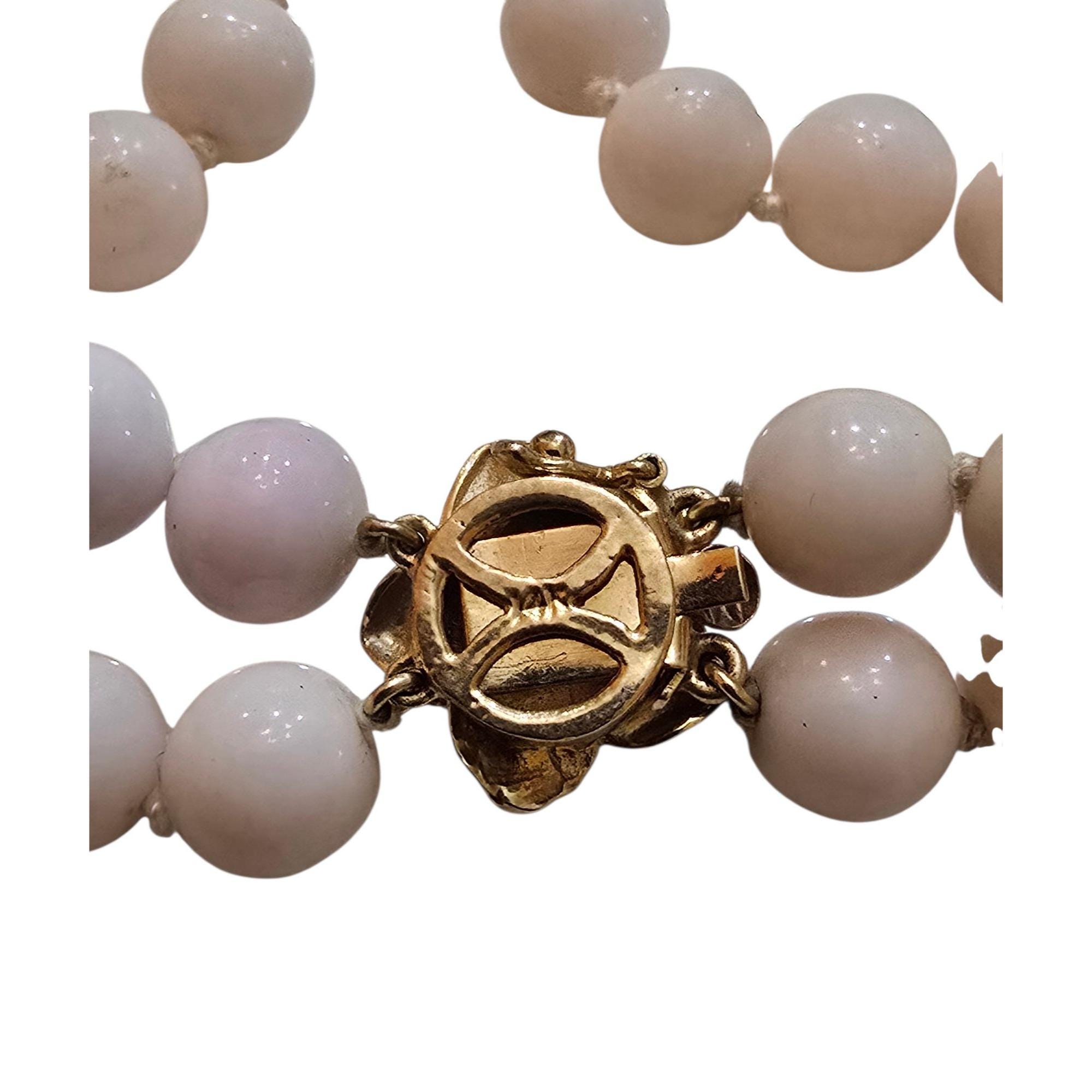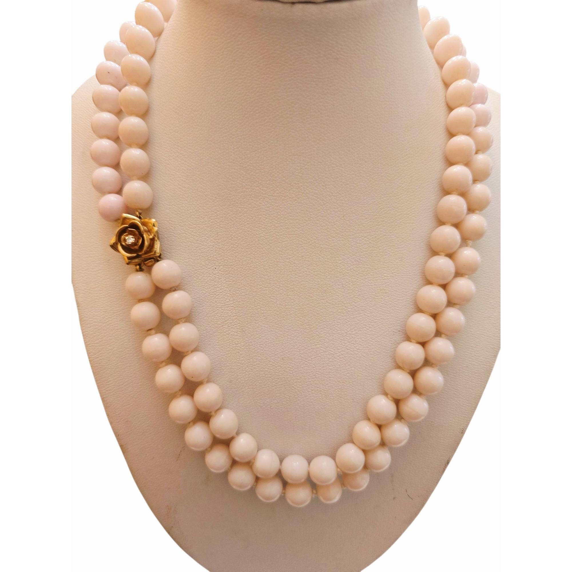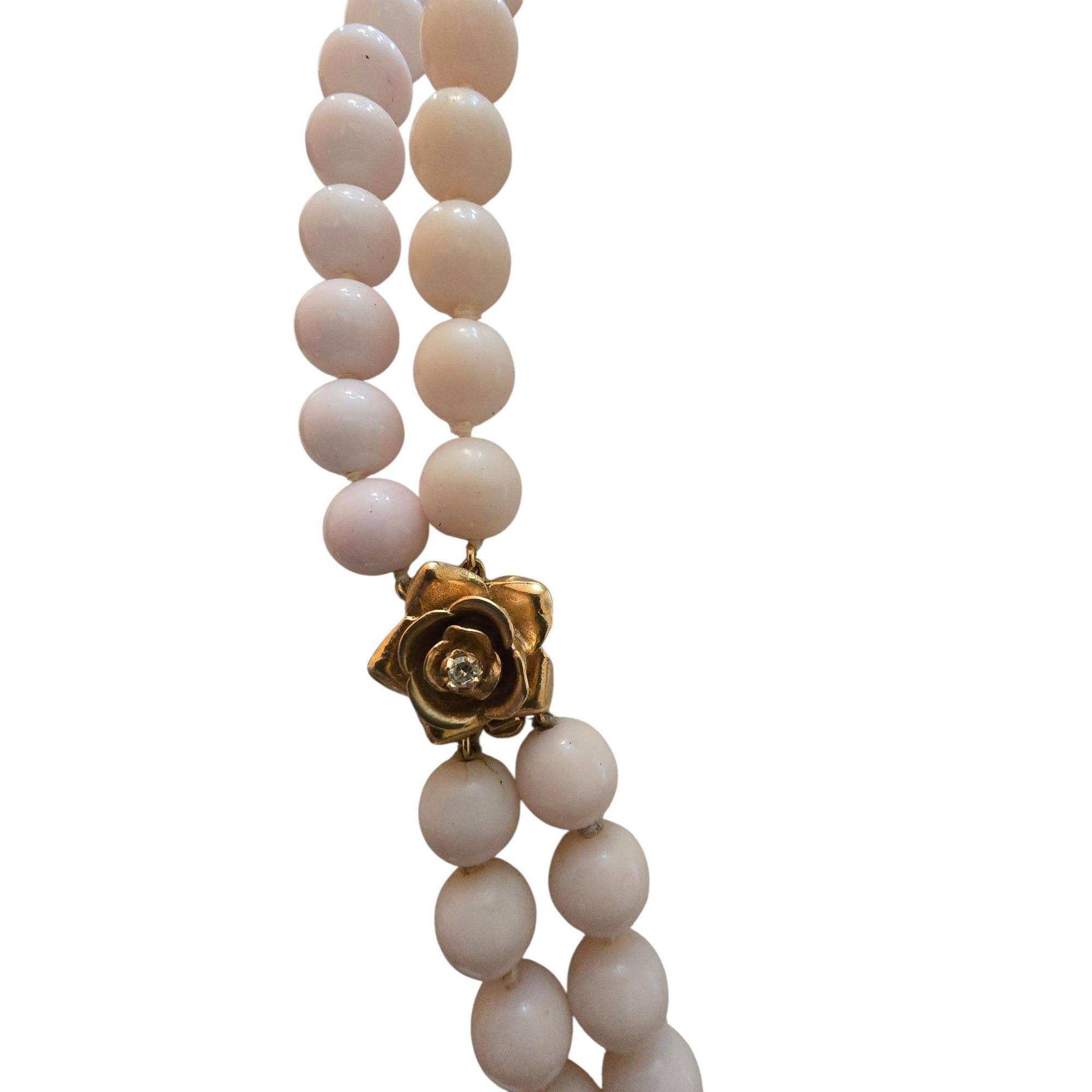 Vintage Angel Skin Coral Double Strand Necklace with 14kt Gold Flower Clasp & Tiny Diamond (A5793)