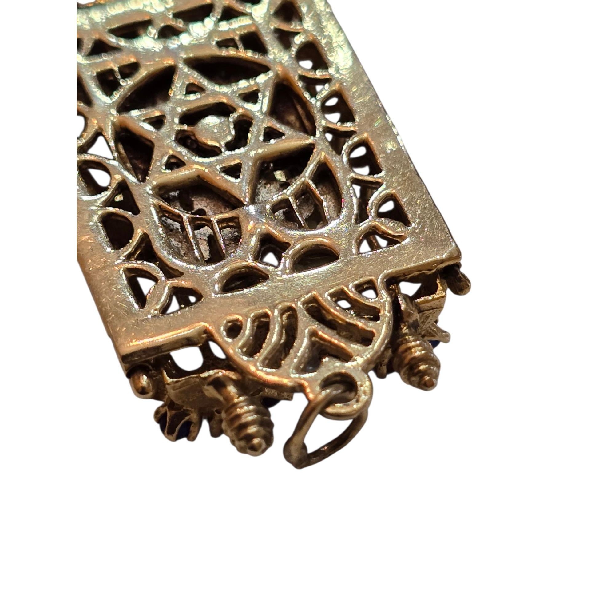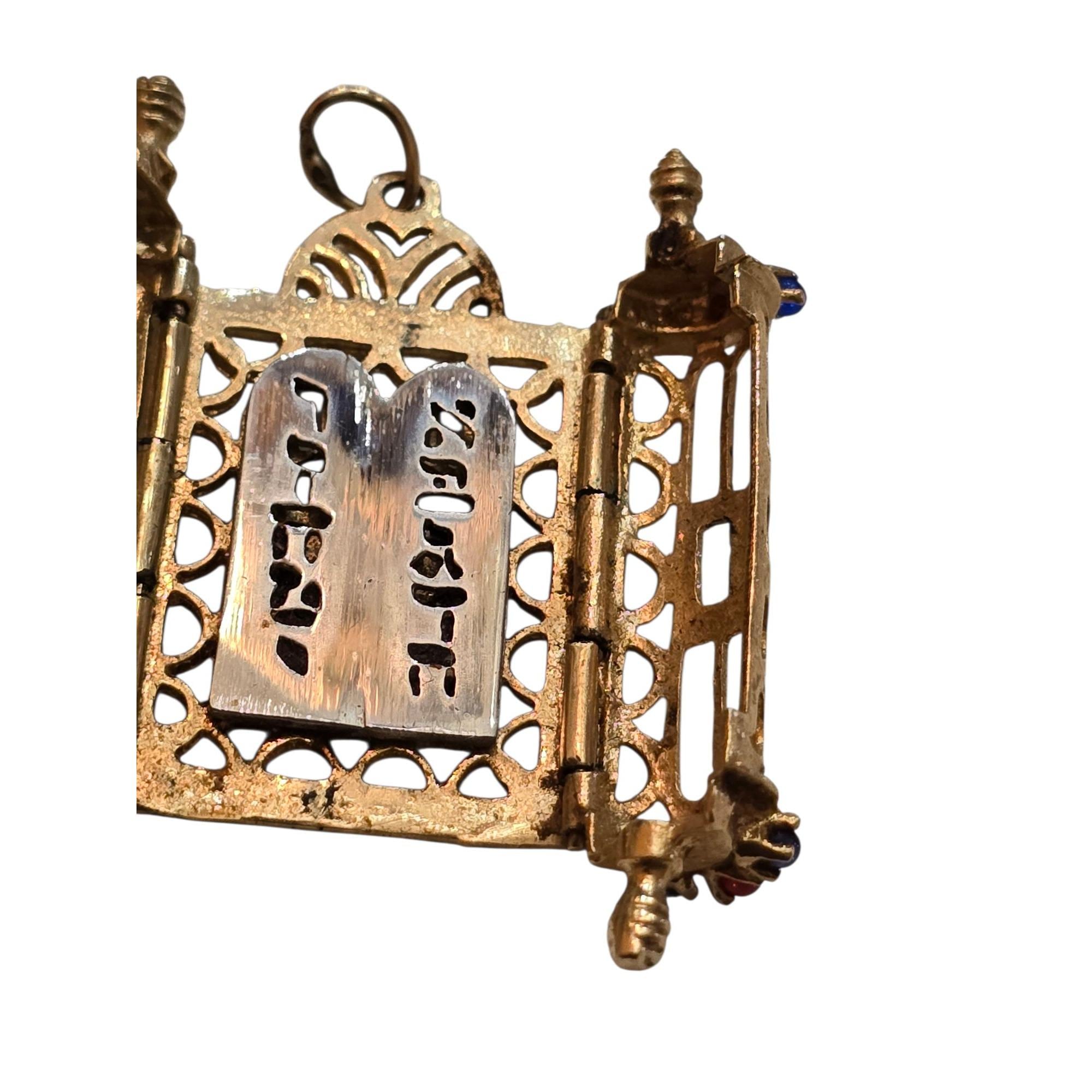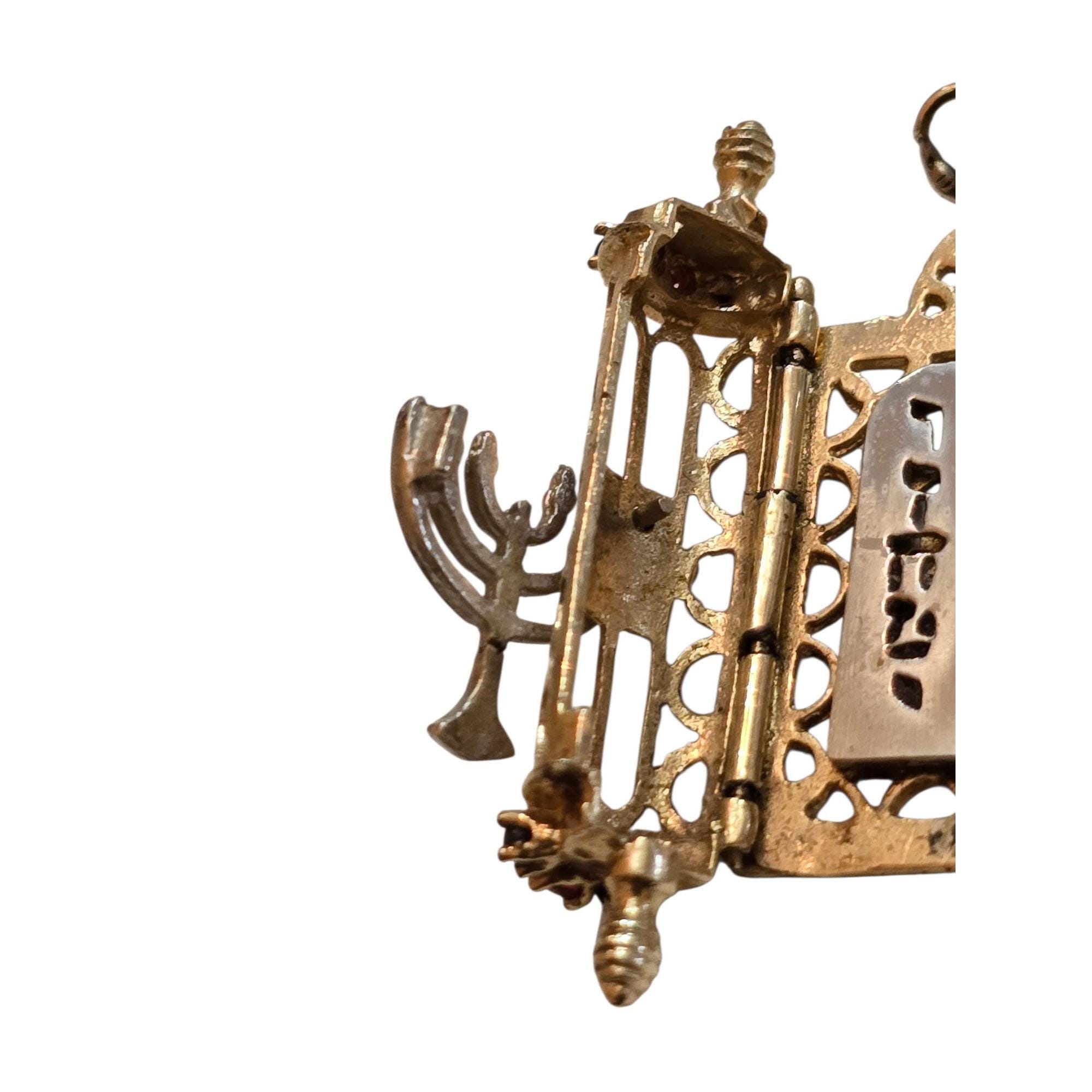 Details: Weighs 11.49 grams. Marked on the bottom back, exceptional craftsmanship, menorah & tablet are 14kt white gold. Intricate detail to the back, opens & shuts well.