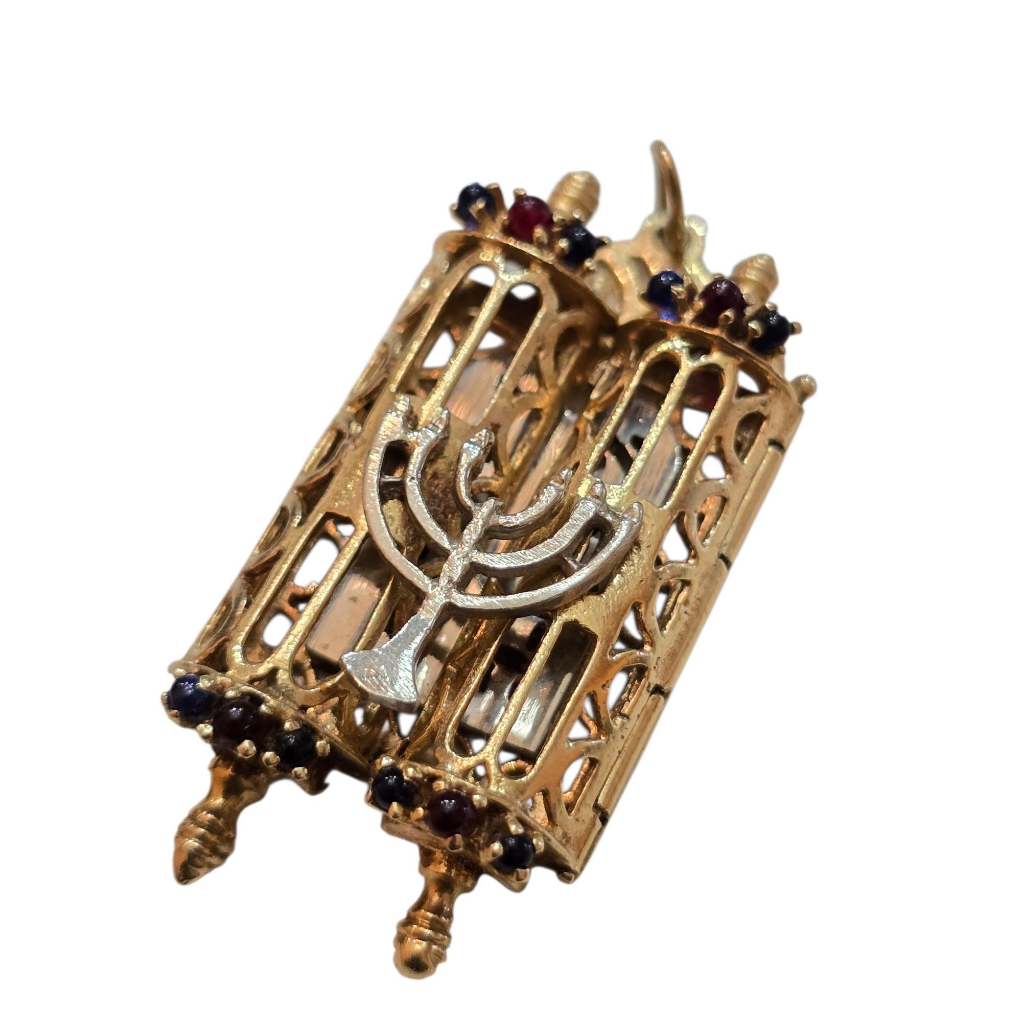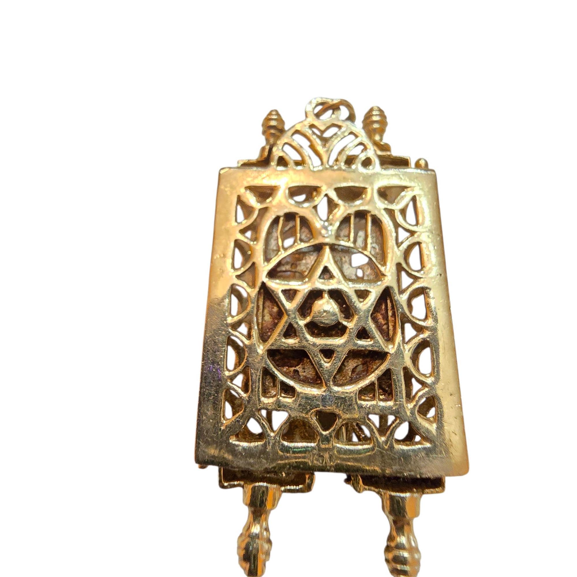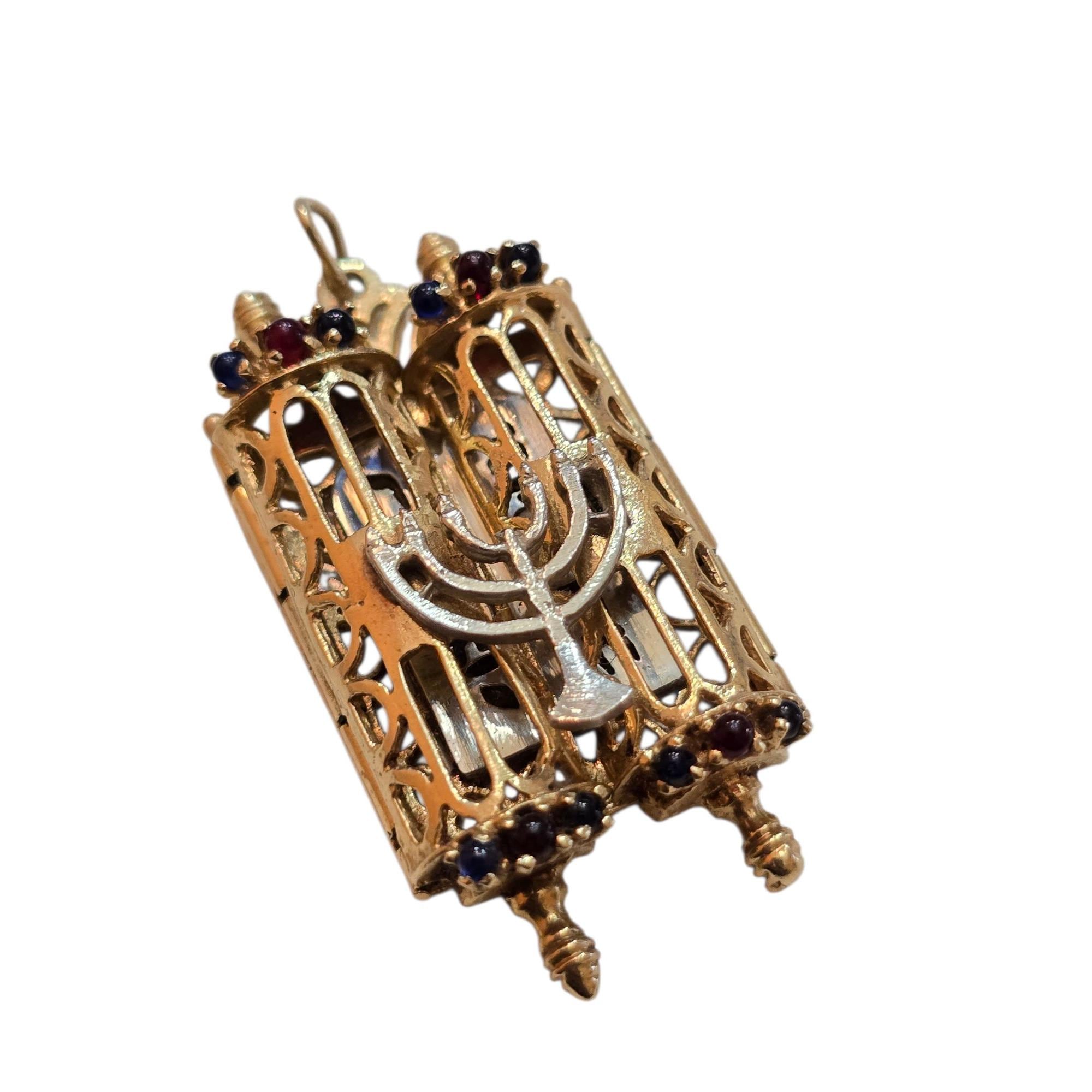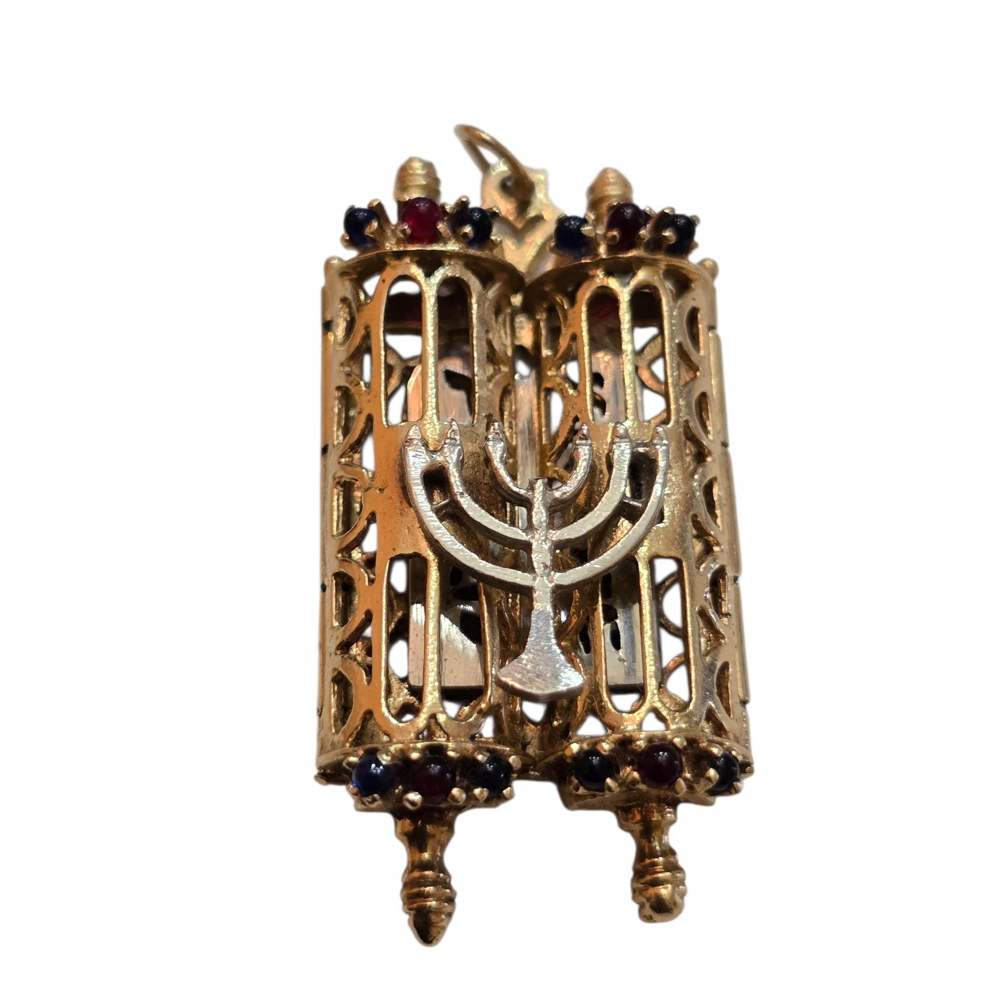 Vintage Exceptional 14kt Torah Pendant with Menorah & Jewish Star and Sapphires (A6532)