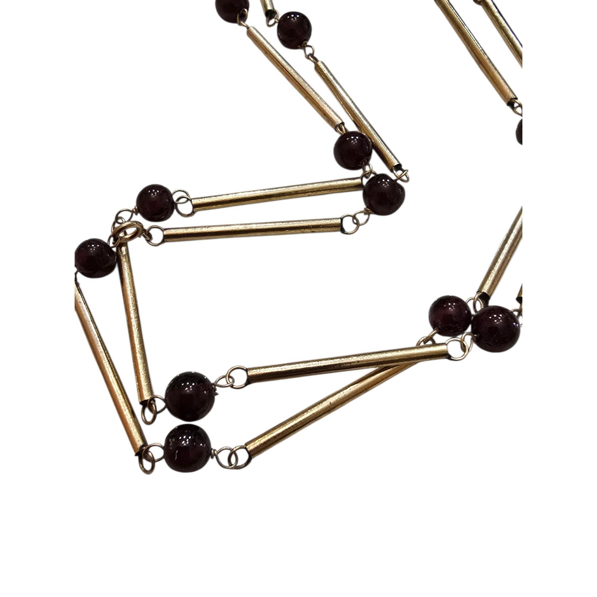 Antique Tubular 18kt Gold & Garnet Beaded Necklace (A6549)