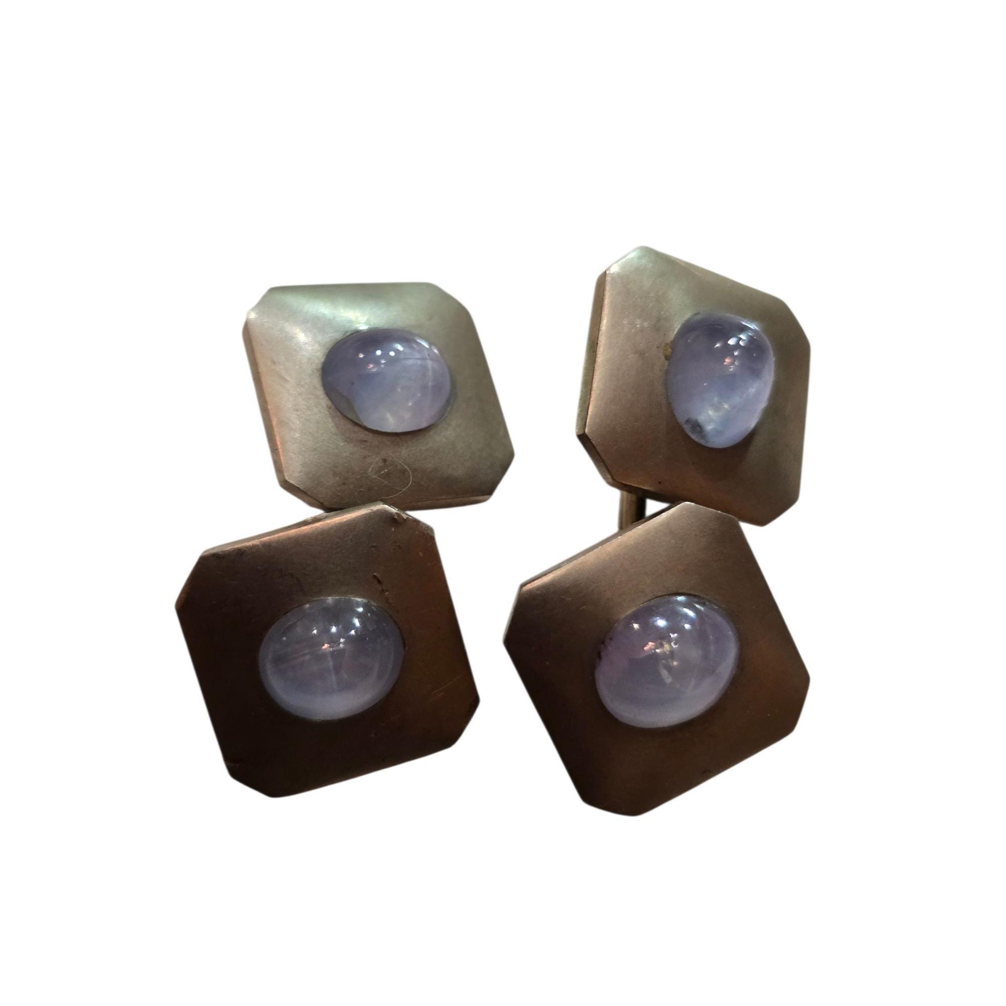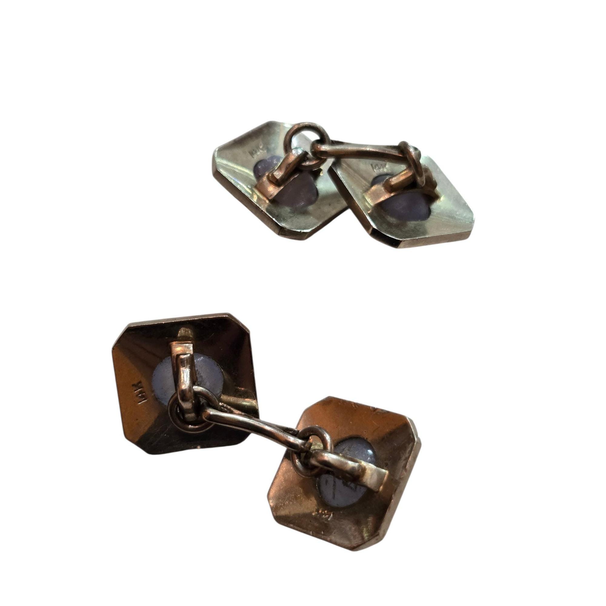 Antique 14kt White Gold Cufflinks with Star Sapphires (A7751)