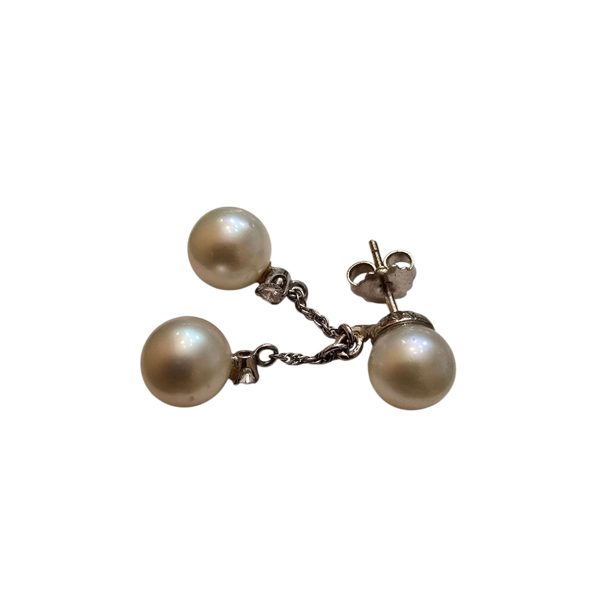 Vintage Single (1) 14kt White Gold Pearl & Diamond Pierced Earrings (A7744)
