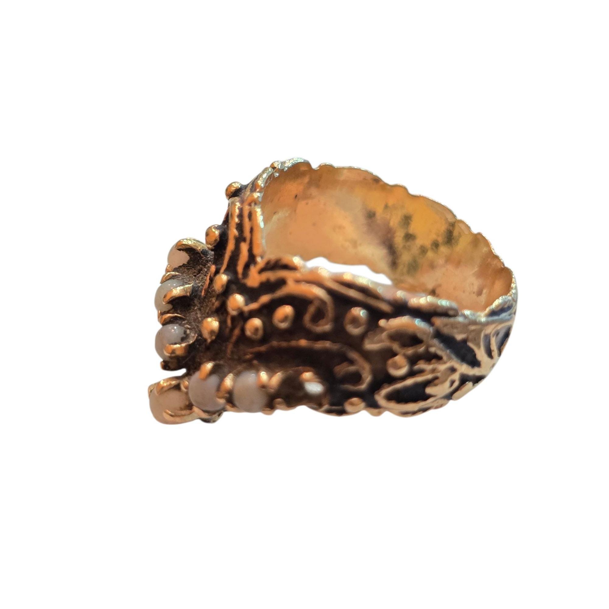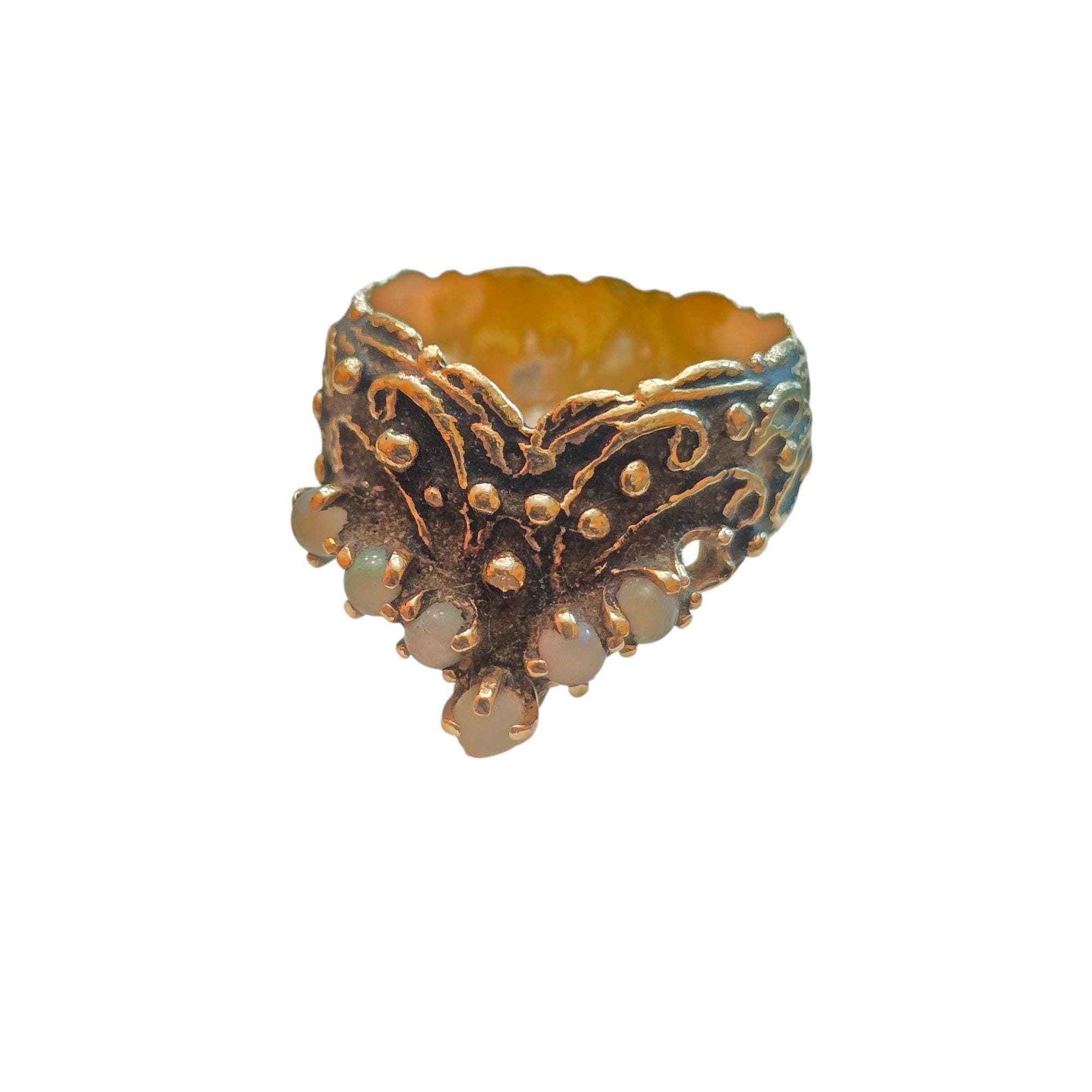 Antique Elaborate 14kt Gold with Tiny Opal/Quartz Stones Ring Size 5.5 (A7770)