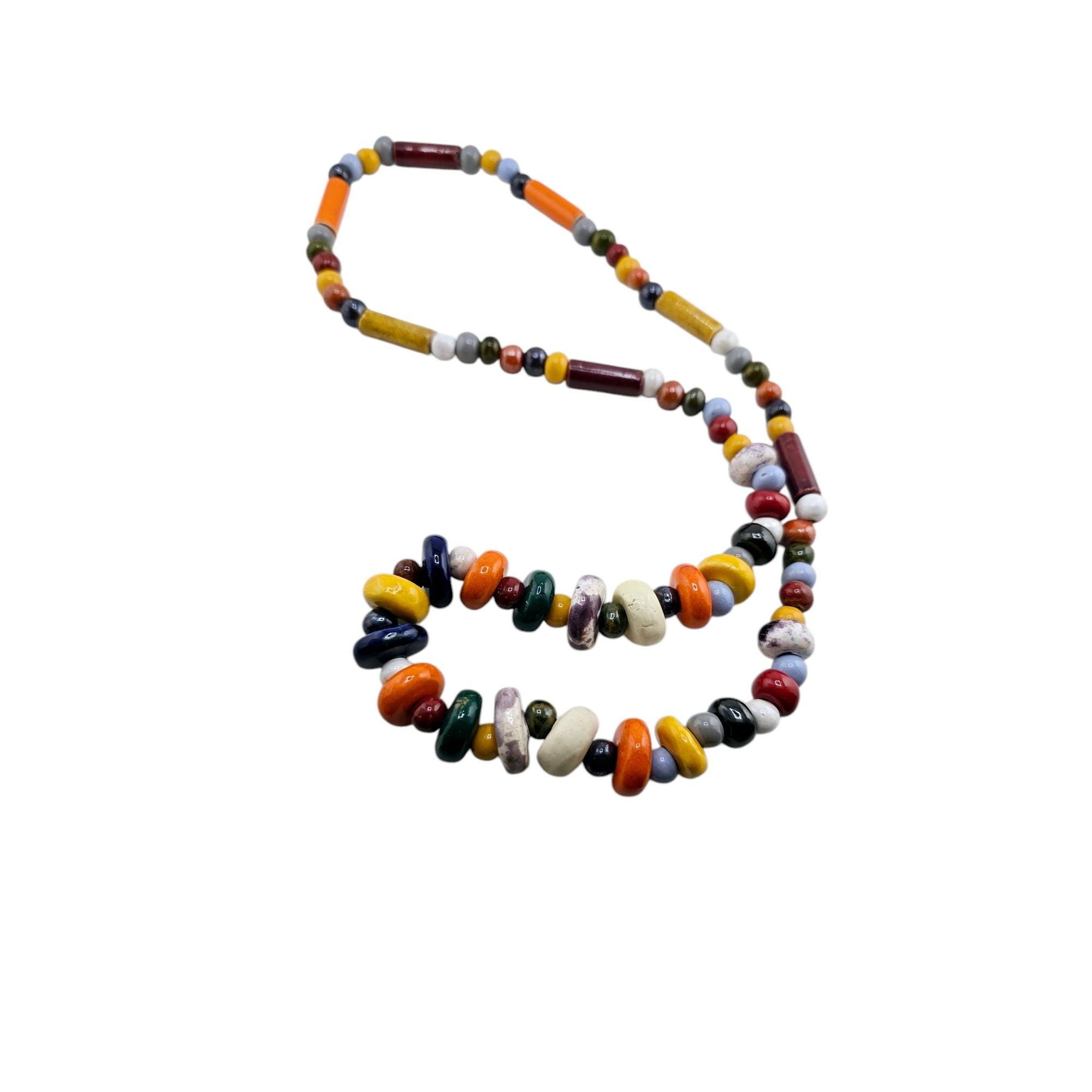 Vintage Porcelain Long Loop Over Necklace (A8286)