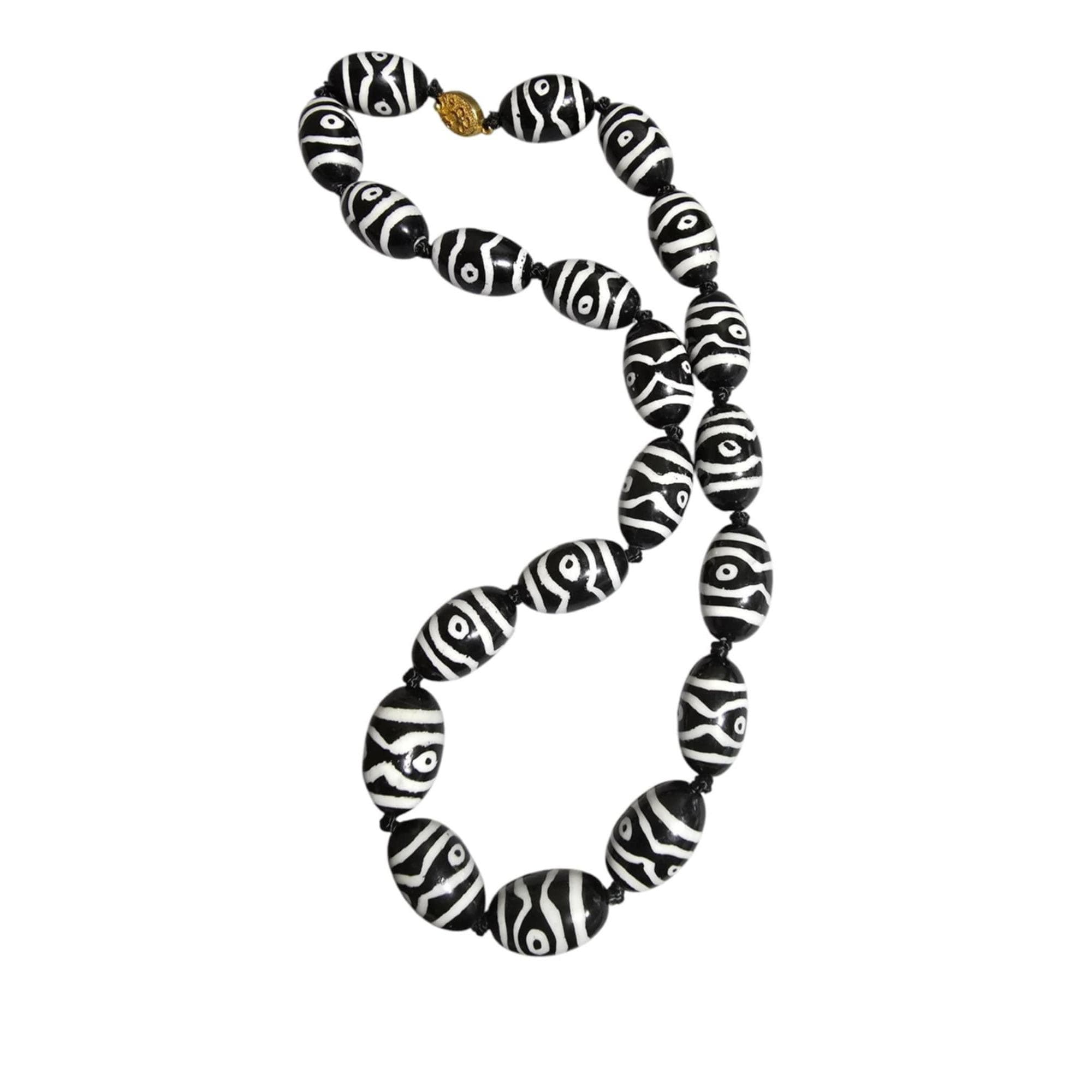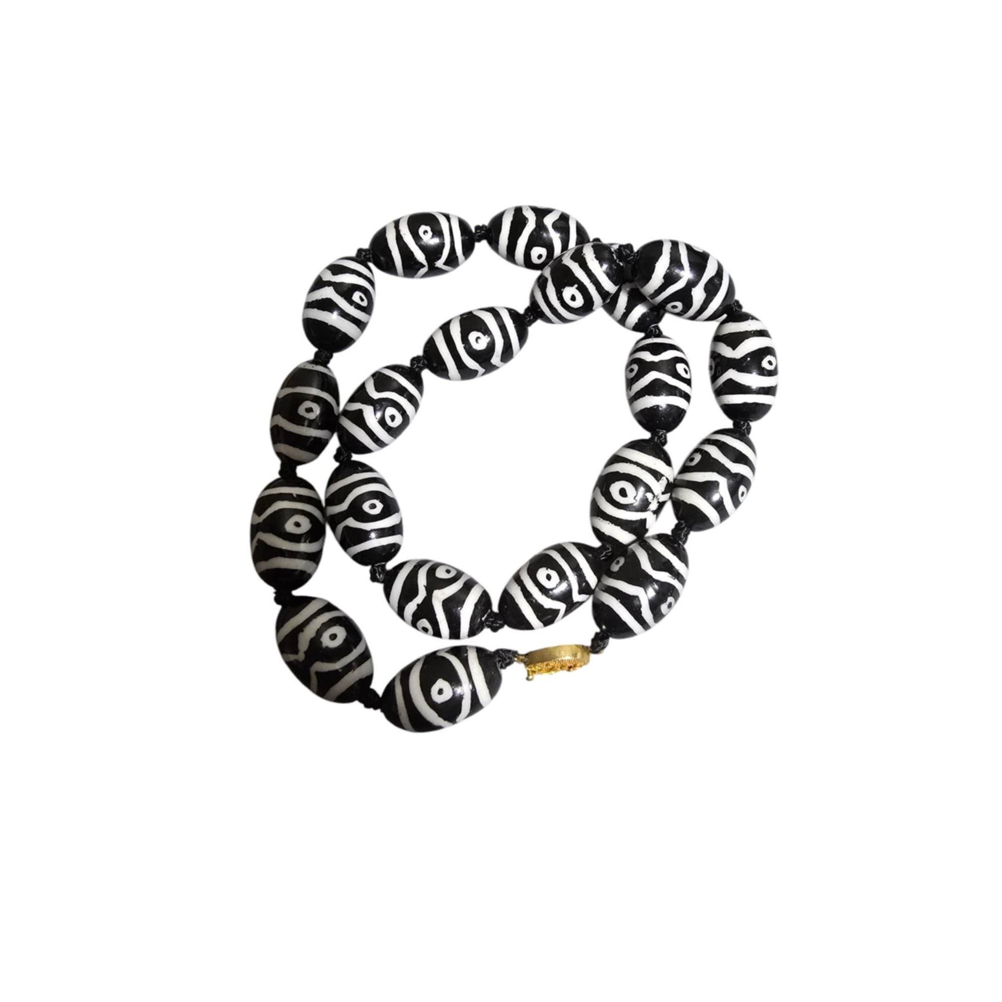 Vintage Hand-Knotted Heavy Porcelain Necklace with Probably Silver Clasp (A8287)