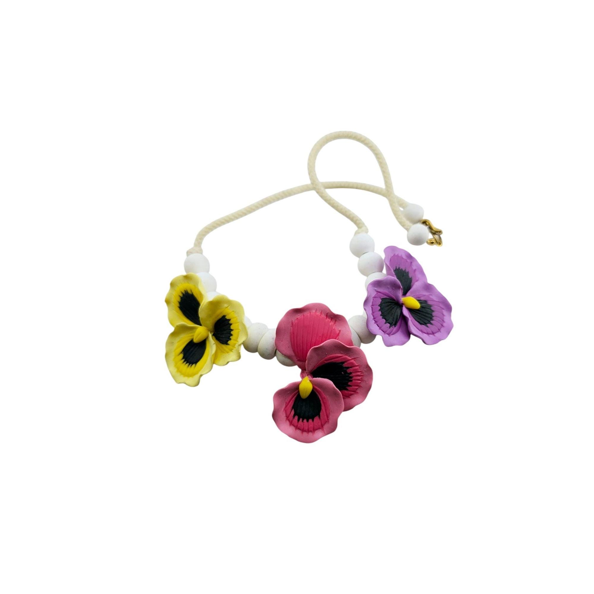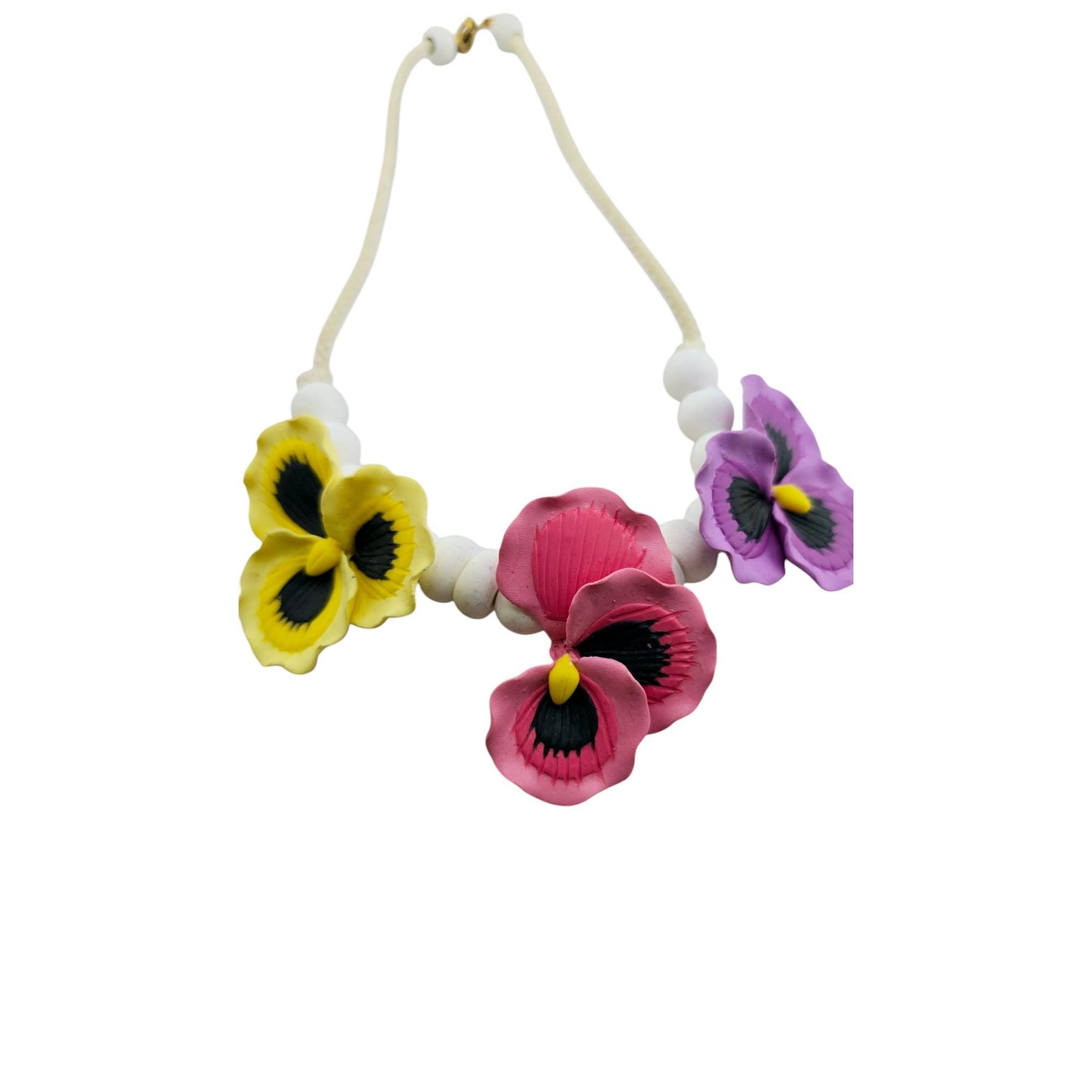 Vintage Wood and Cord Flower Necklace (A8294)