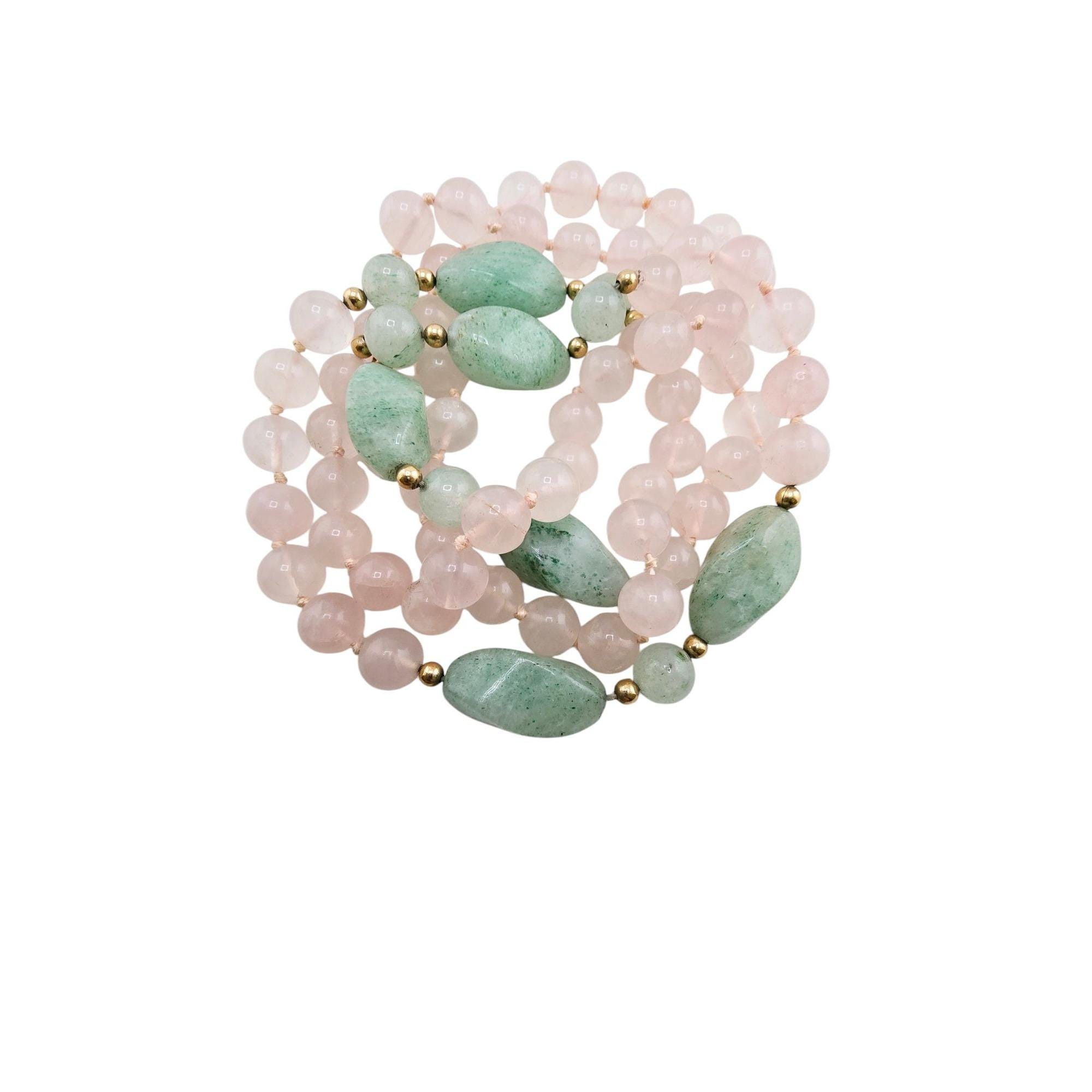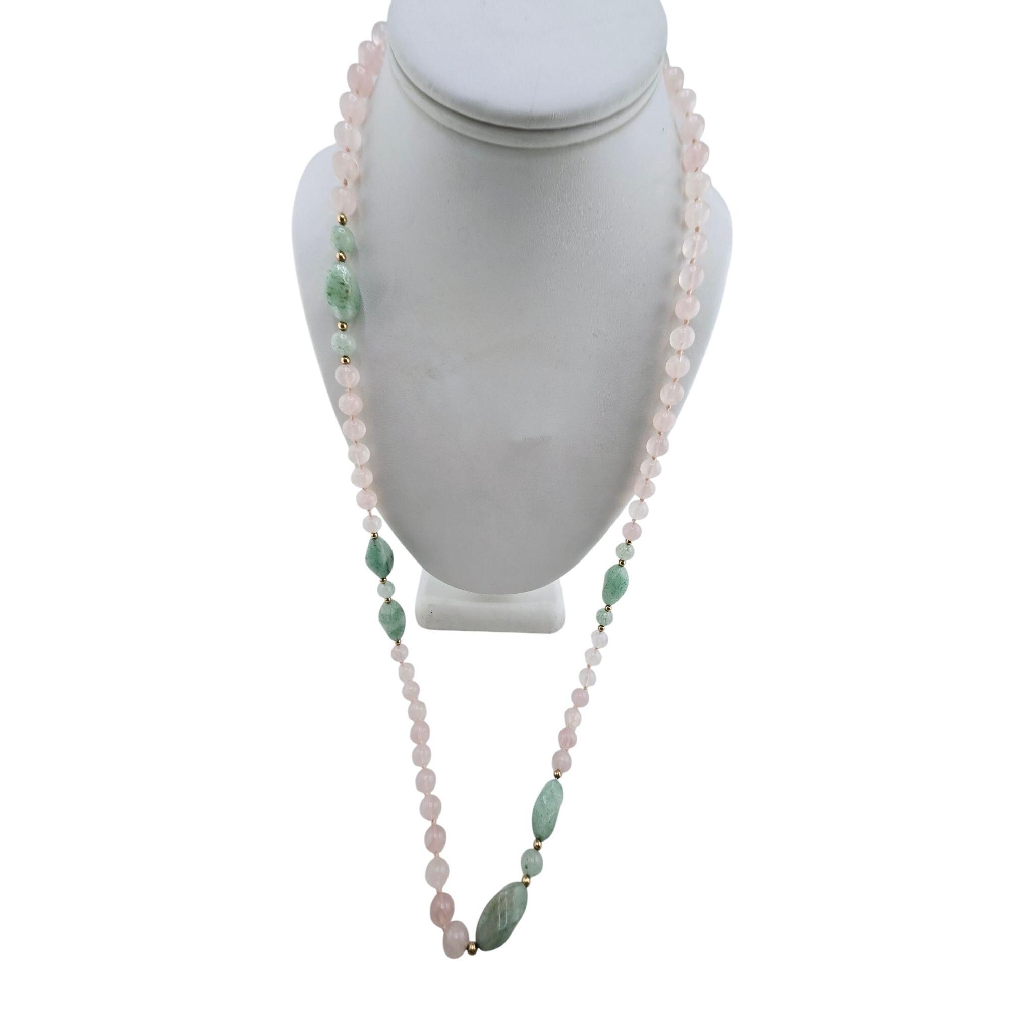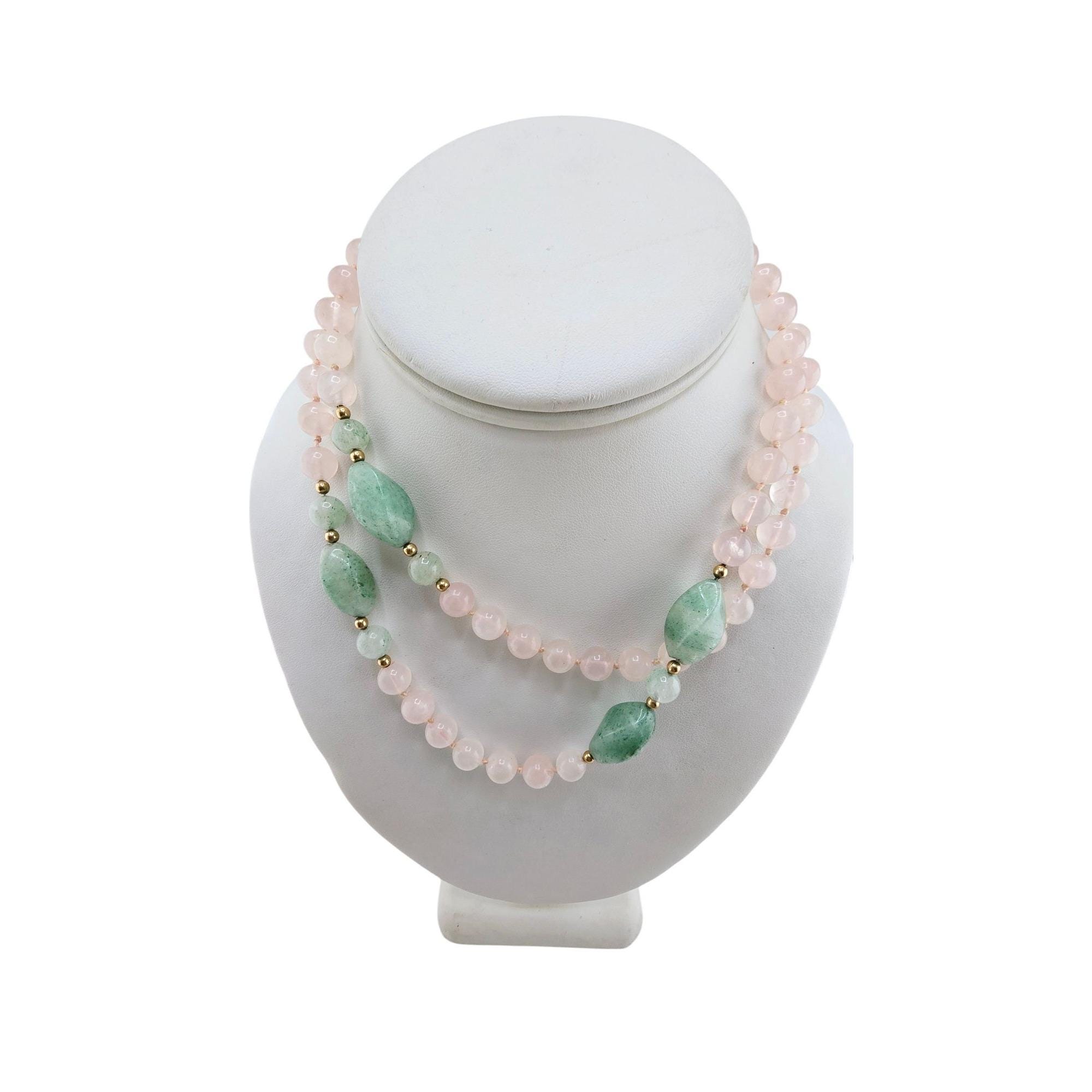 Vintage Hand Knotted Rose Quartz and Jadeite Necklace (A8299)