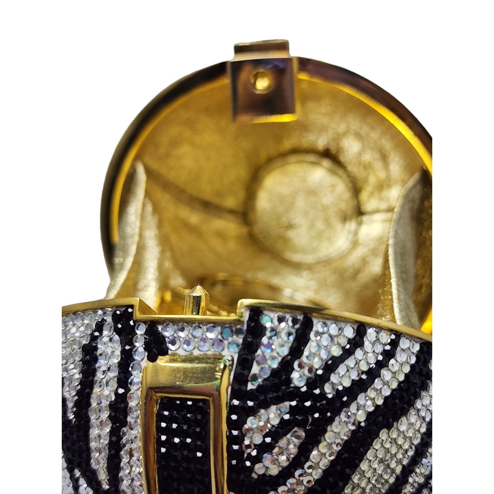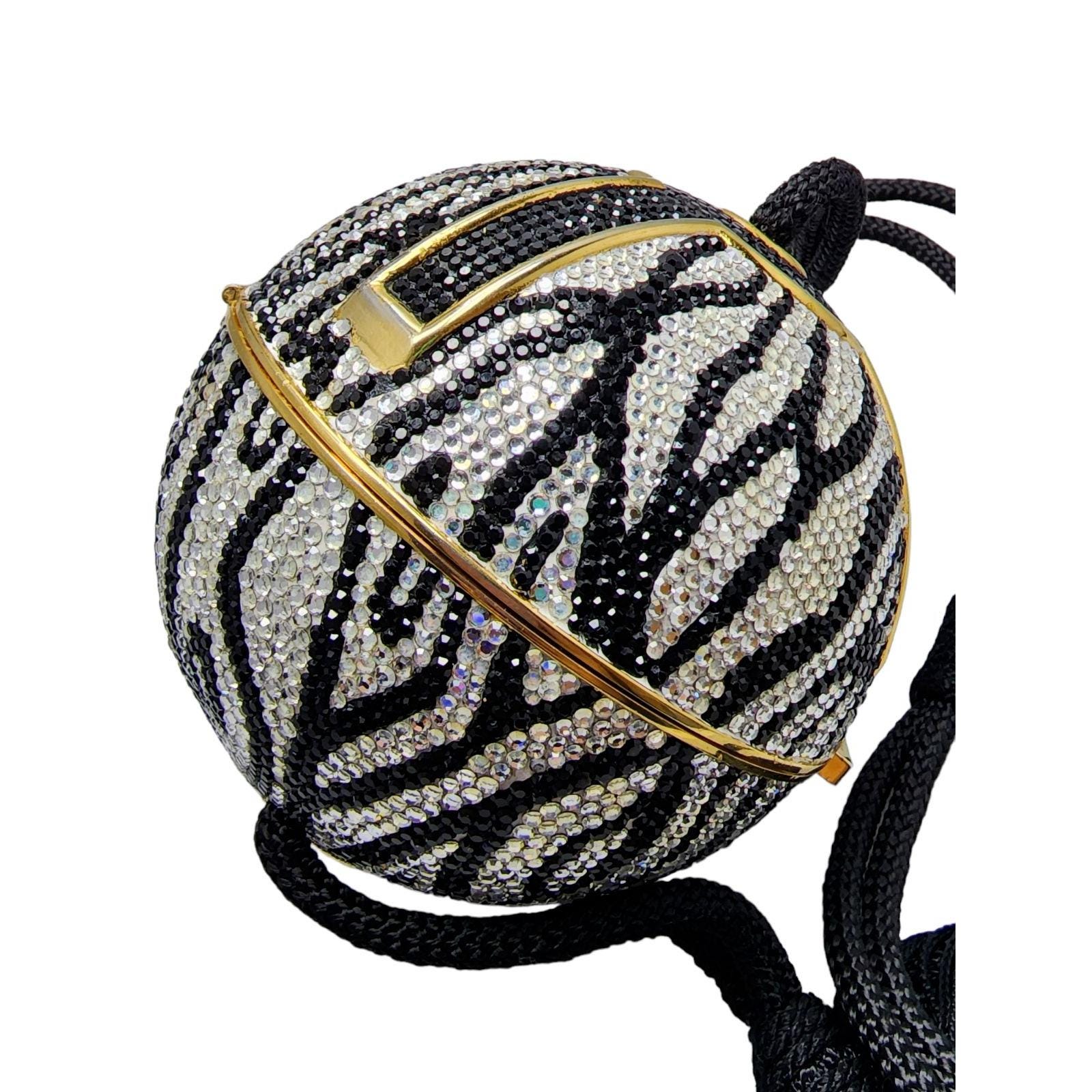 Rare Collector Judith Leiber Zebra Crystal Sphere Minaudiere (A1477)