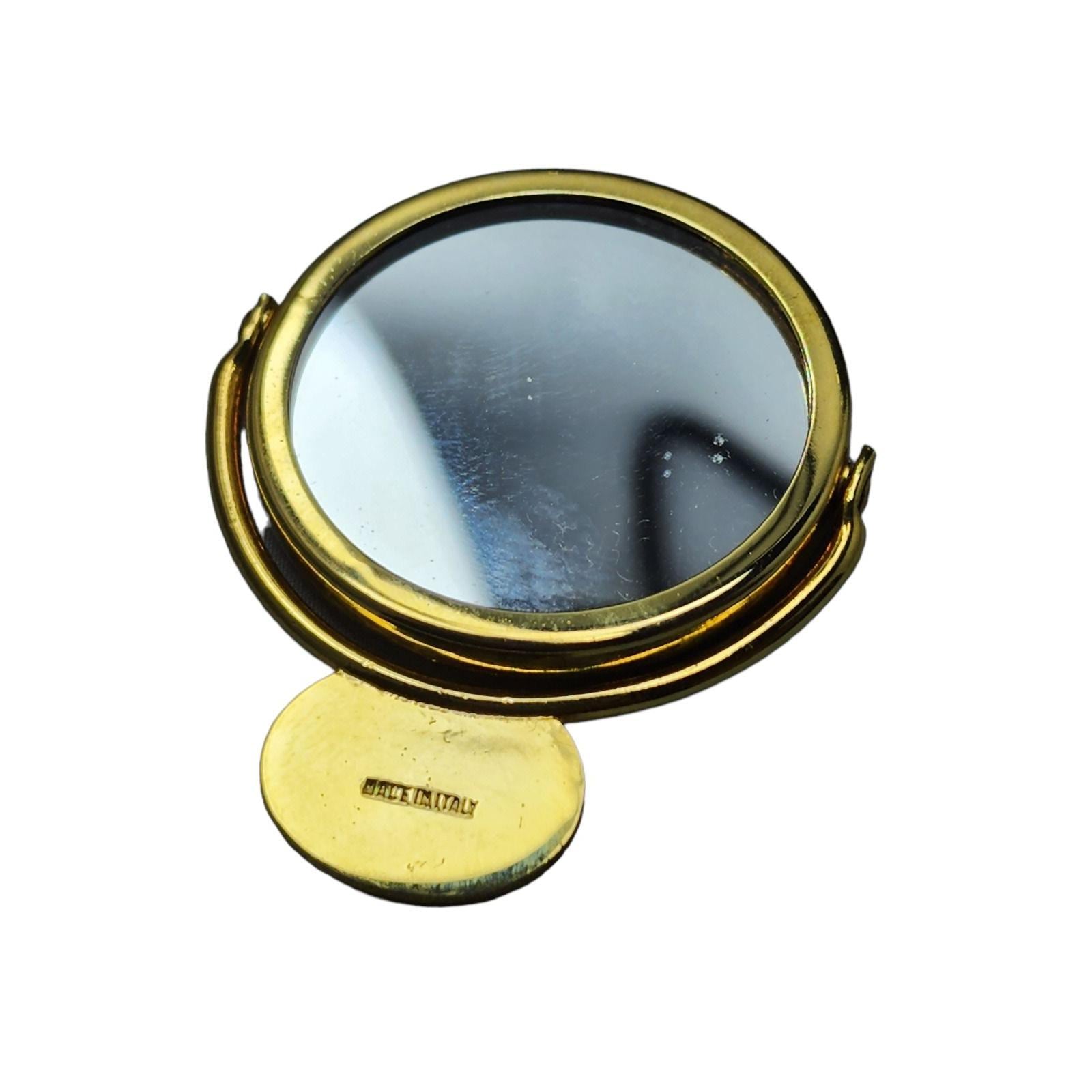 Details:. Gold tone hardware, hanging tassel, and cord are all in good condition. Rhinestones look good. Push in the embellished clasp, which also includes a signed mirror. Leather metallic bottom. A really fabulous piece! Missing stones about 3-5 and glue marks from some having been reglued.