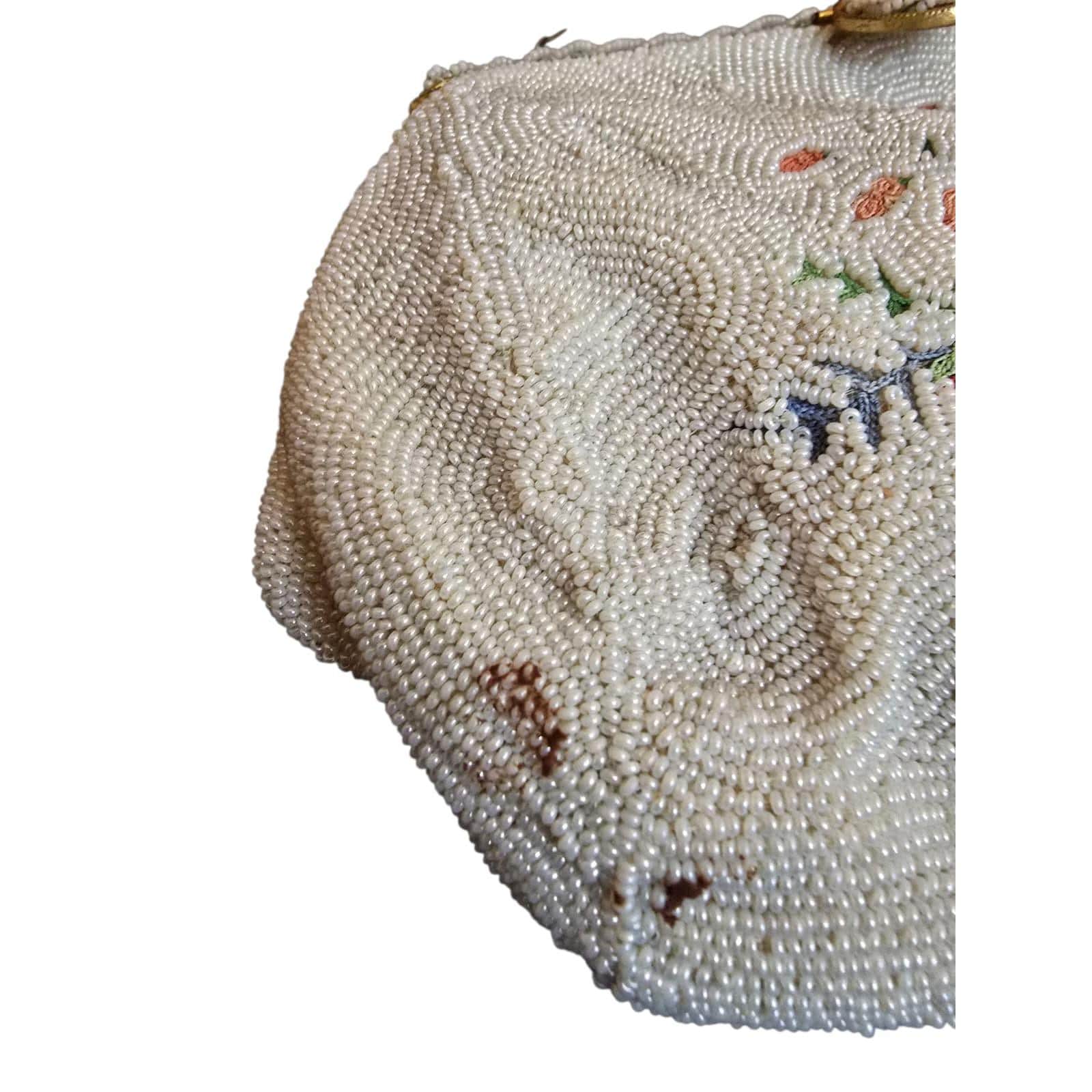 Condition: Good vintage; some dark spots to the beads in areas and light staining inside.