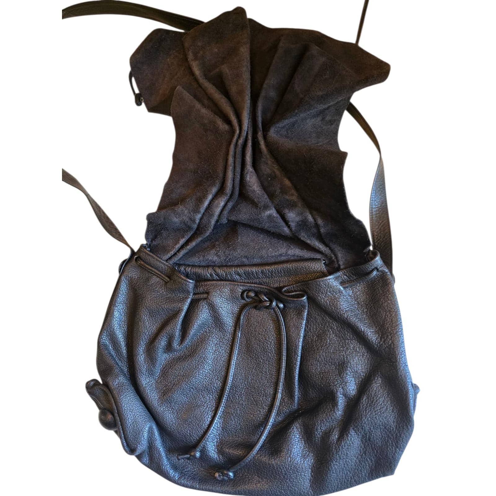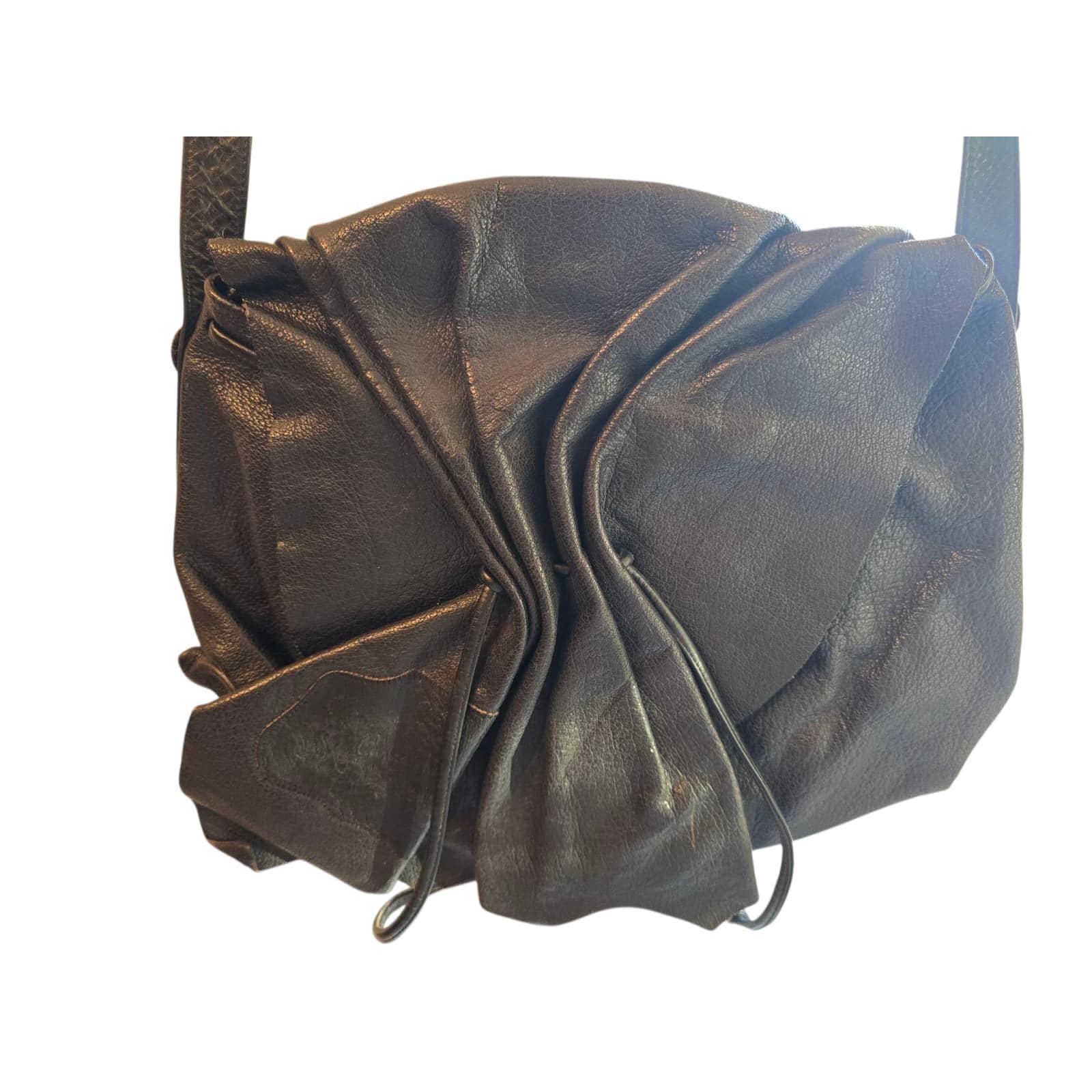 Vintage 1980s Black Leather Carlos Falchi Butterfly Shoulder Bag