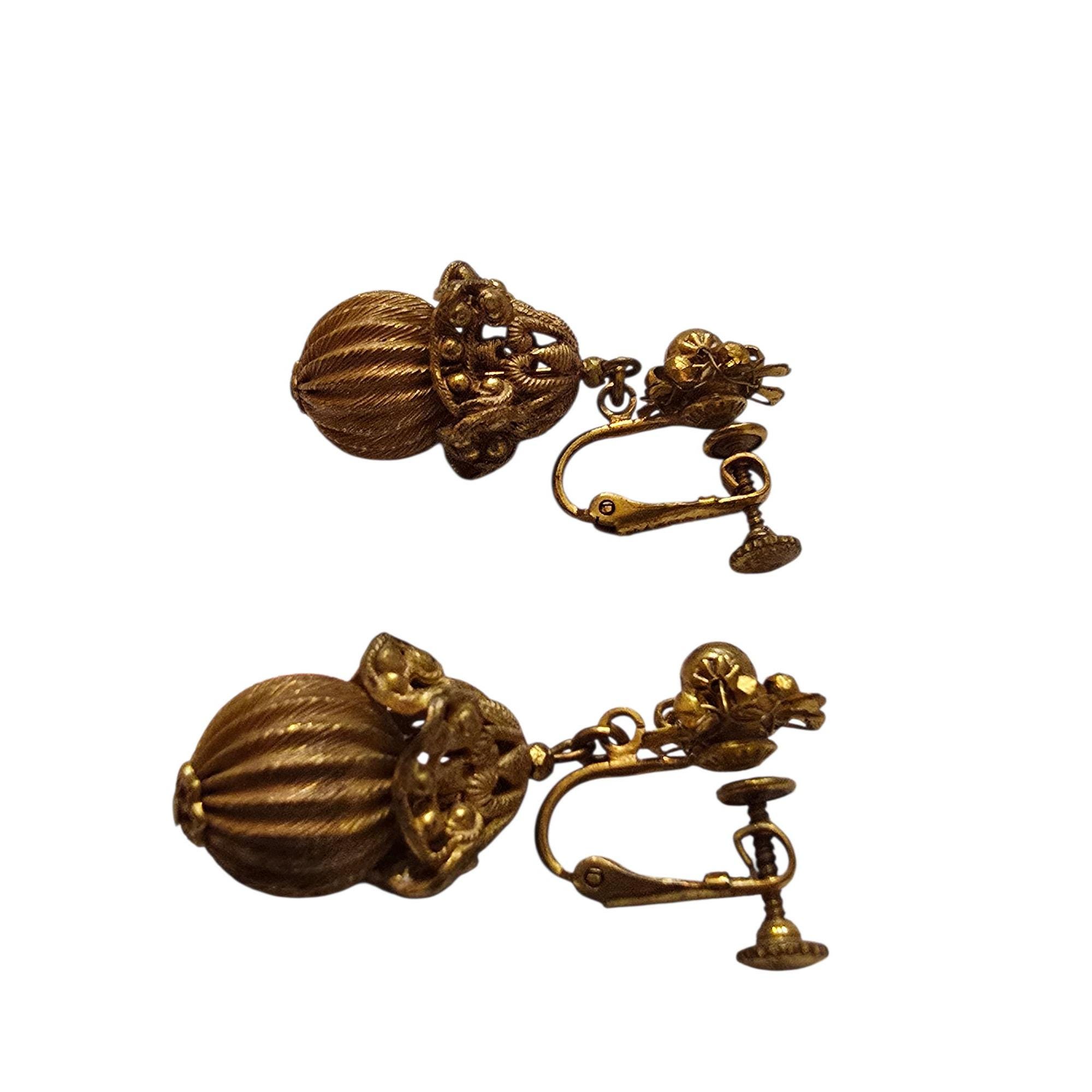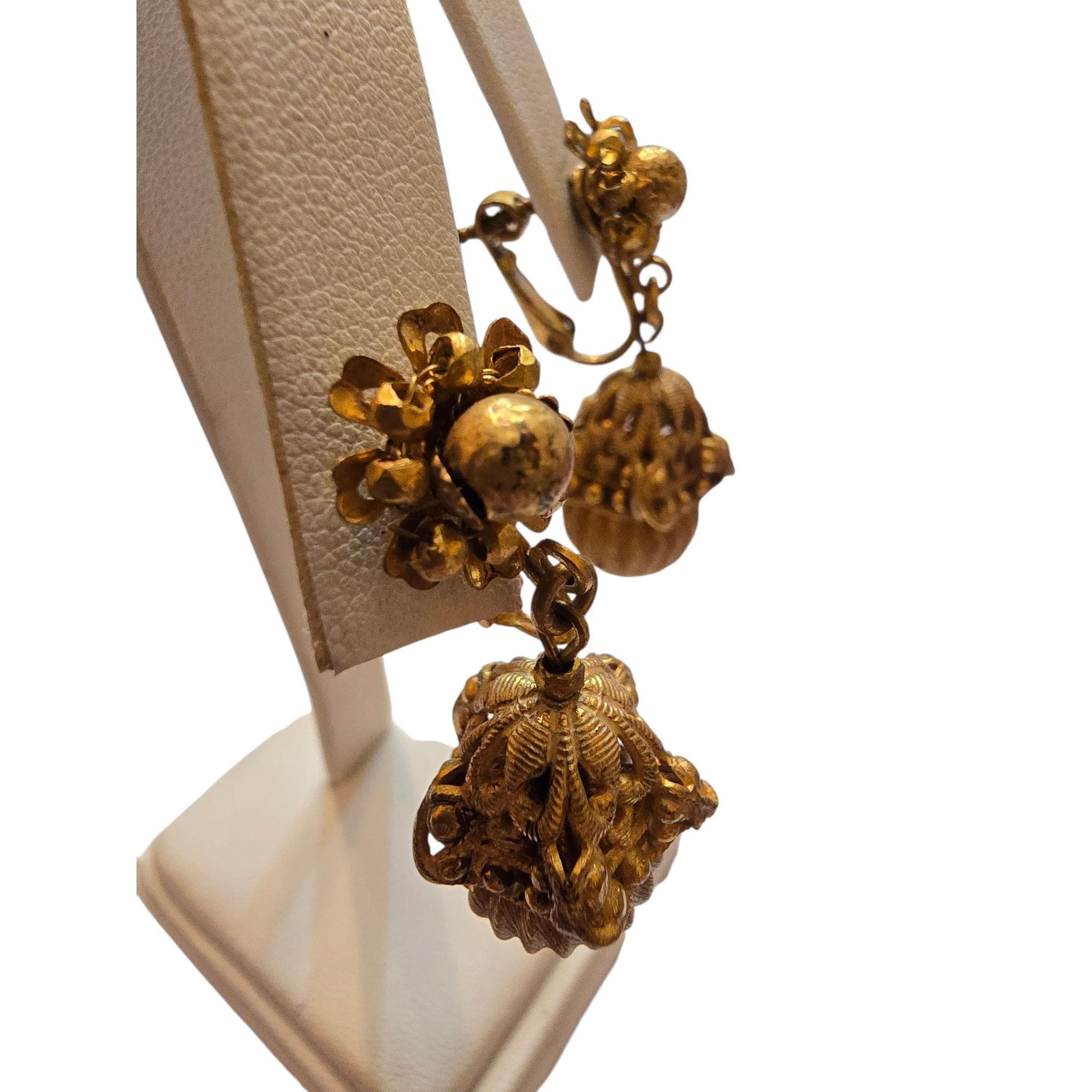 Vintage Early Miriam Haskell Brass Dangle Clip Earrings (A9743)