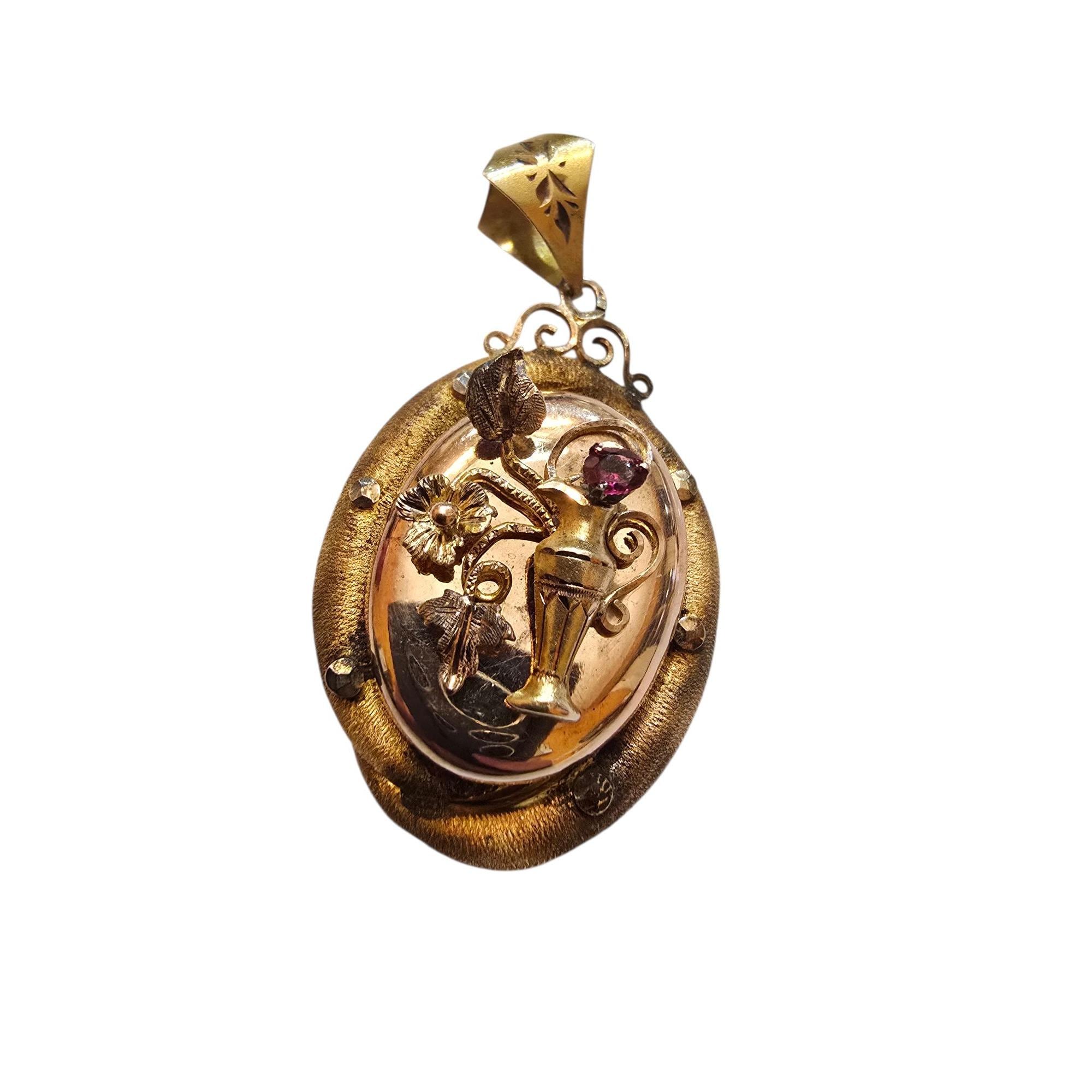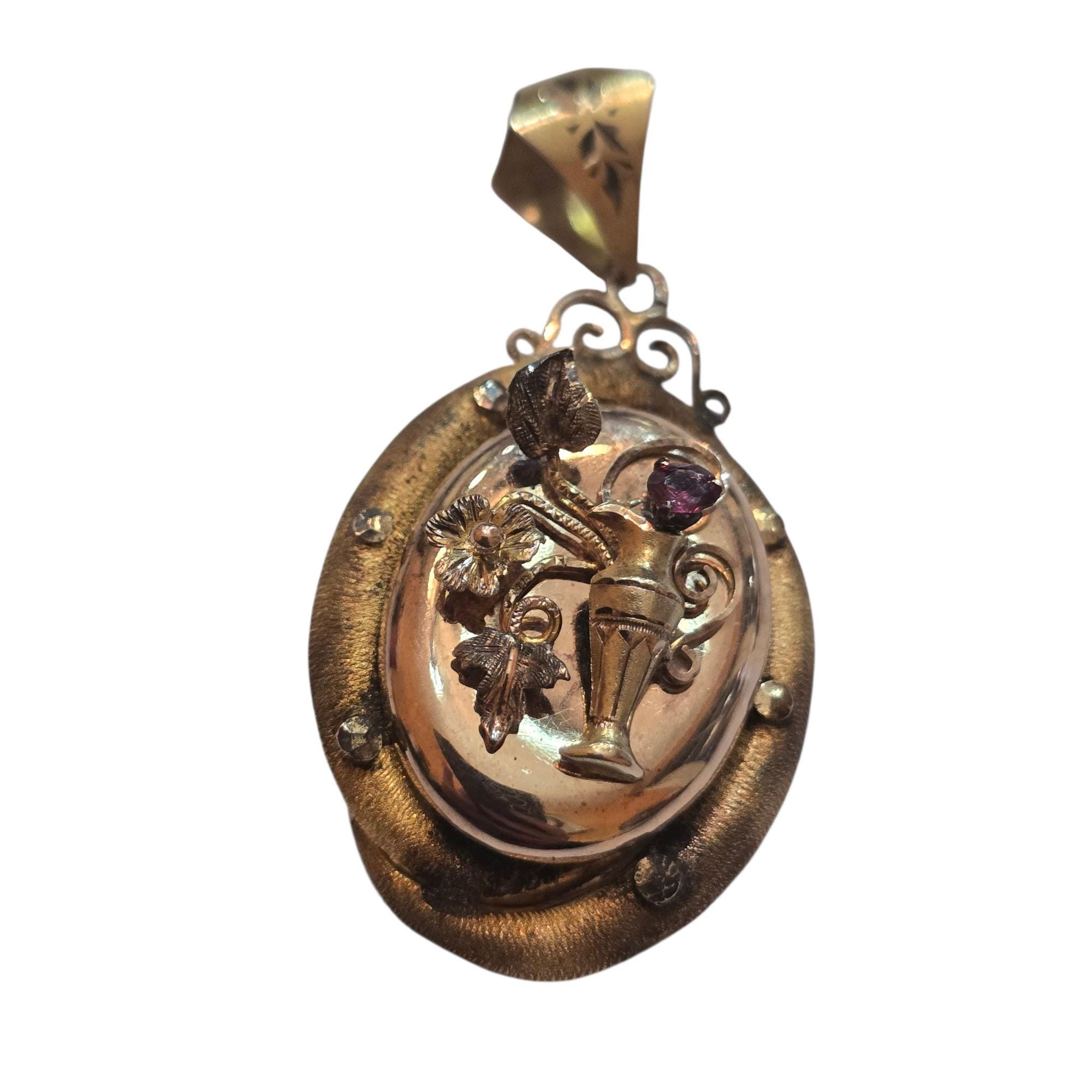 Vintage Gold Filled with Possible Garnet Victorian Urn Pendant (A9745)