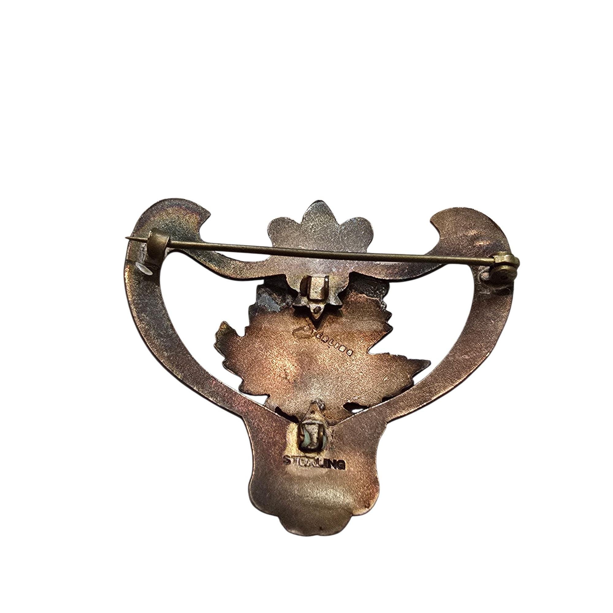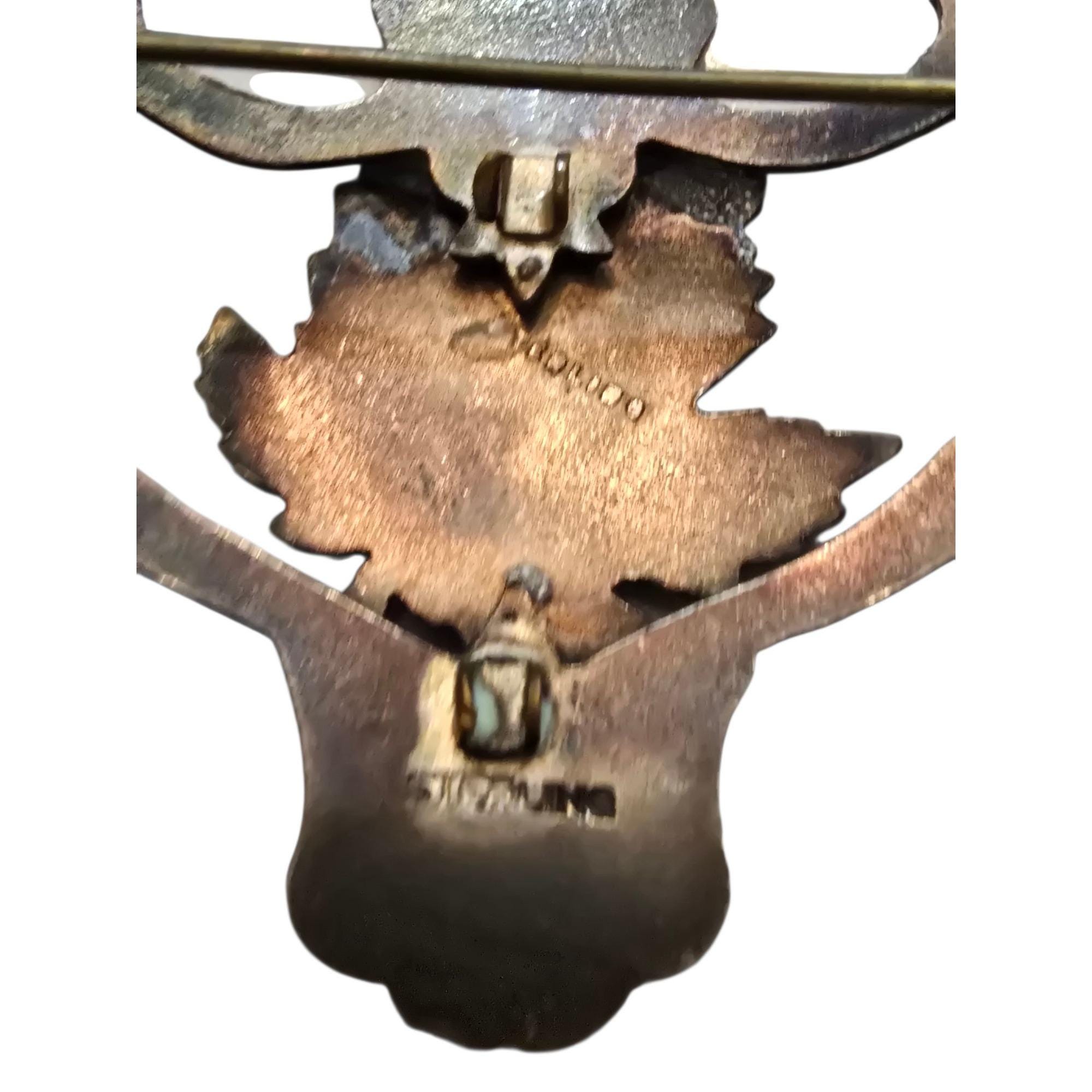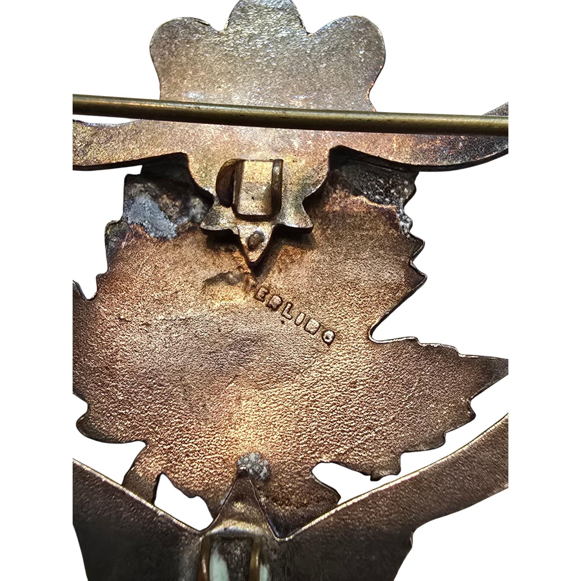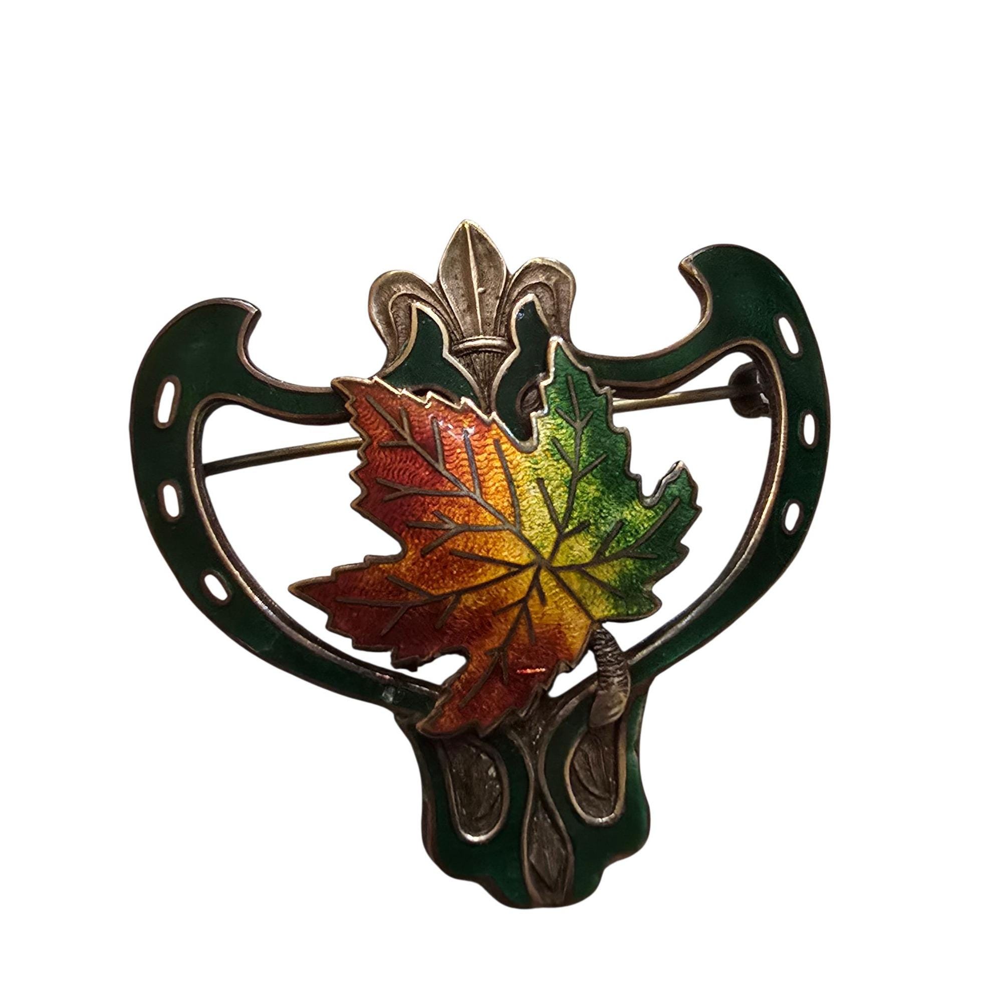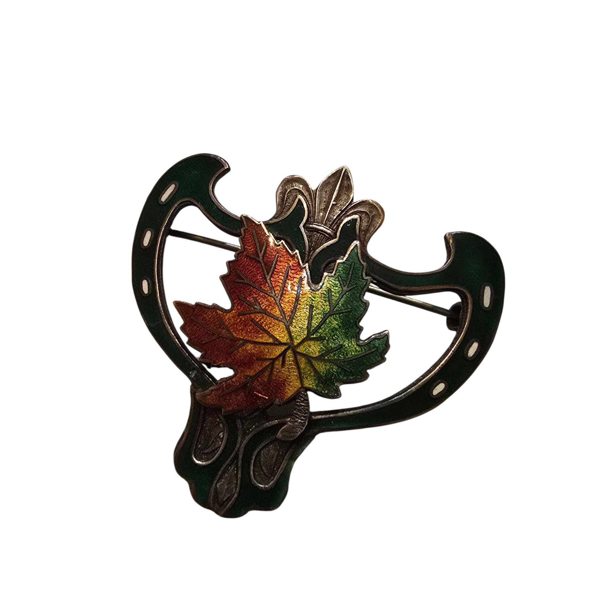 Vintage Sterling Victorian Canadian Maple Leaf Fleur-de-Lis Enamel Sash Pin (A9744)