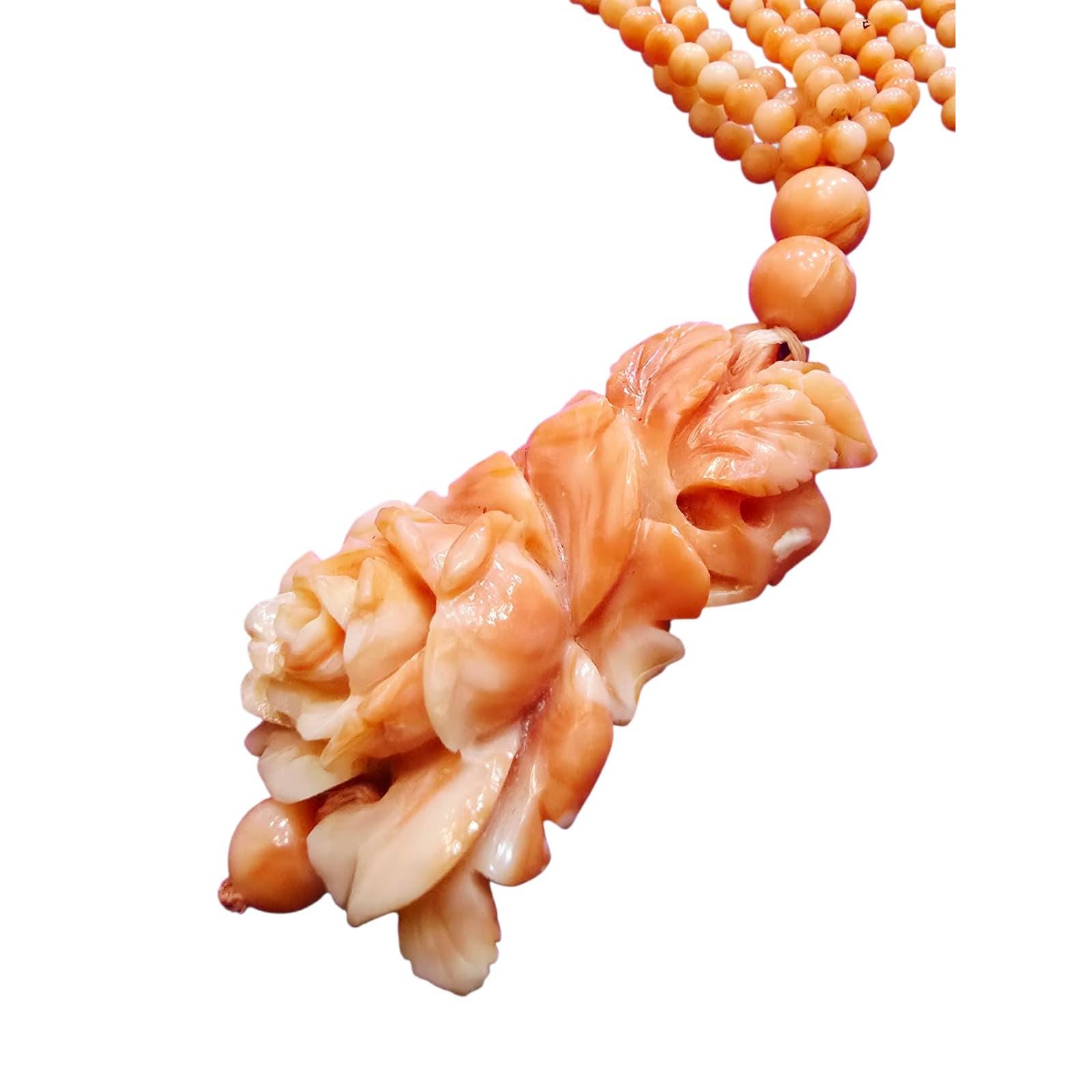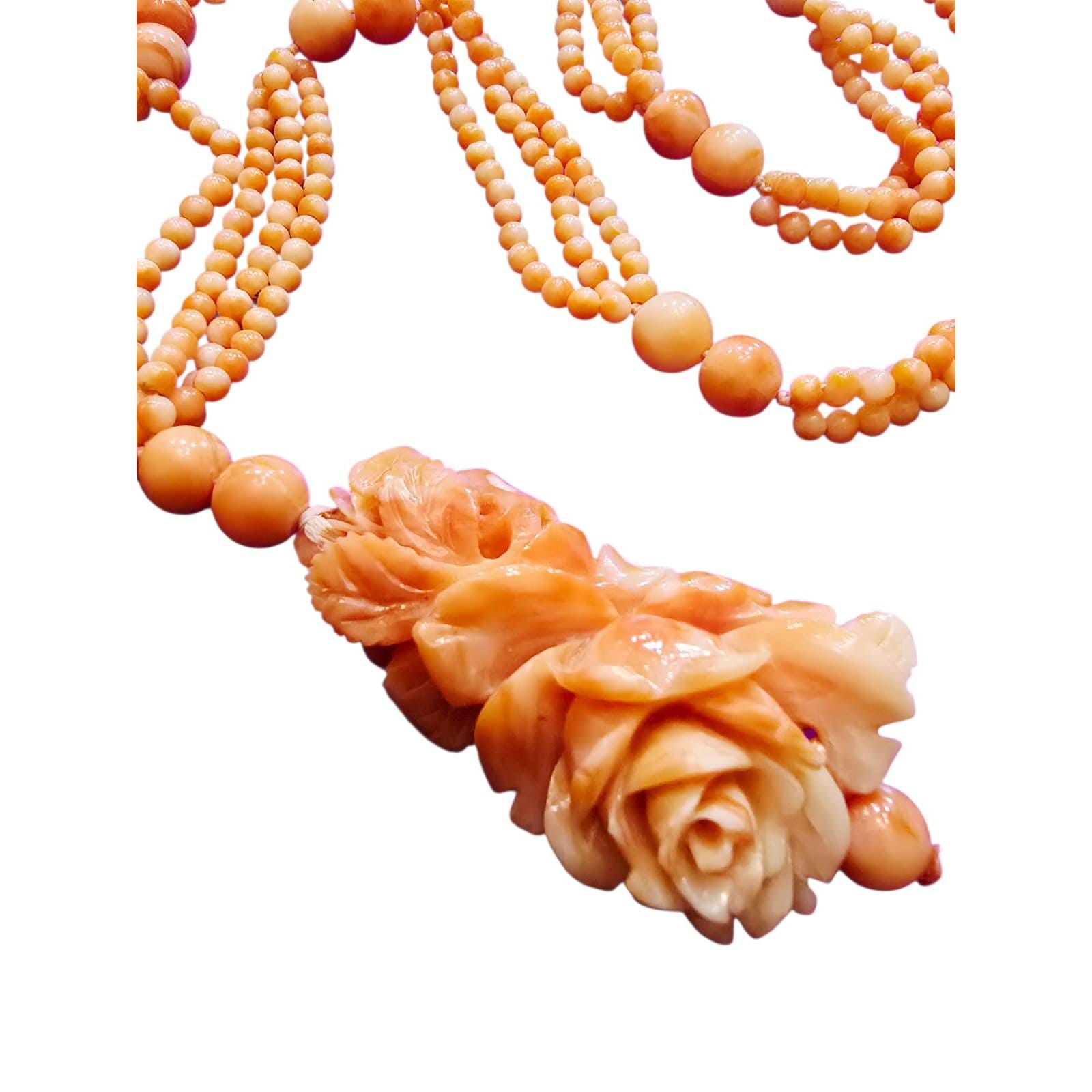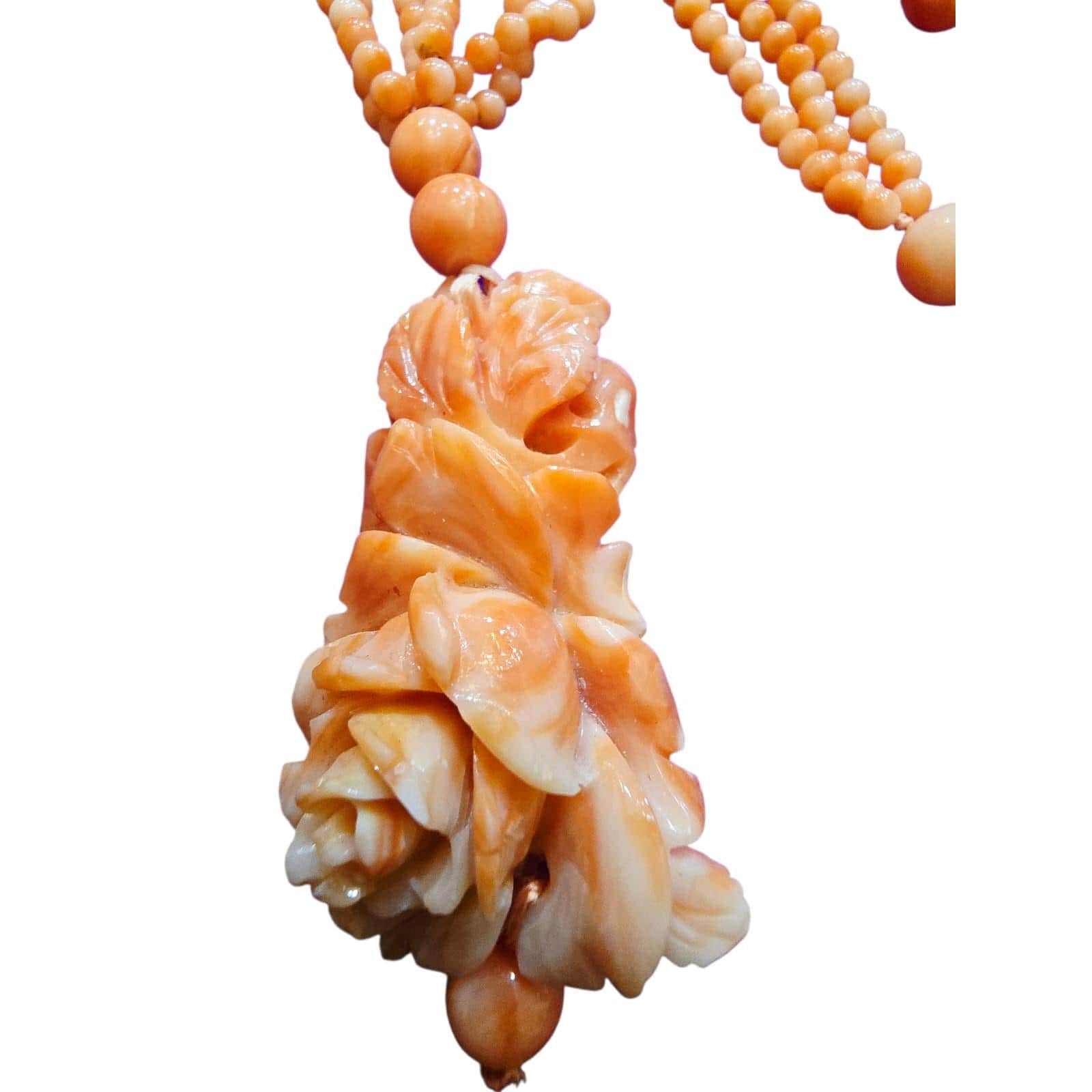 Vintage Stunning Carved Coral Flower AU Coral Necklace (A4298)