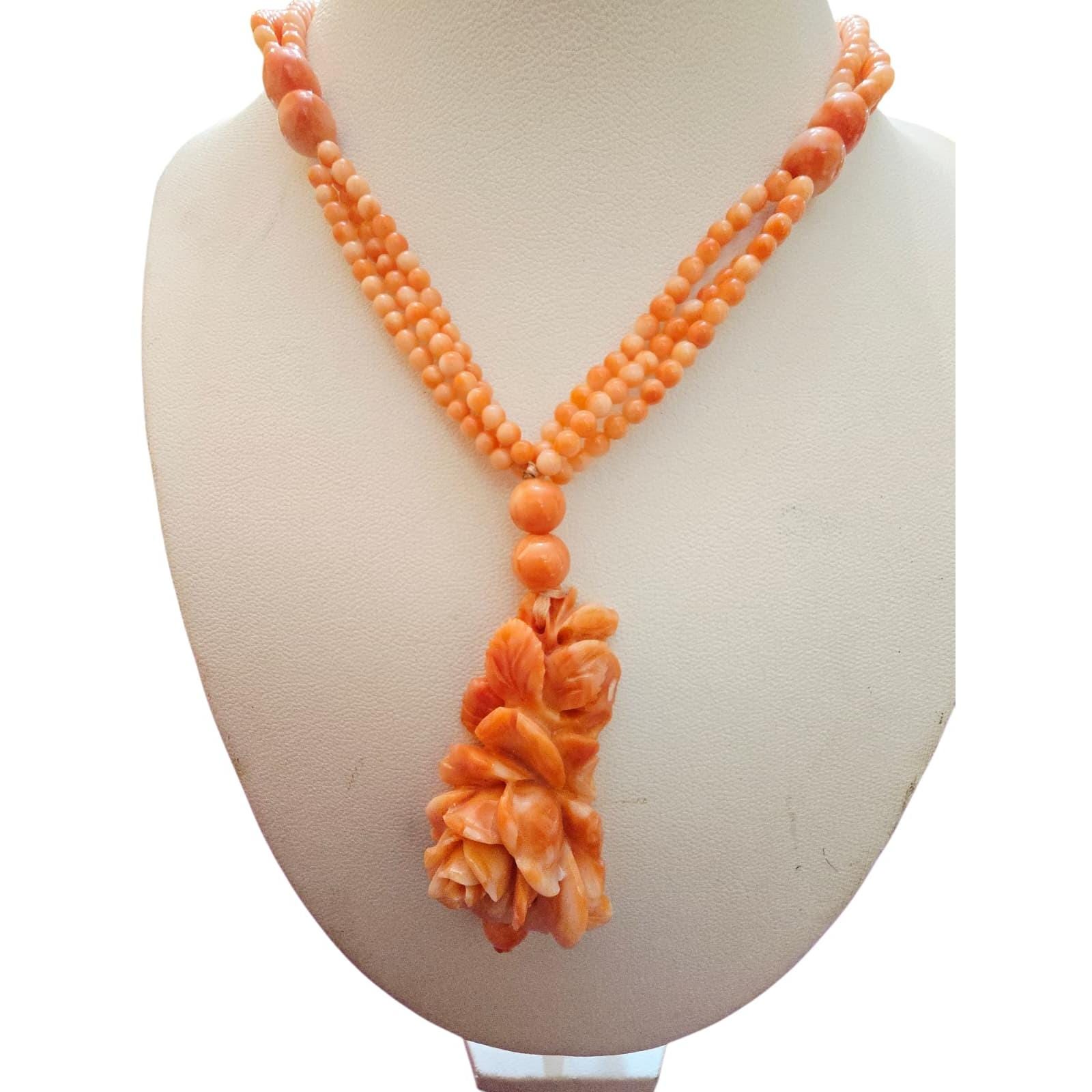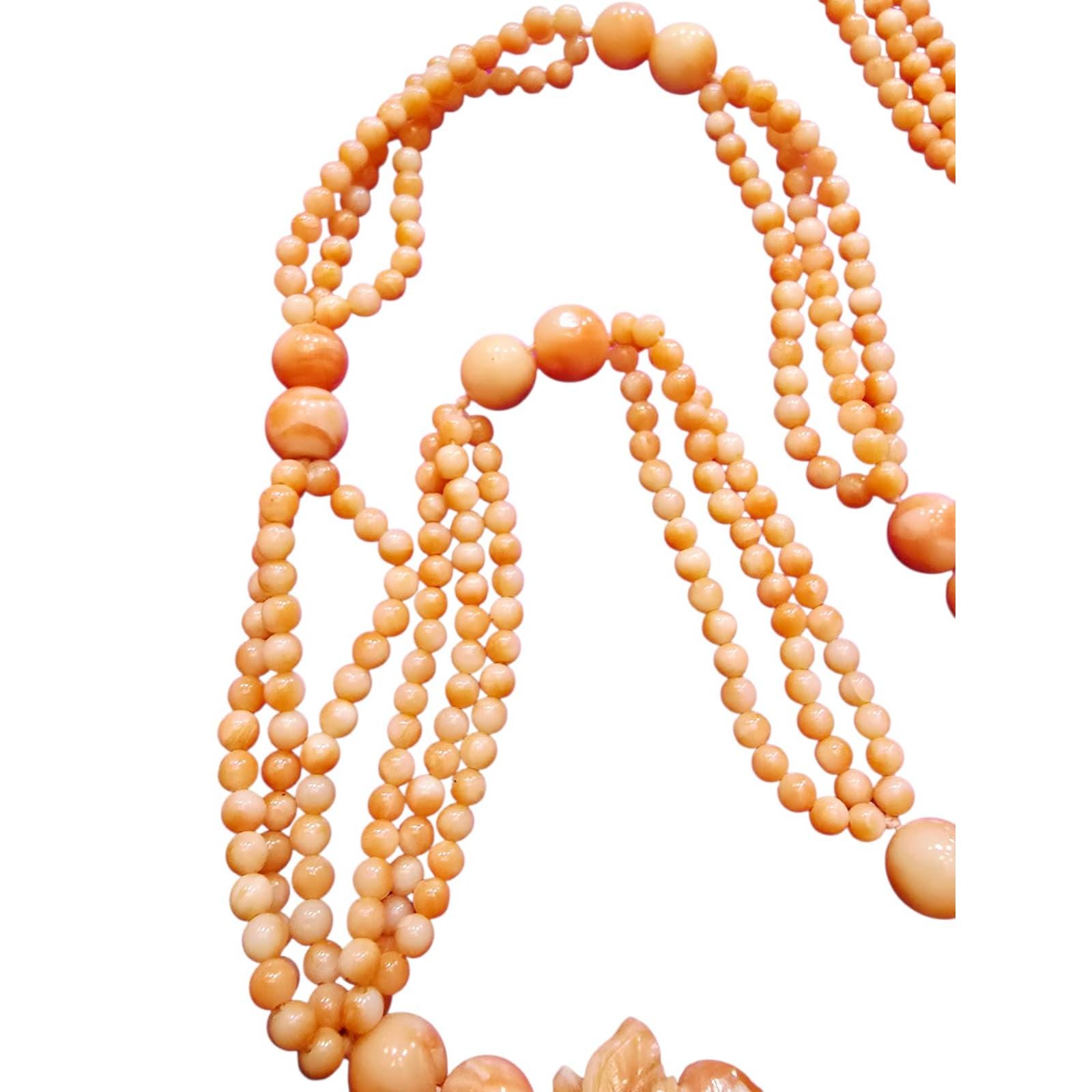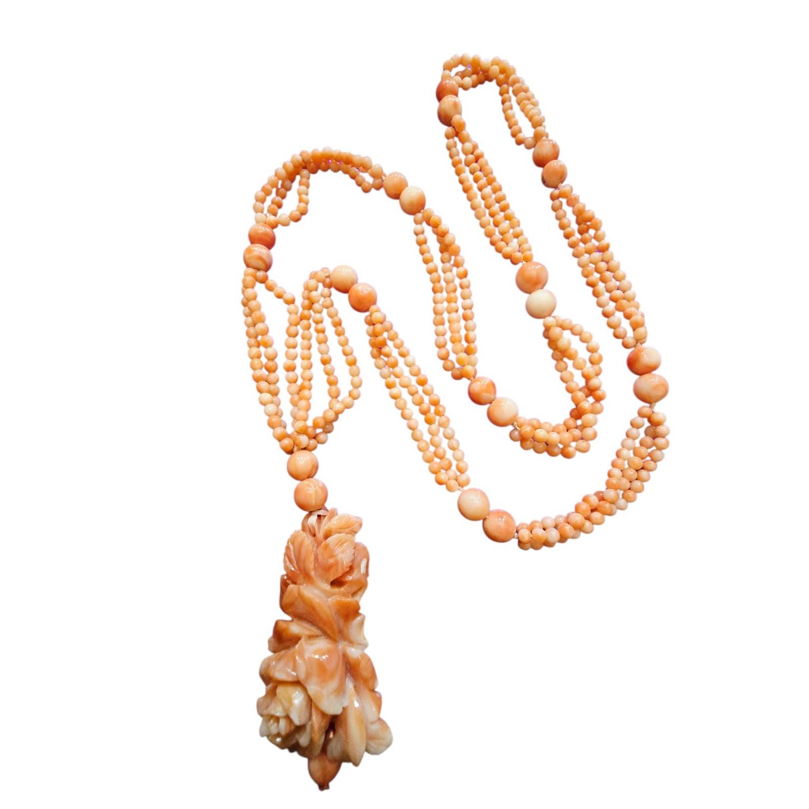 Vintage Stunning Carved Coral Flower AU Coral Necklace (A4298)