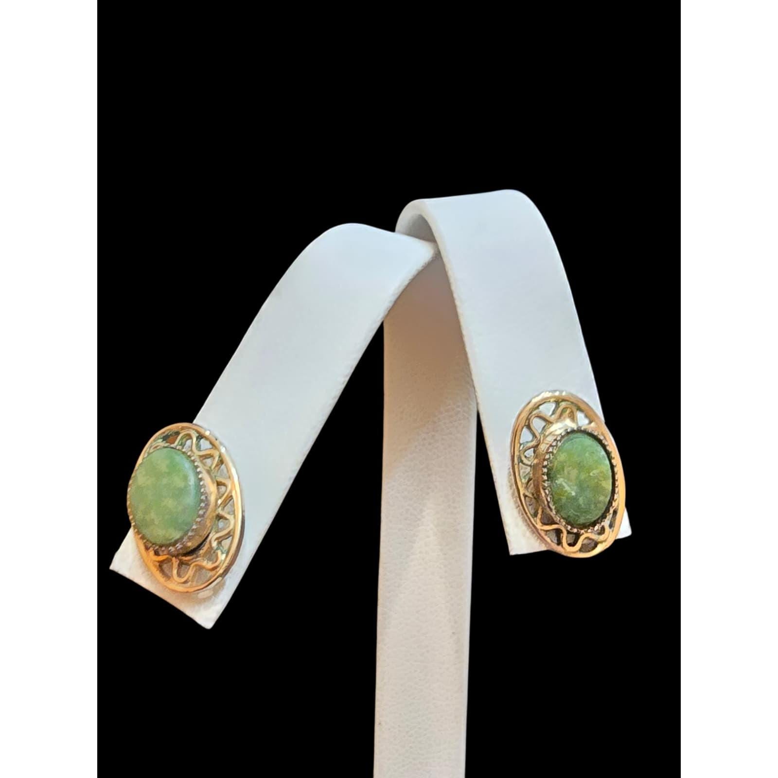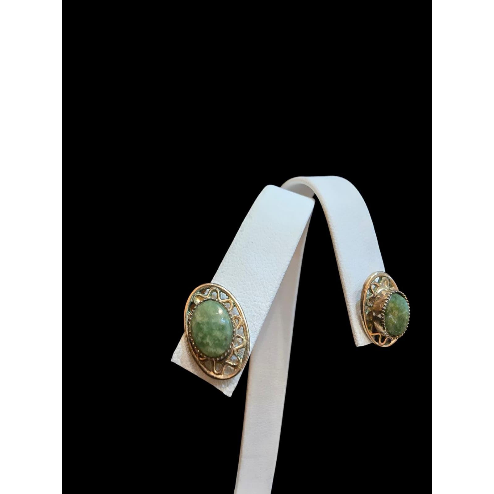 Vintage Jadeite Gold Filled Pierced Earrings (A6542)