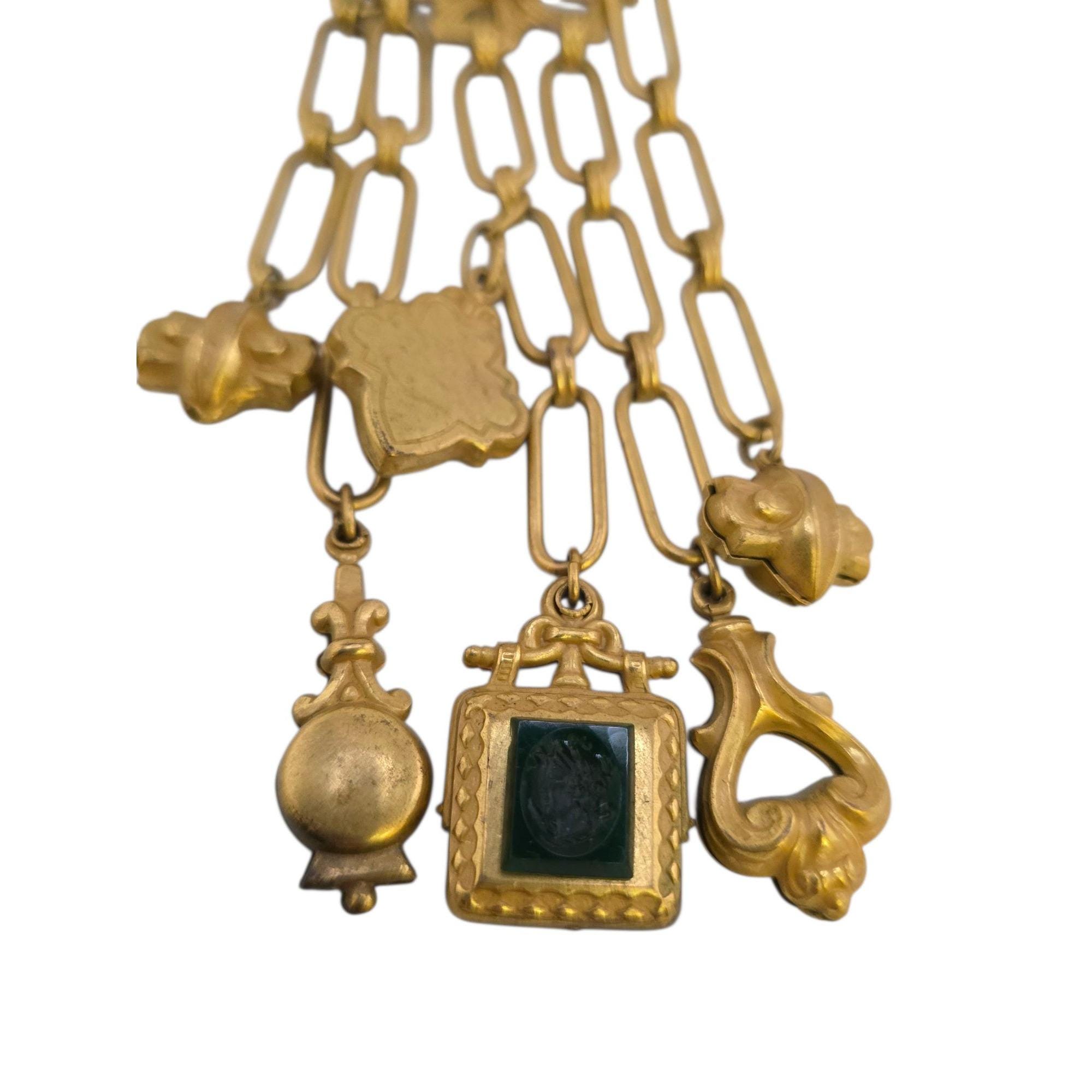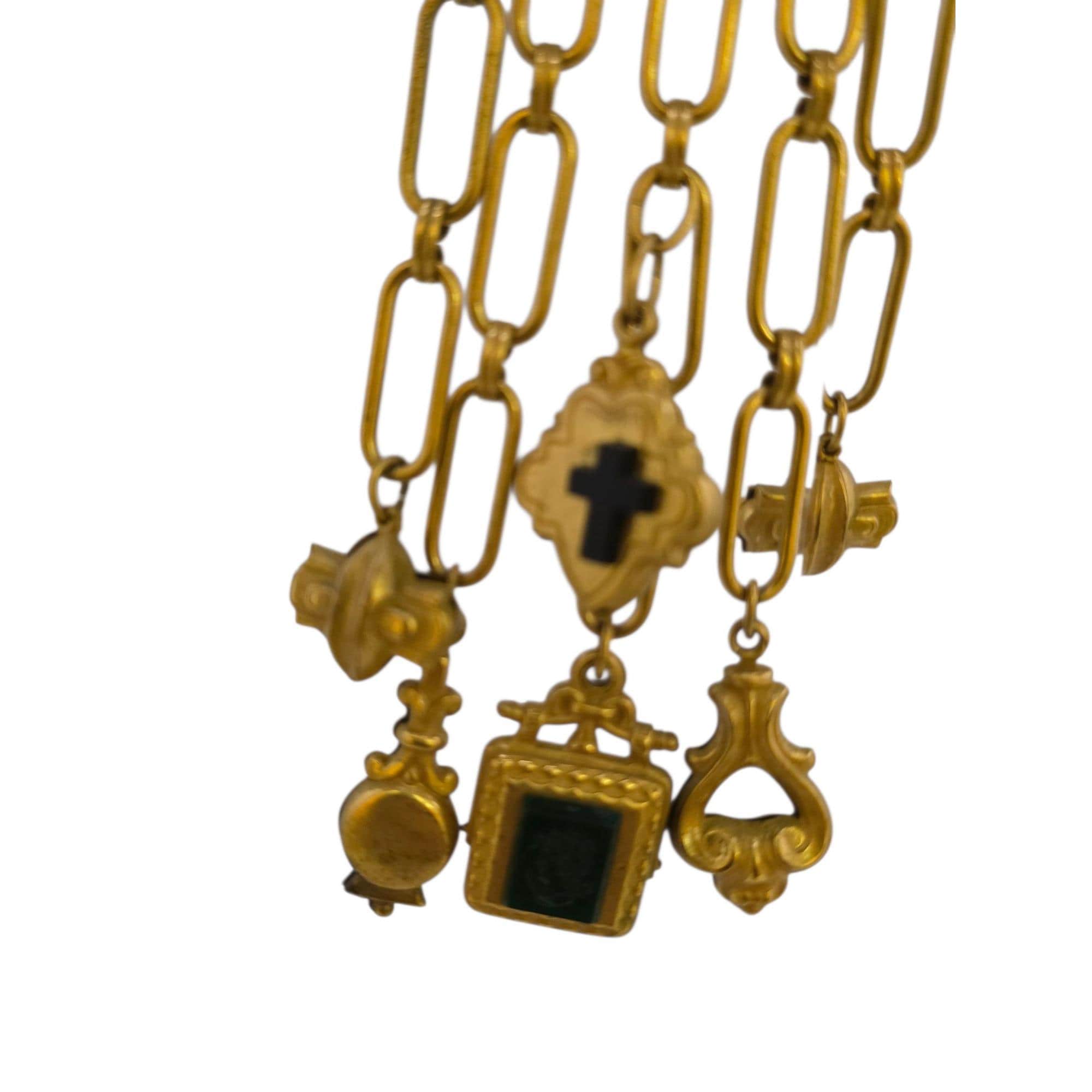 Details: Very well made. Glass intaglio on 1 charm cross, possibly glass slightly off-centered.