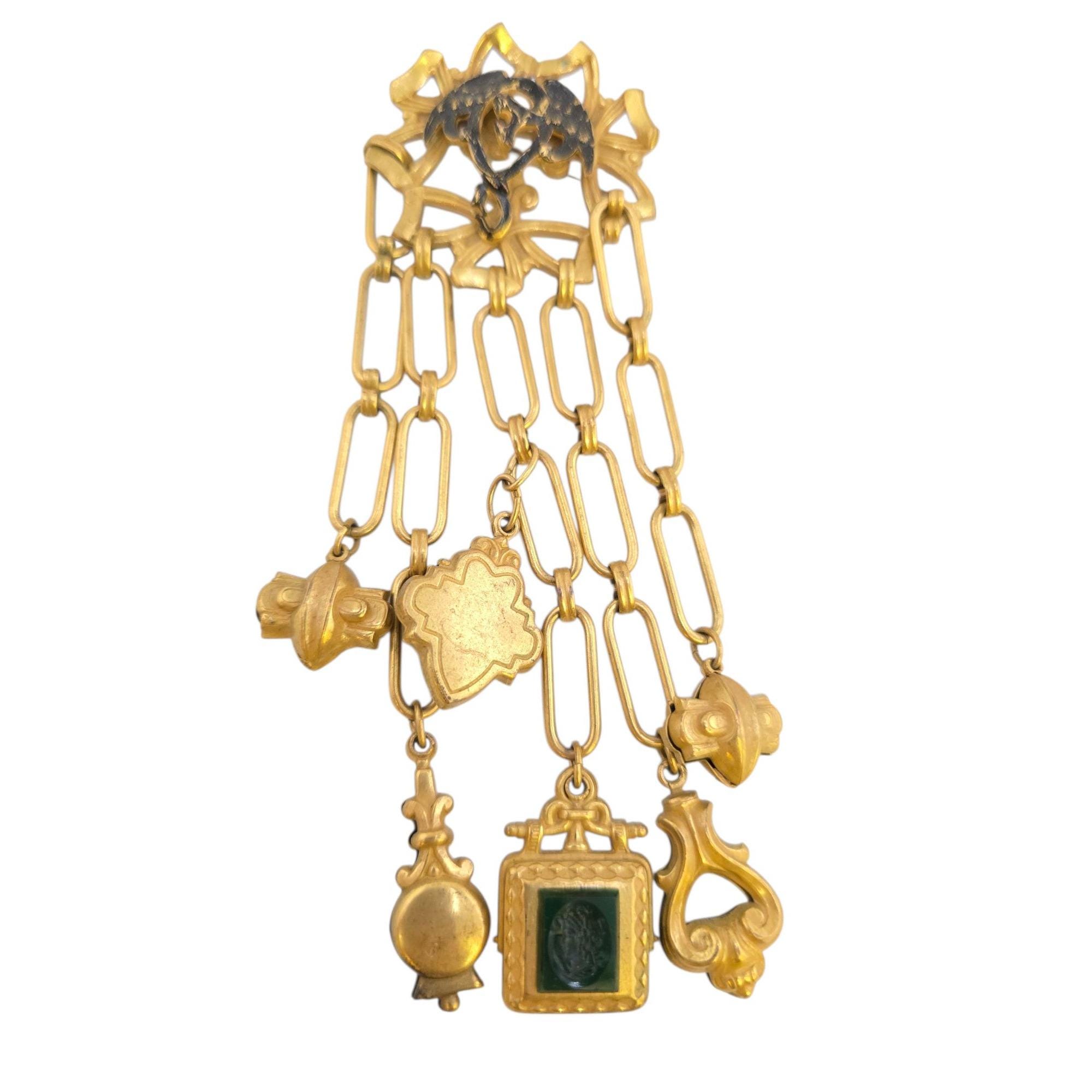 Vintage Chatelaine Style Dangling Brooch (A9116)