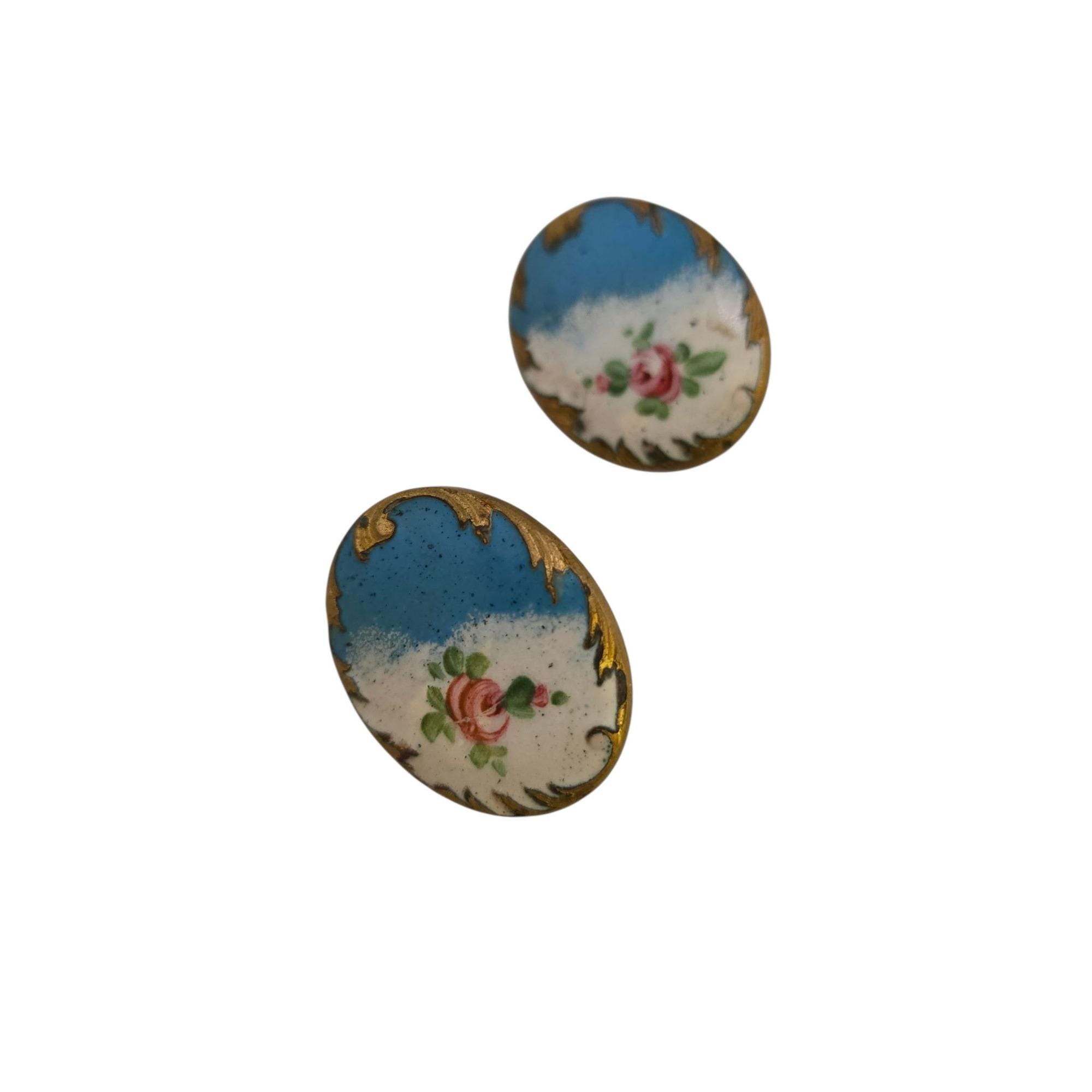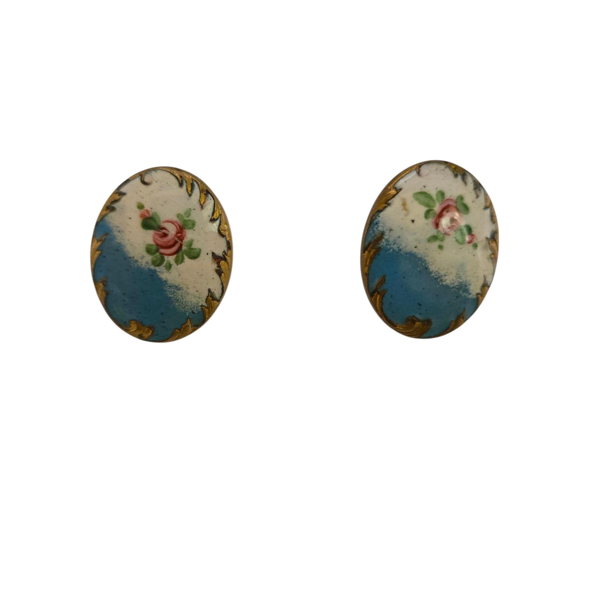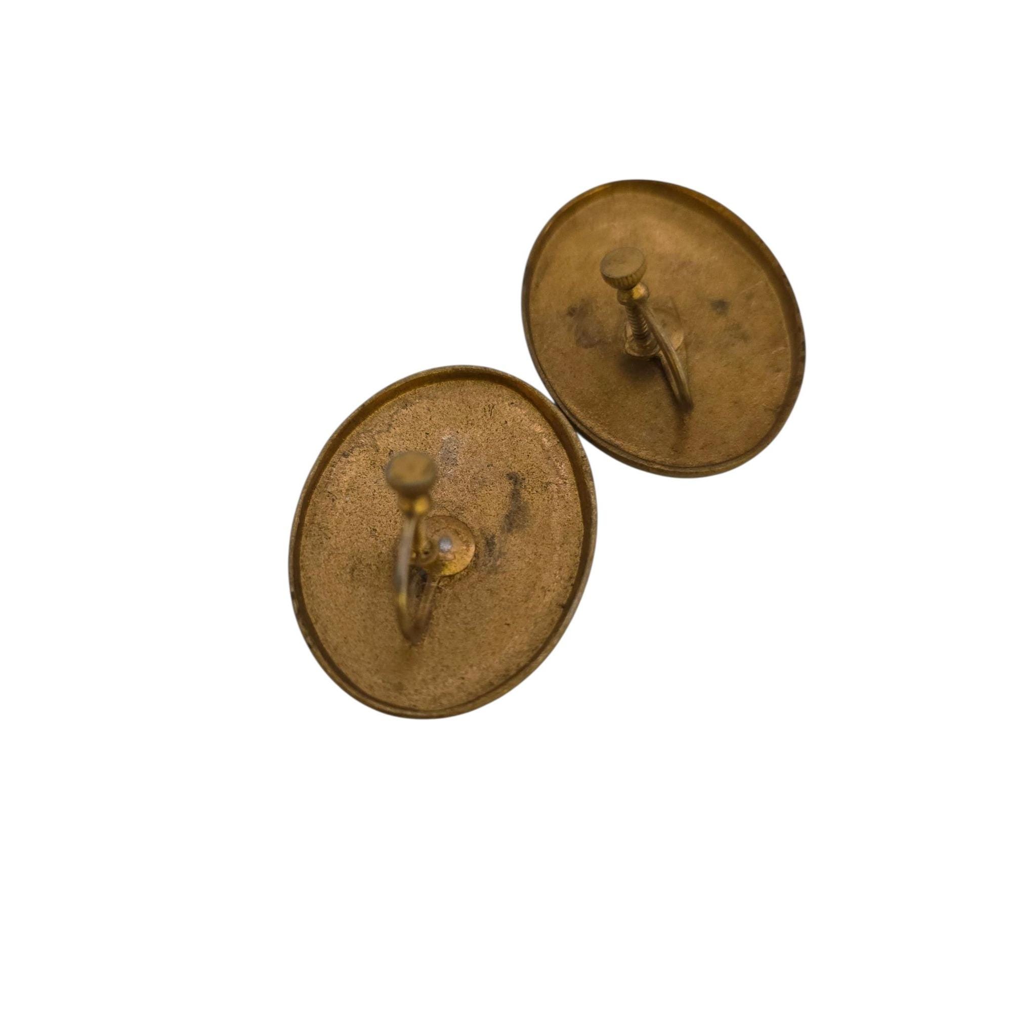 Antique Enamel and Brass Screw Back Earrings (A9123)