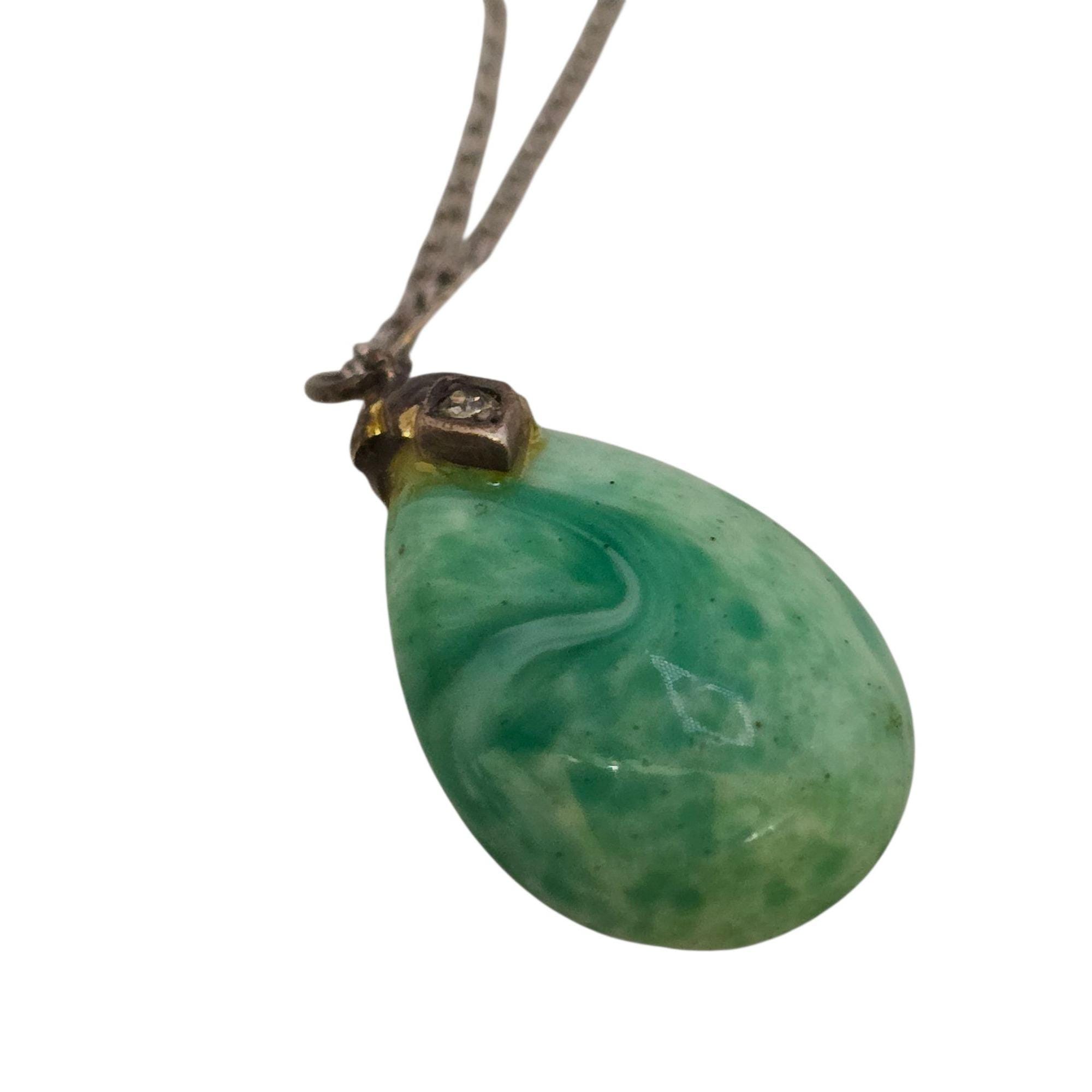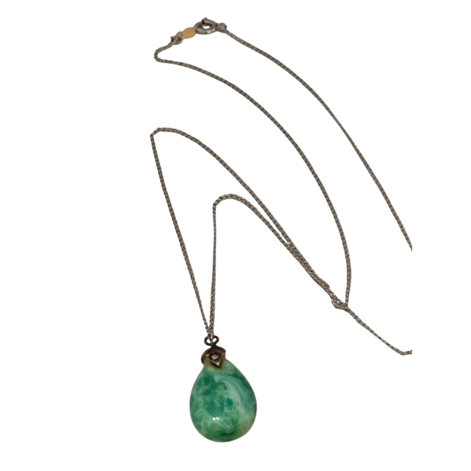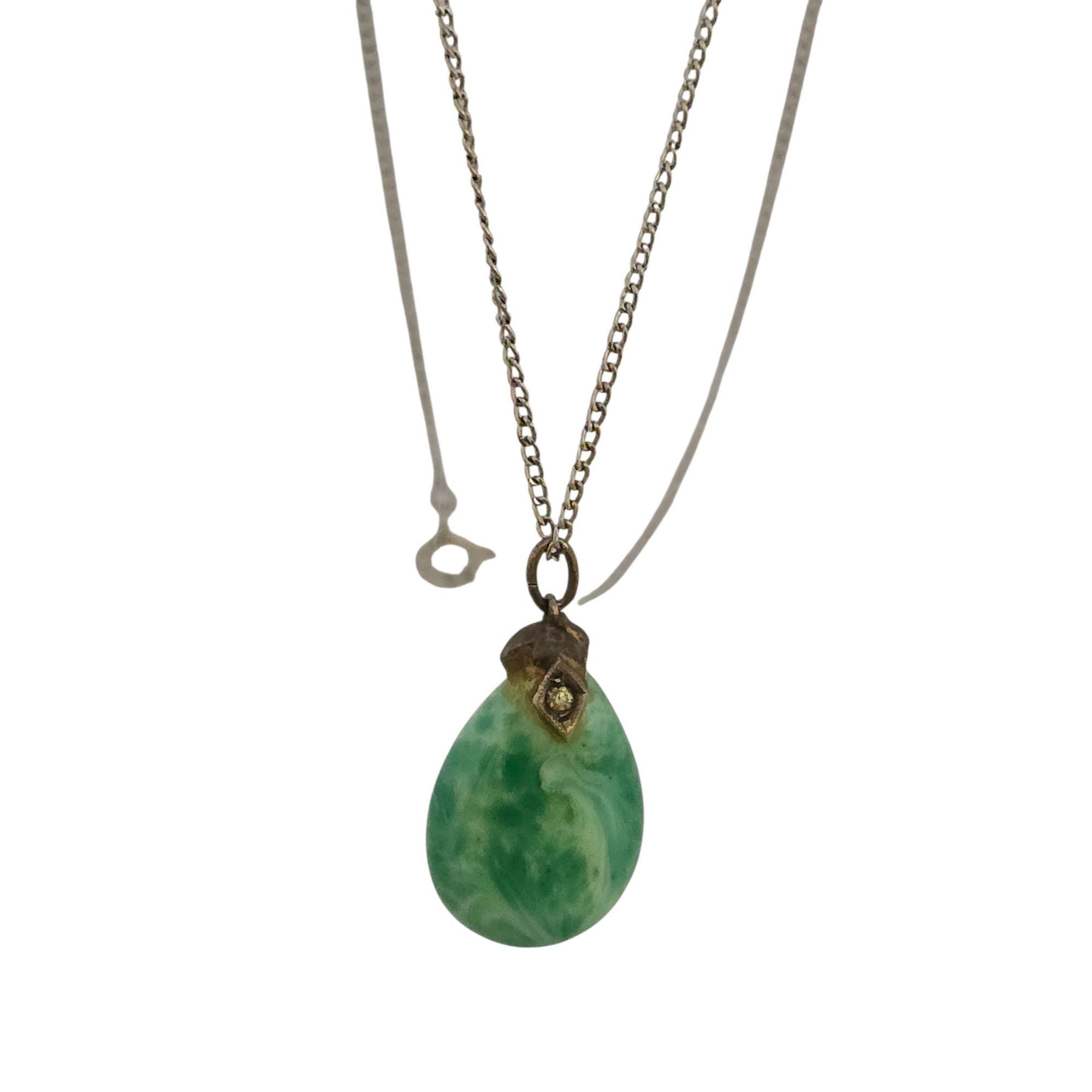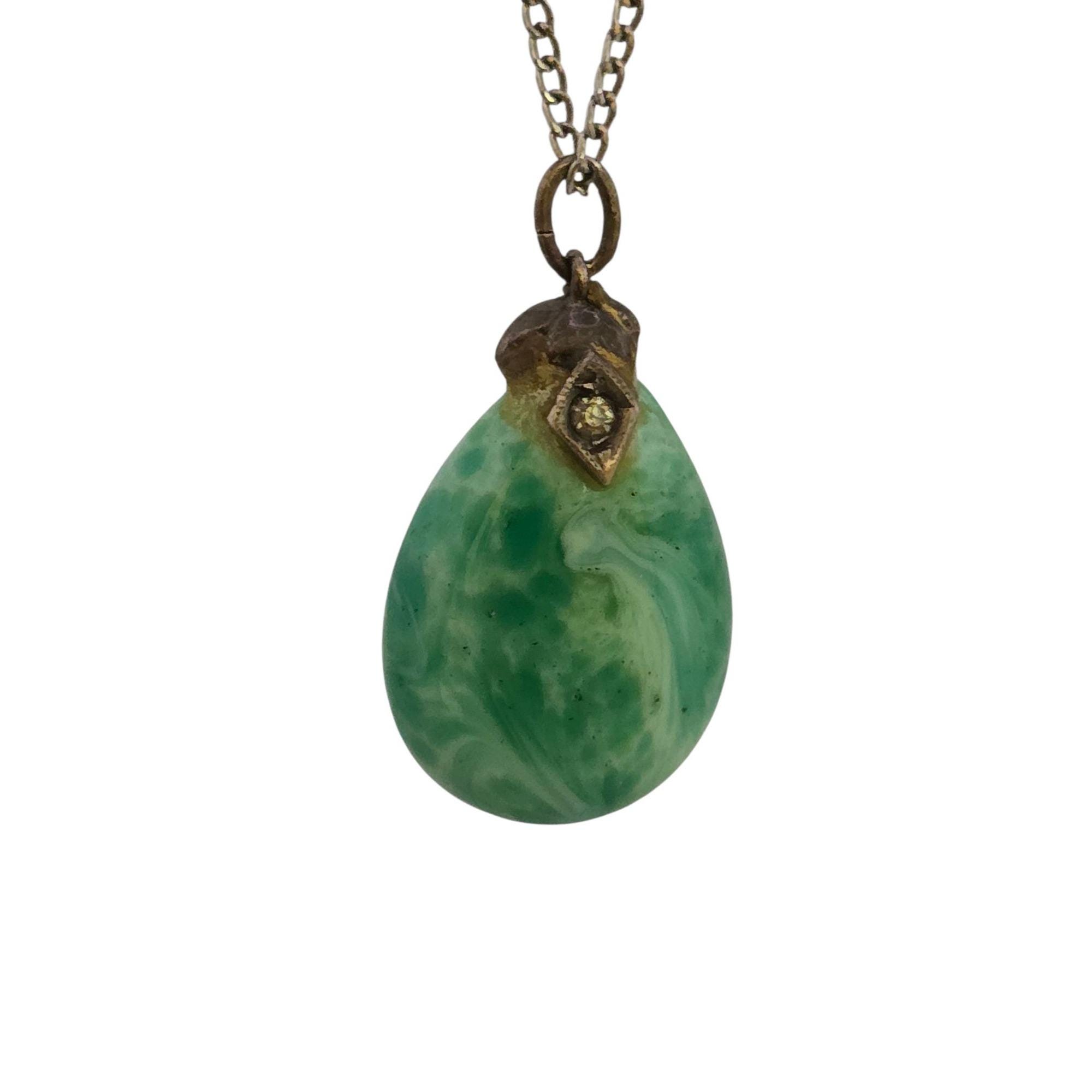 Vintage Glass/Stone Deco Pendant on Chain Necklace (A9124)