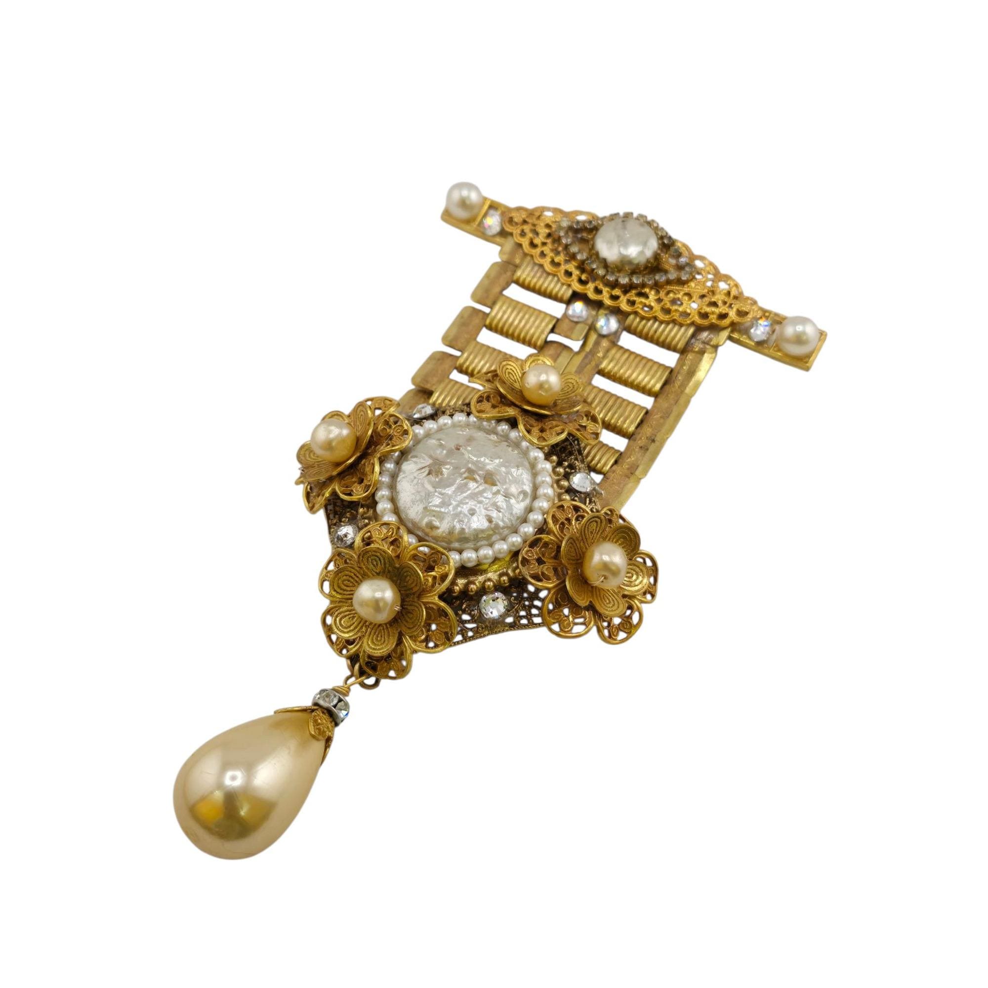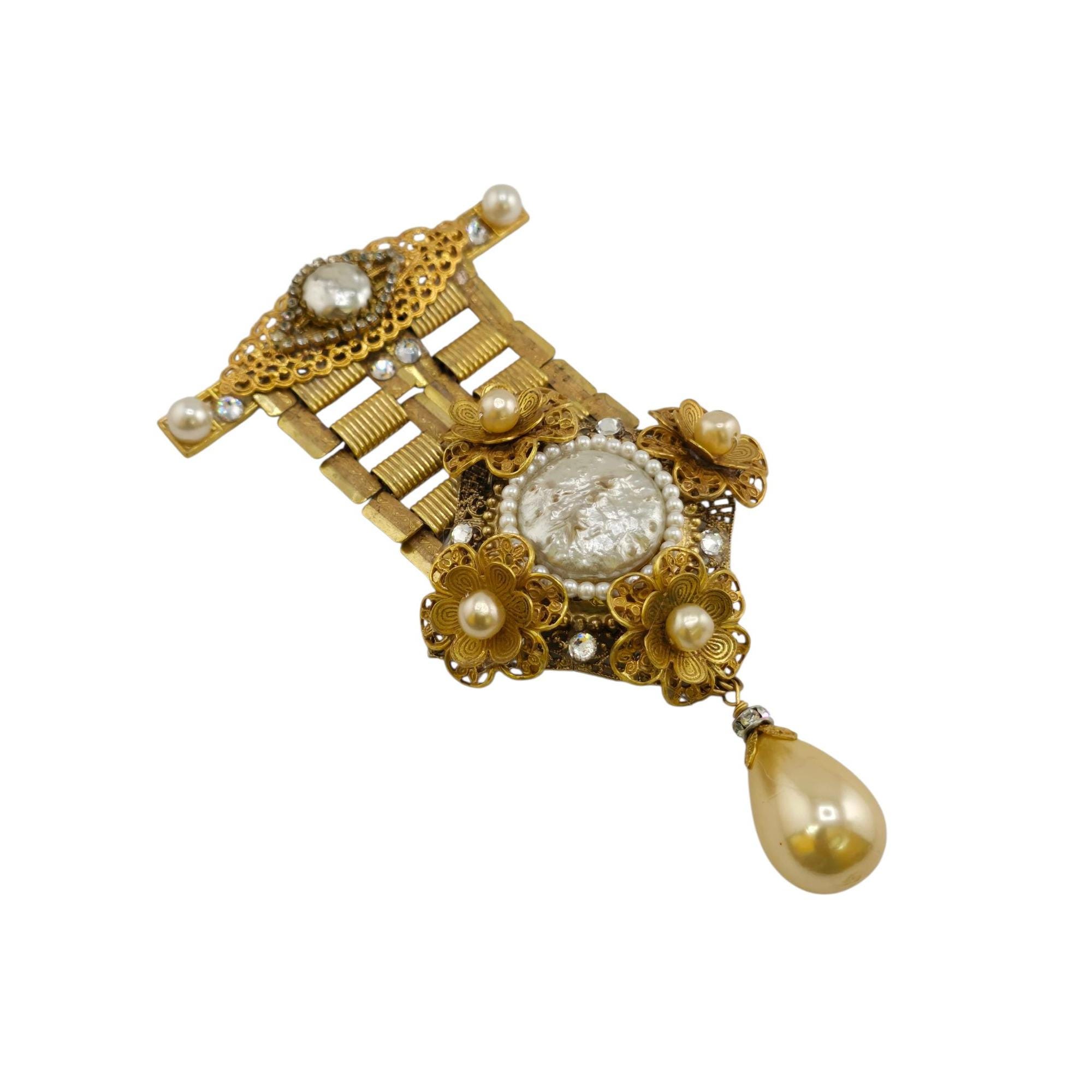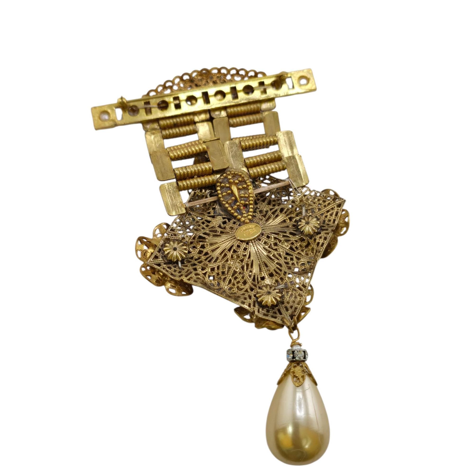 Vintage NOS VRBA Pearl and Rhinestone Dangle Brooch (A9200)