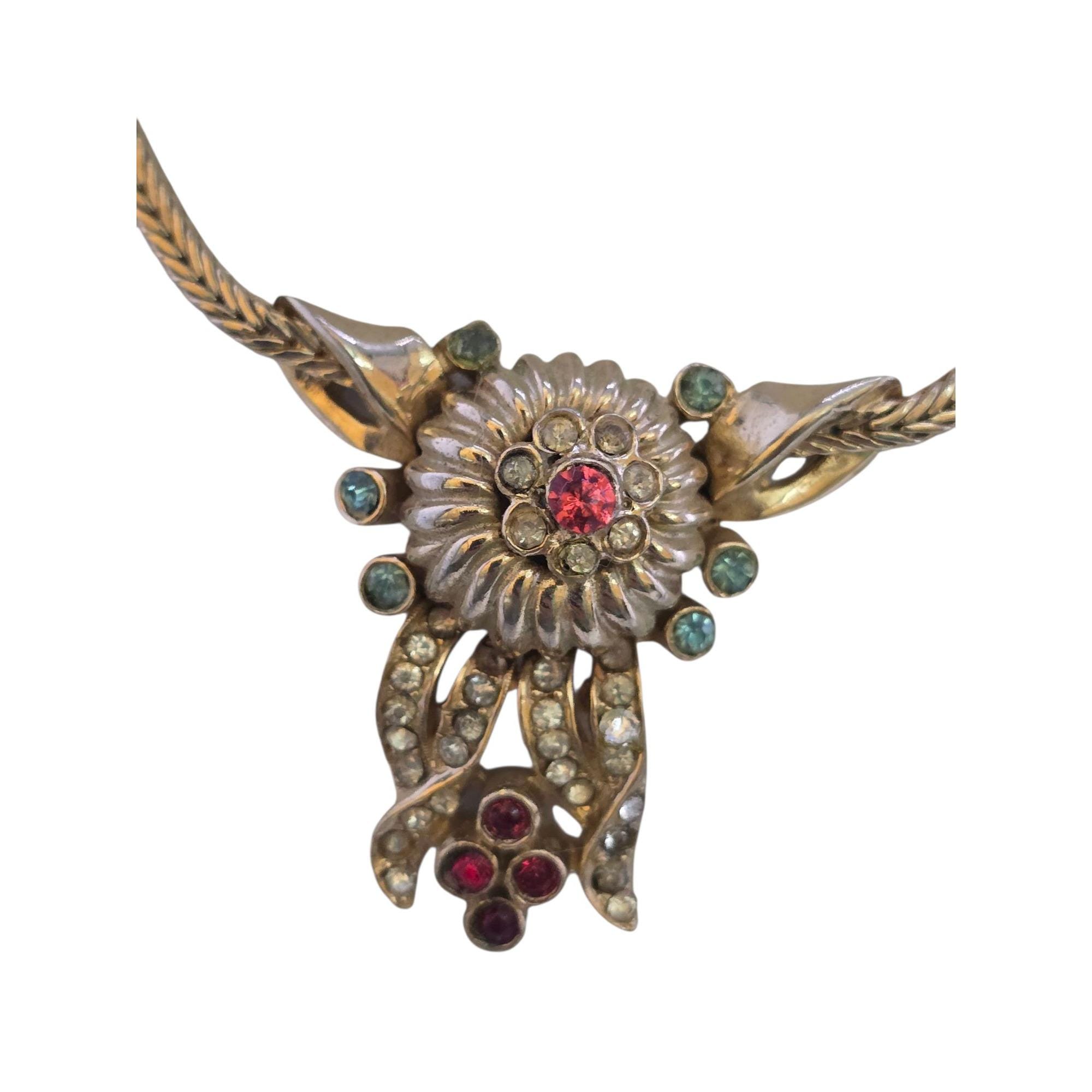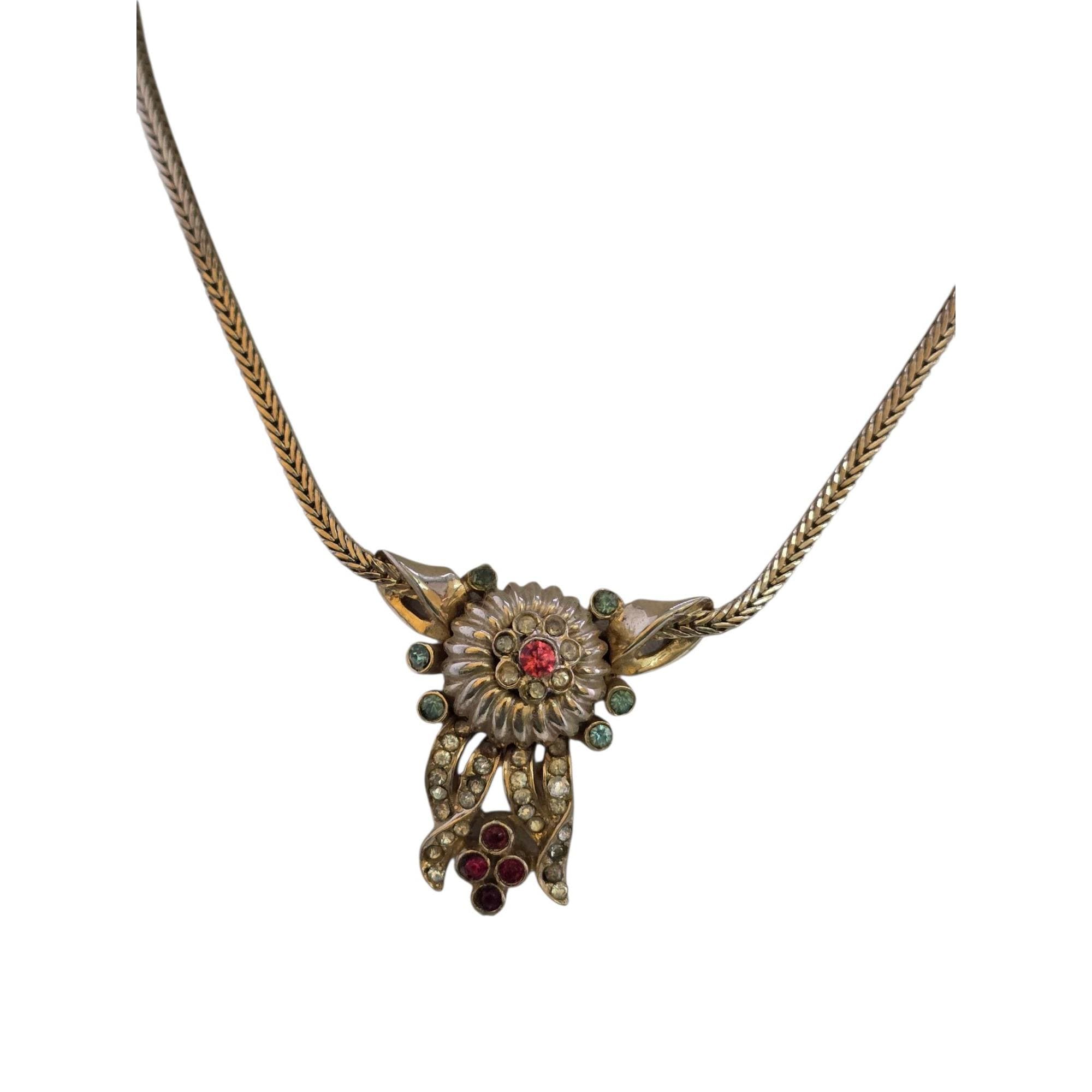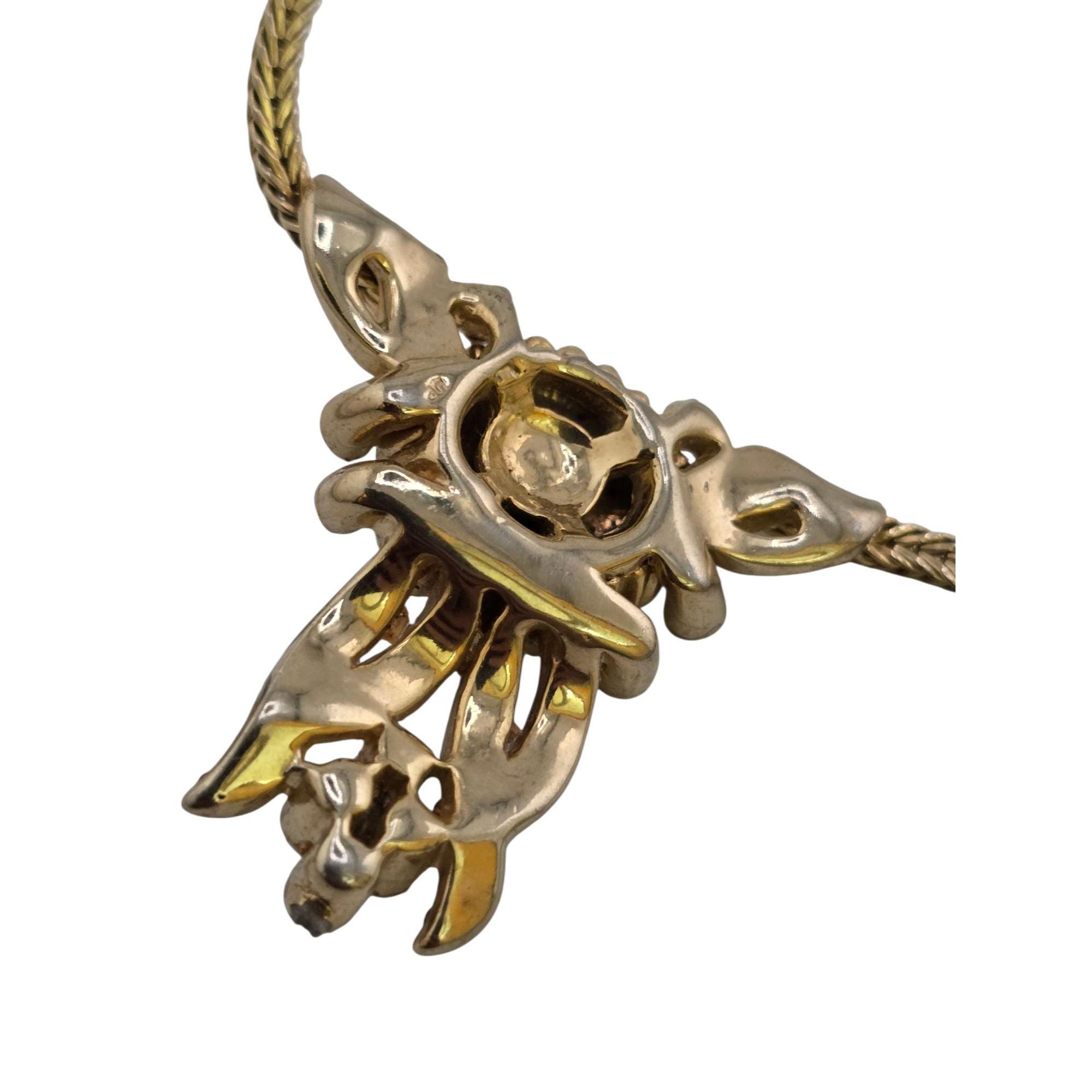Vintage Well Made Rhinestone Pendant on Foxtail Chain Necklace (A9207)