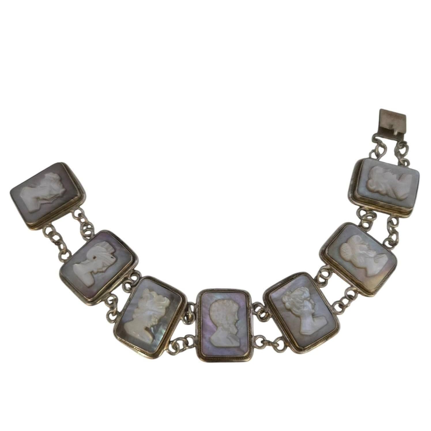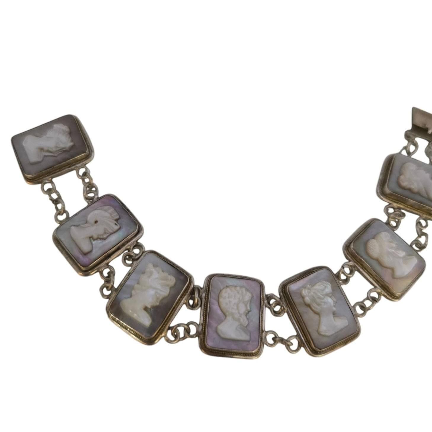 Vintage Raised Abalone Shell Cameo/Silhouette 800 Silver Bracelet (A7668)