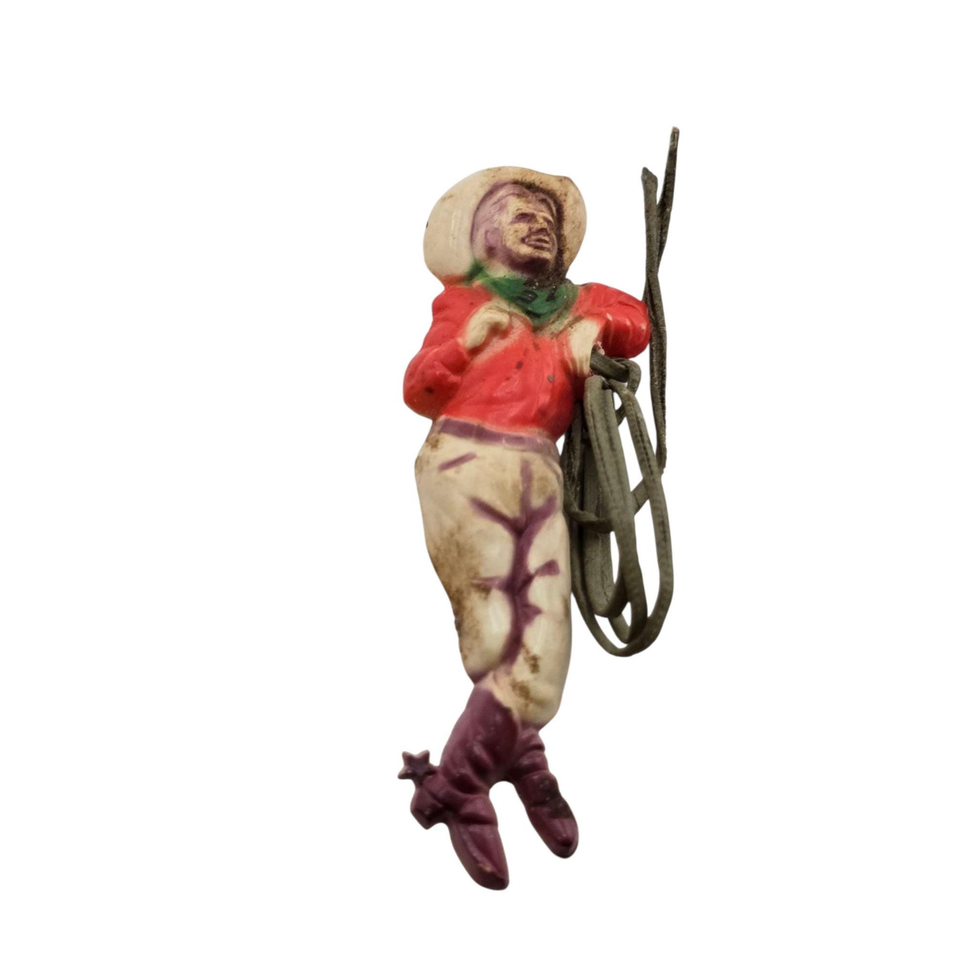 Vintage Celluloid Western Man with Rope Brooch (A9144)