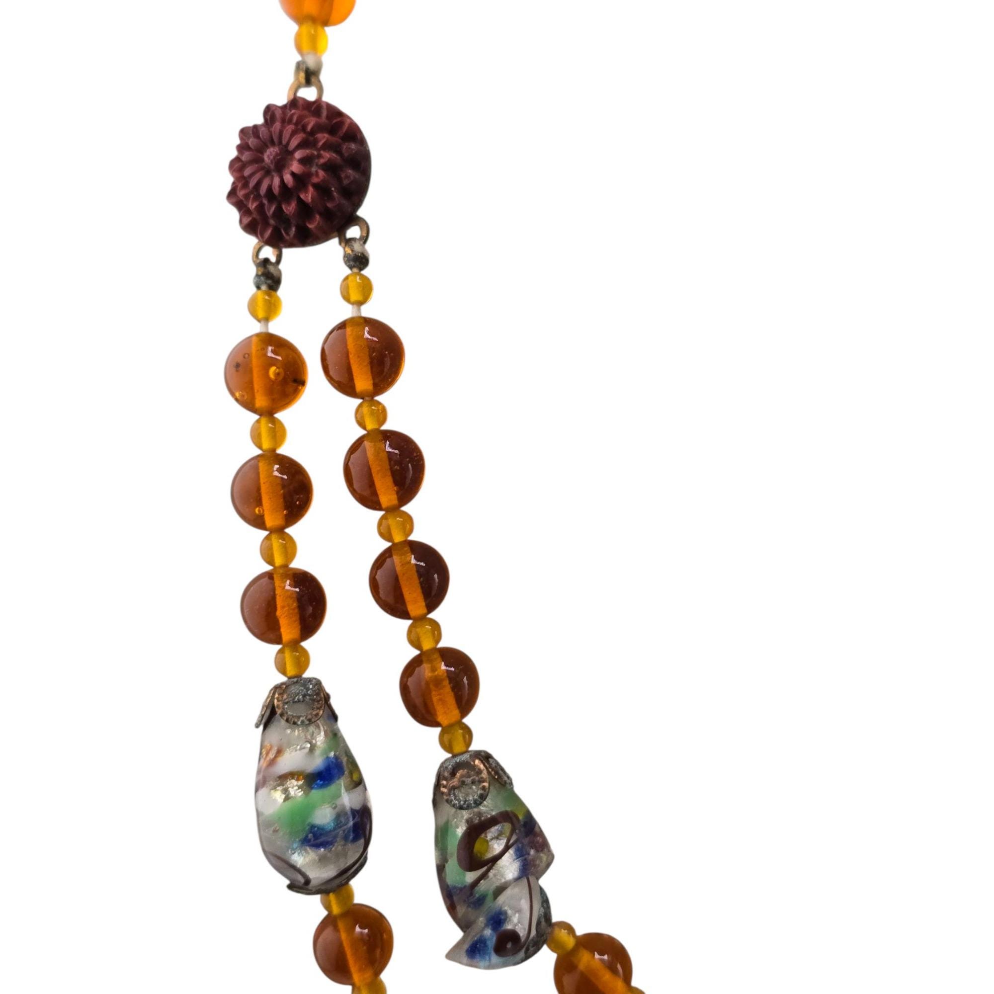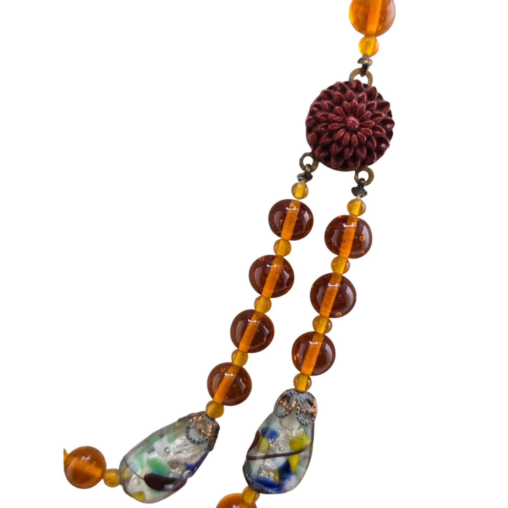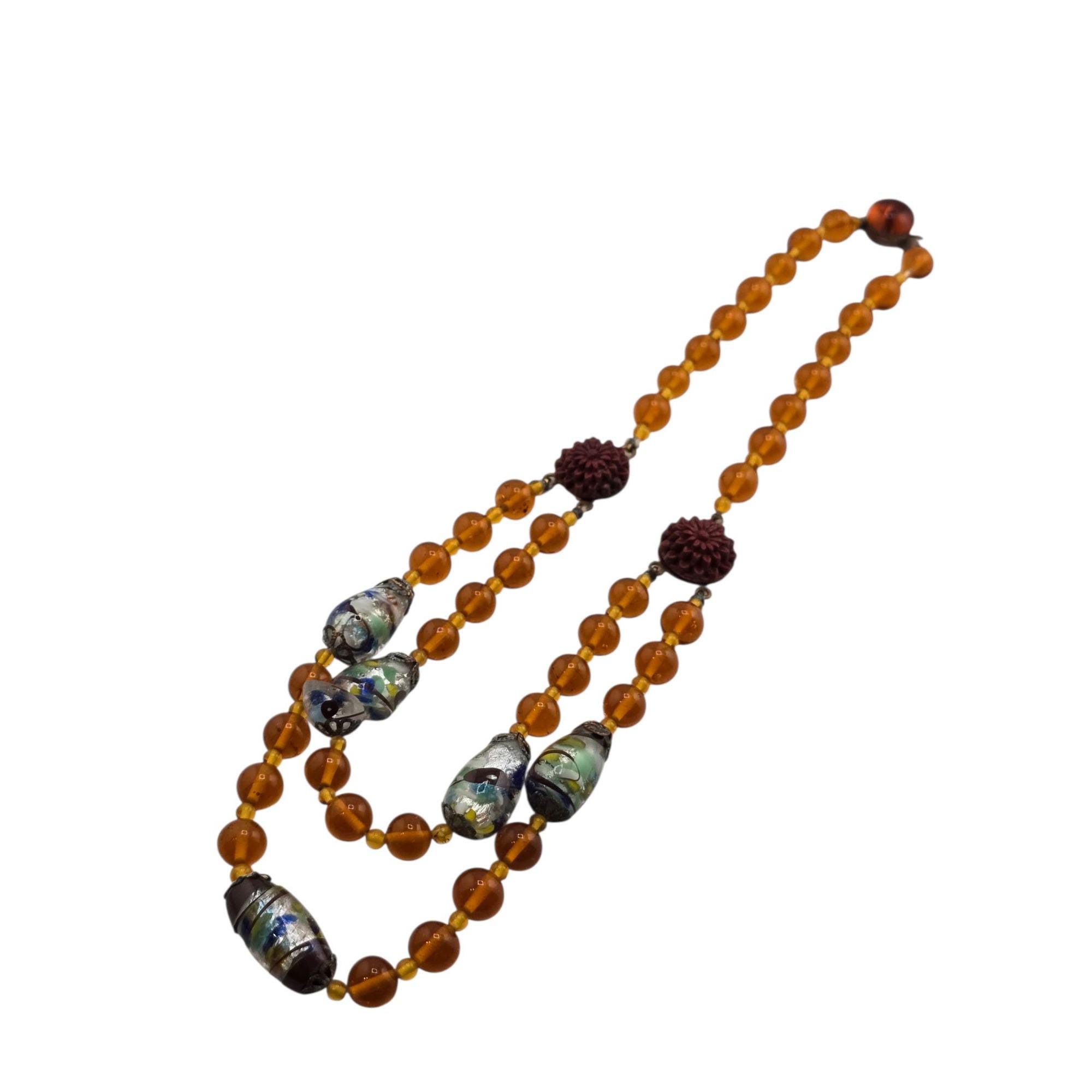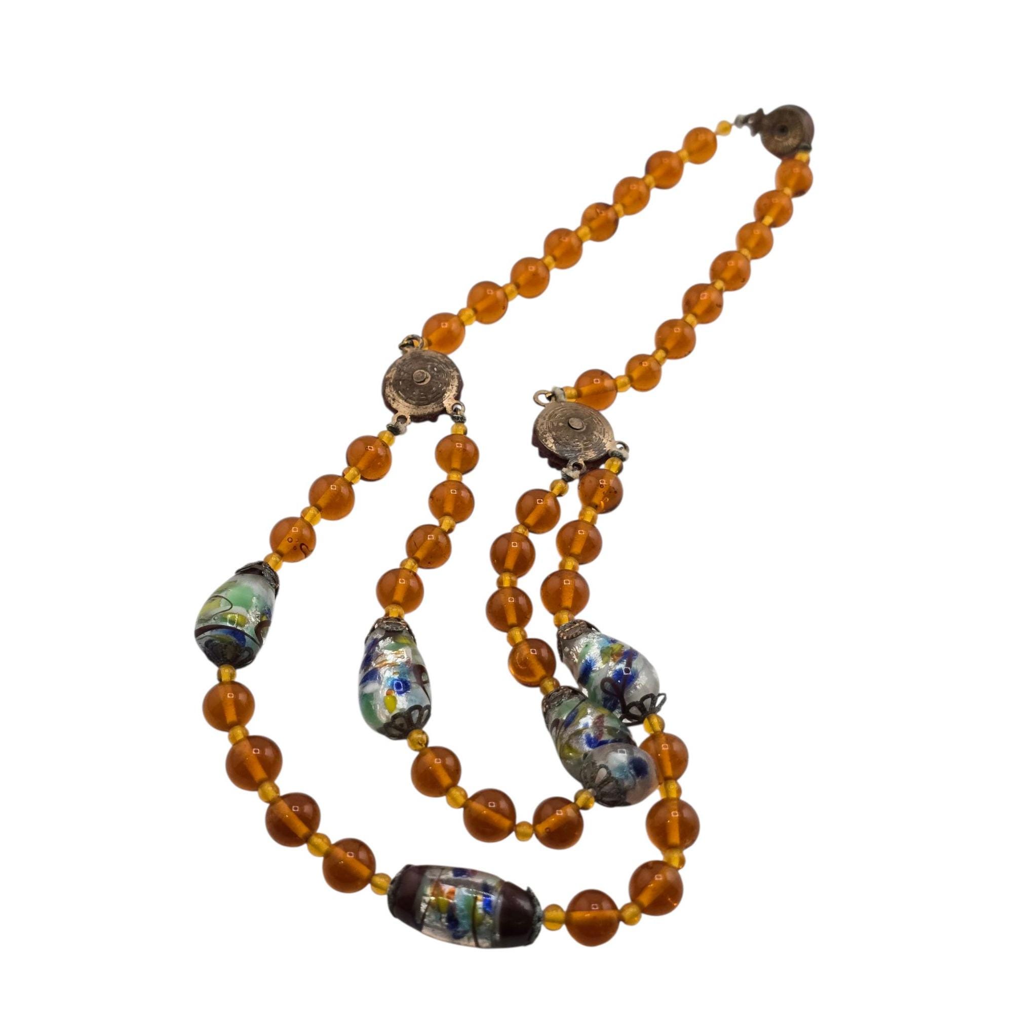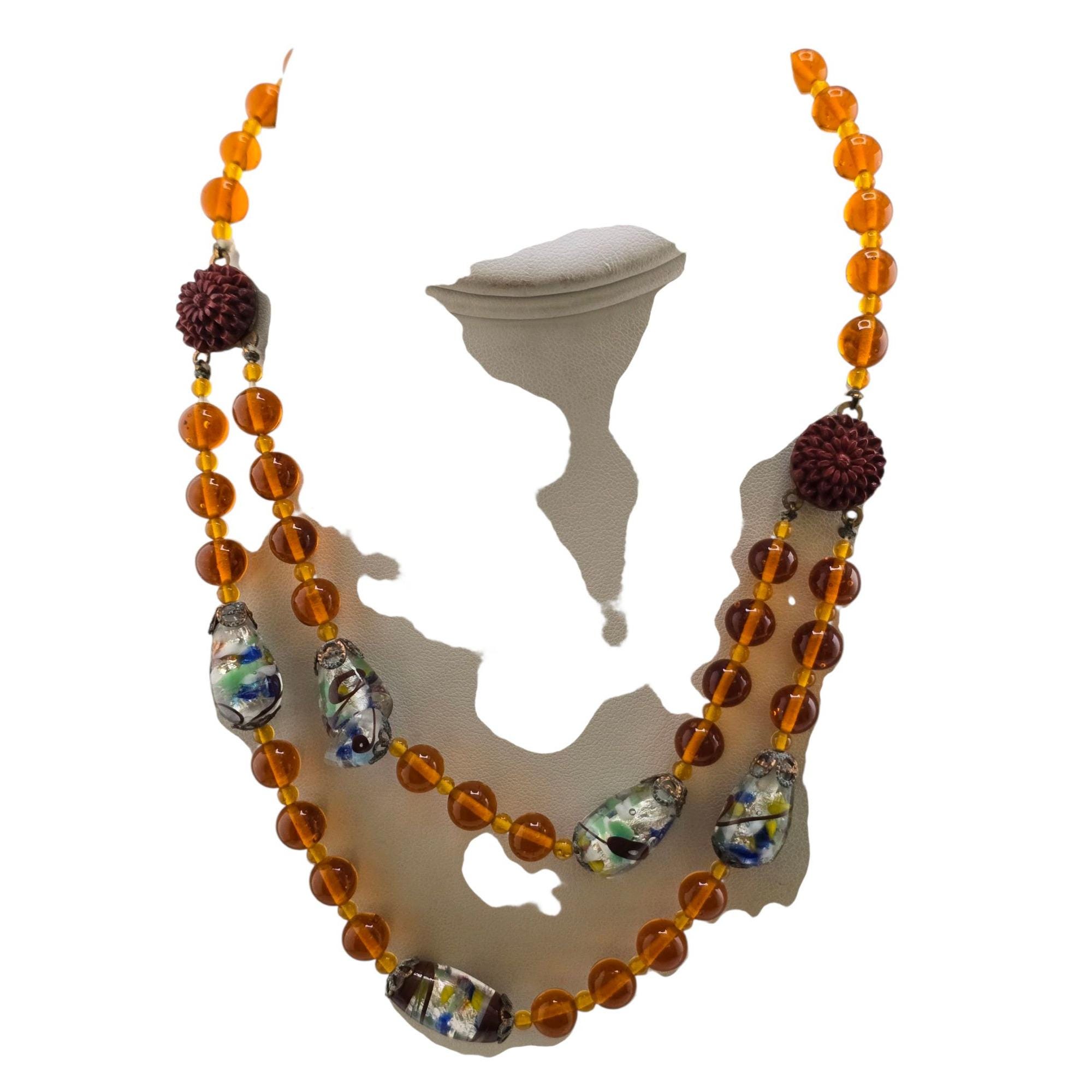 Antique Beautiful All Glass with Fancy Murano and Molded Glass Double Strand Necklace (A9159)