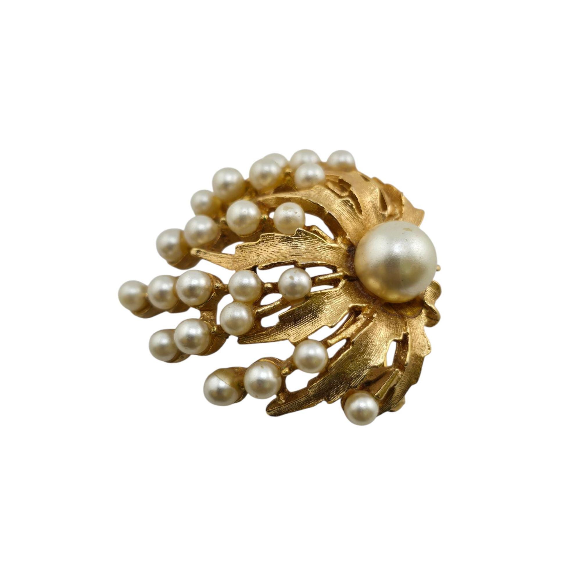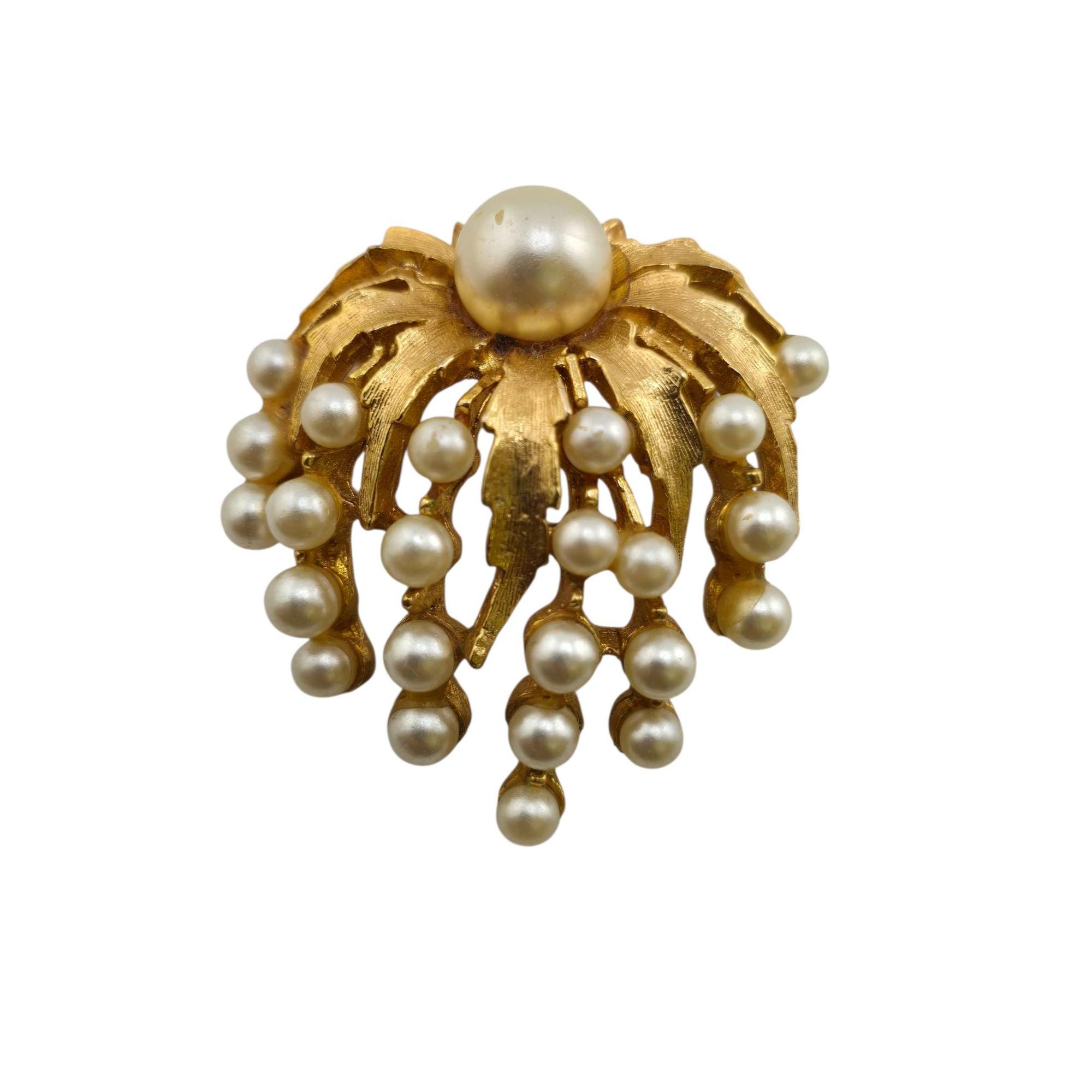 Vintage Signed Art Arthur Pepper Pearl & Matte Gold Brooch (A9151)