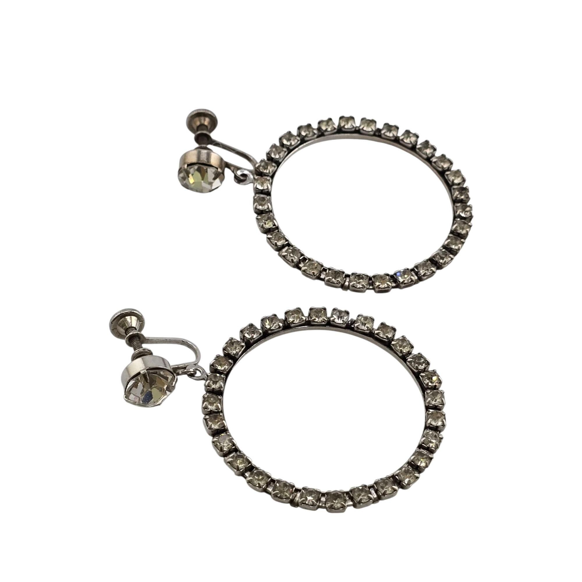 Vintage Early Rhinestone Hoop Earrings (A9153)