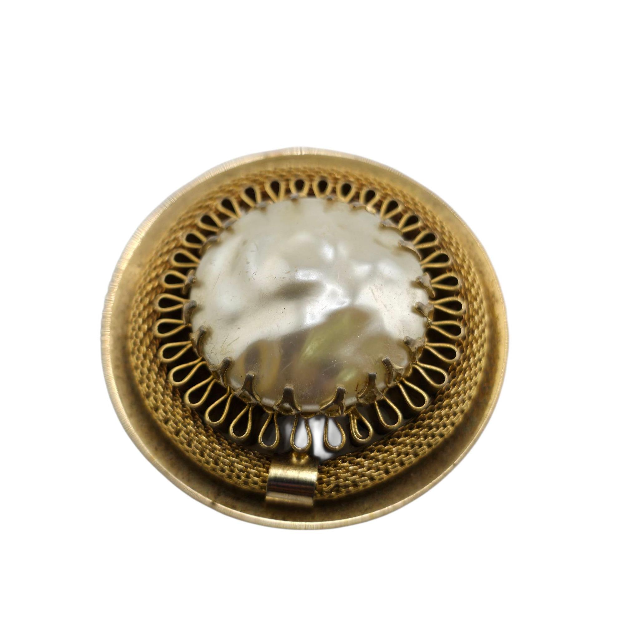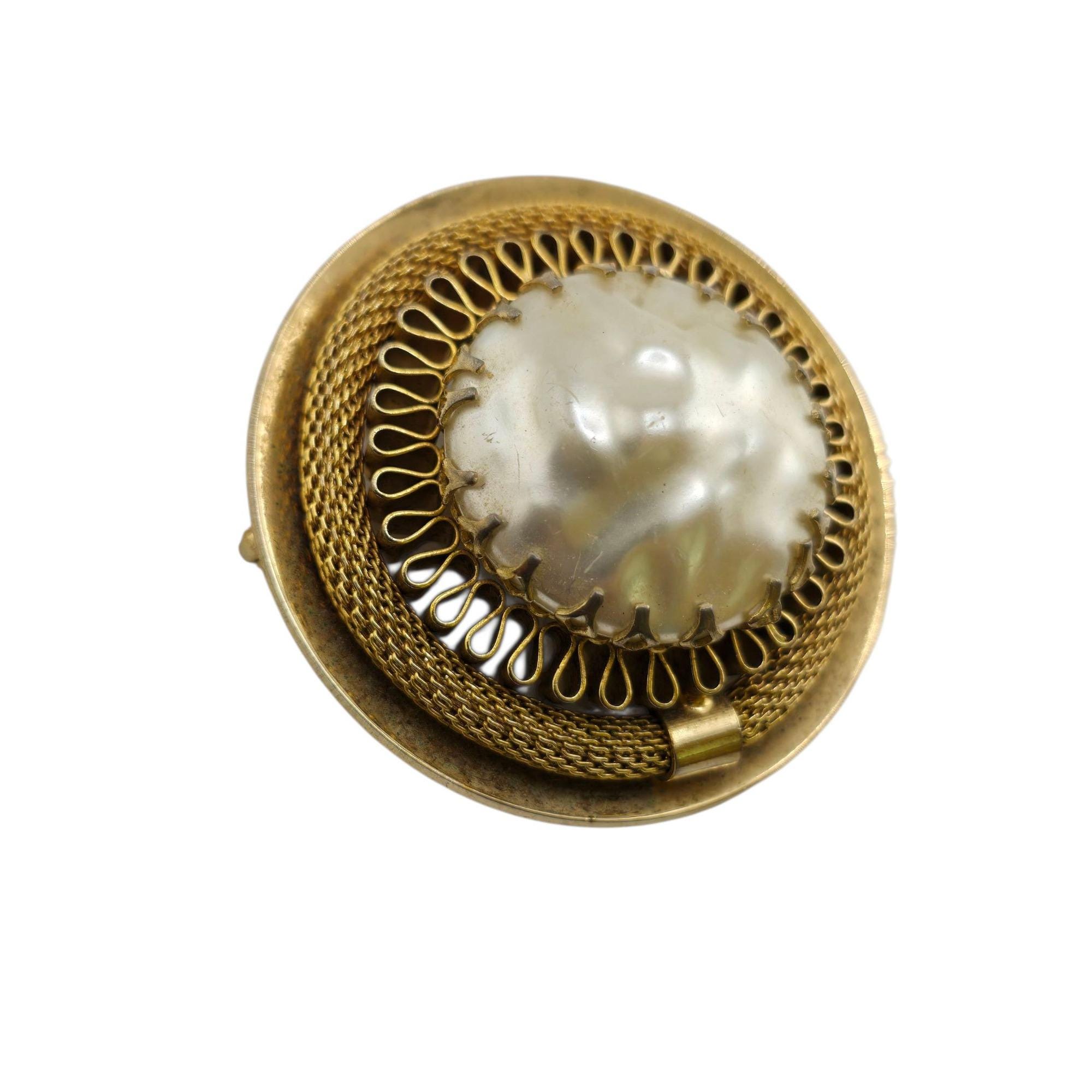 Vintage Faux Pearl and Mesh Circle Brooch (A9155)
