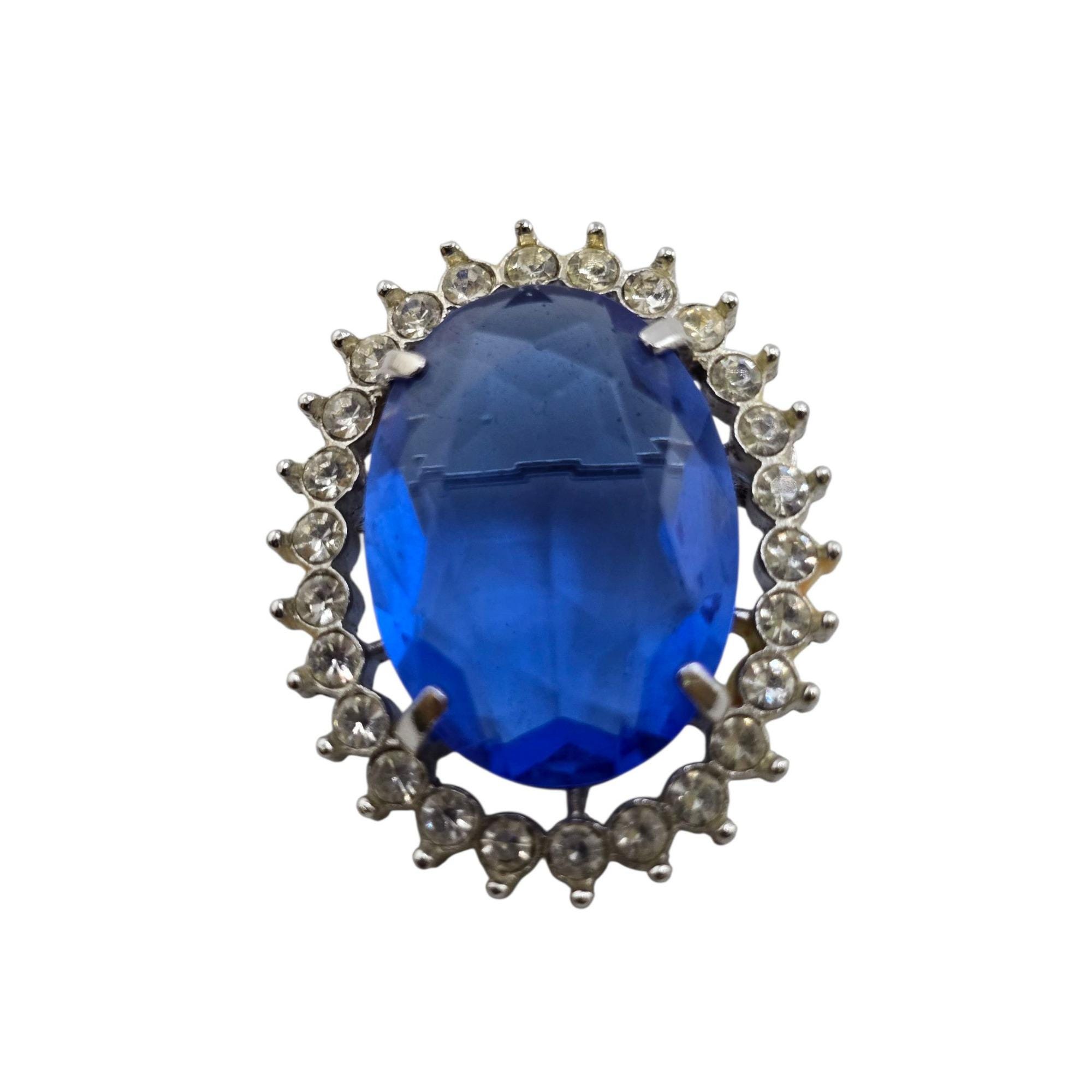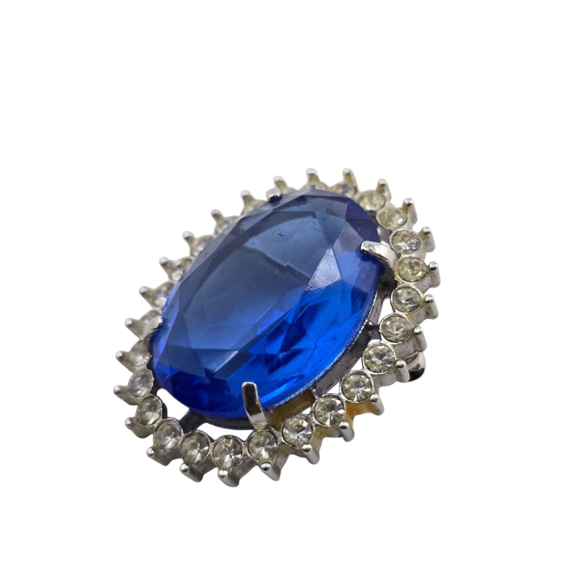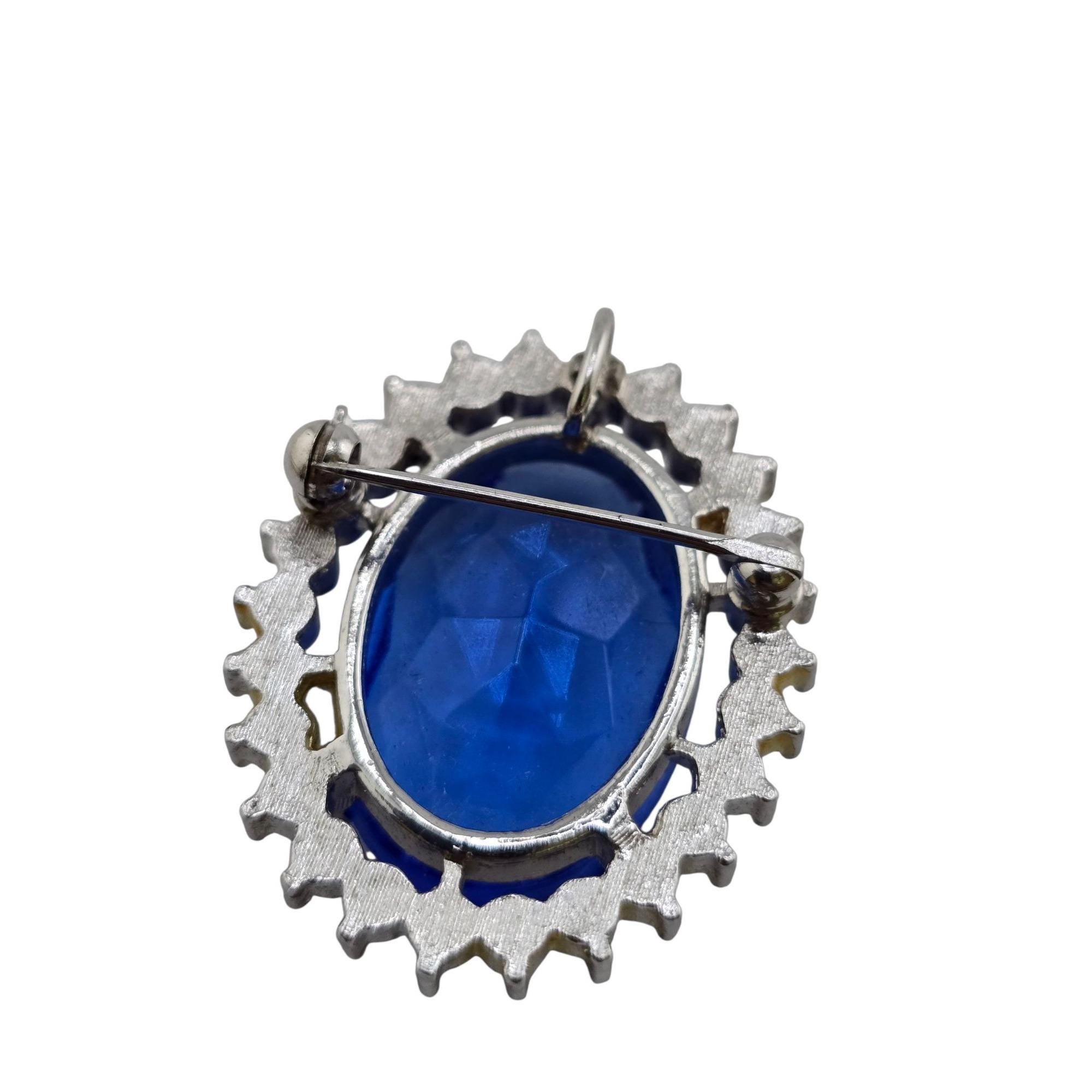 Vintage Faceted Glass Stone & Rhinestone Fancy Brooch/Pendant (A9157)