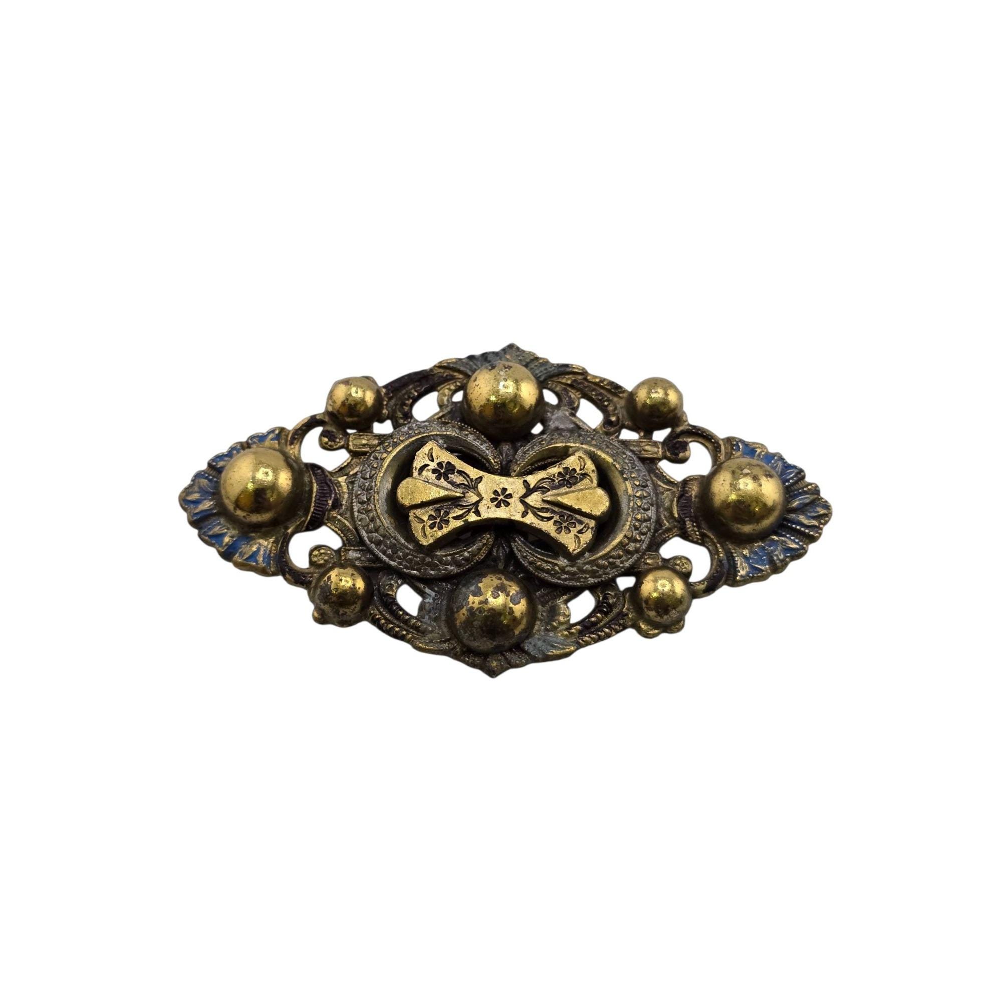 Antique Victorian Brass & Enamel Sash Brooch (A9170)