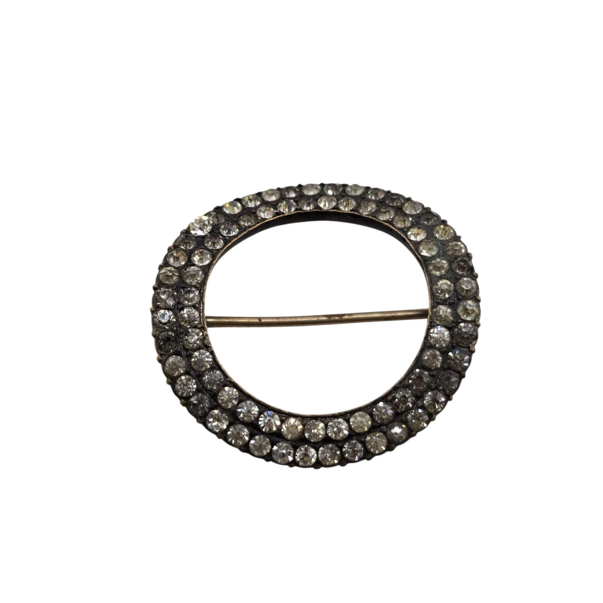 Details: 1 replaced stone and some dark and dead stones. Very heavy curved brooch, c-clasp, and very well made.