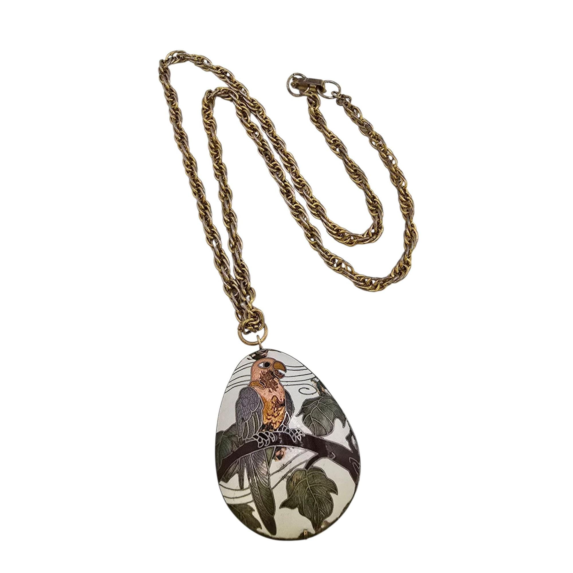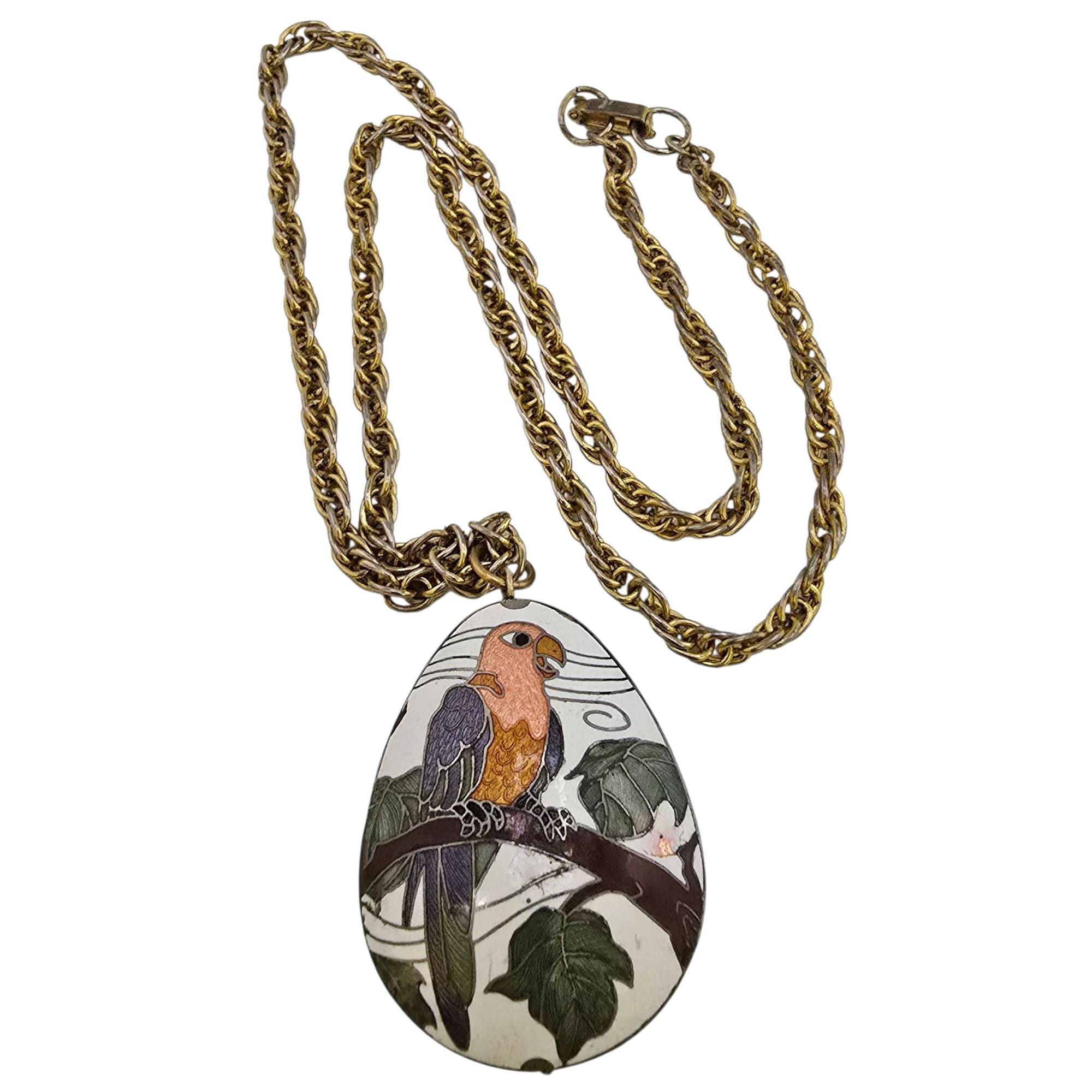 Vintage Parrot Cloisonné Double-Sided Pendant on Rope Chain Necklace (A9184)