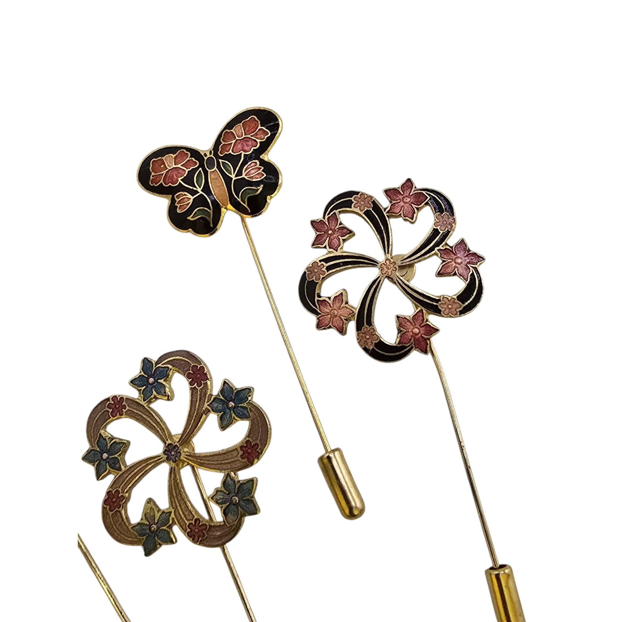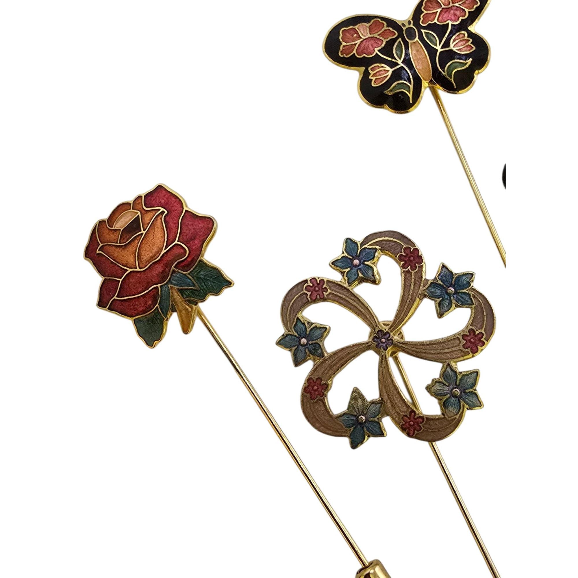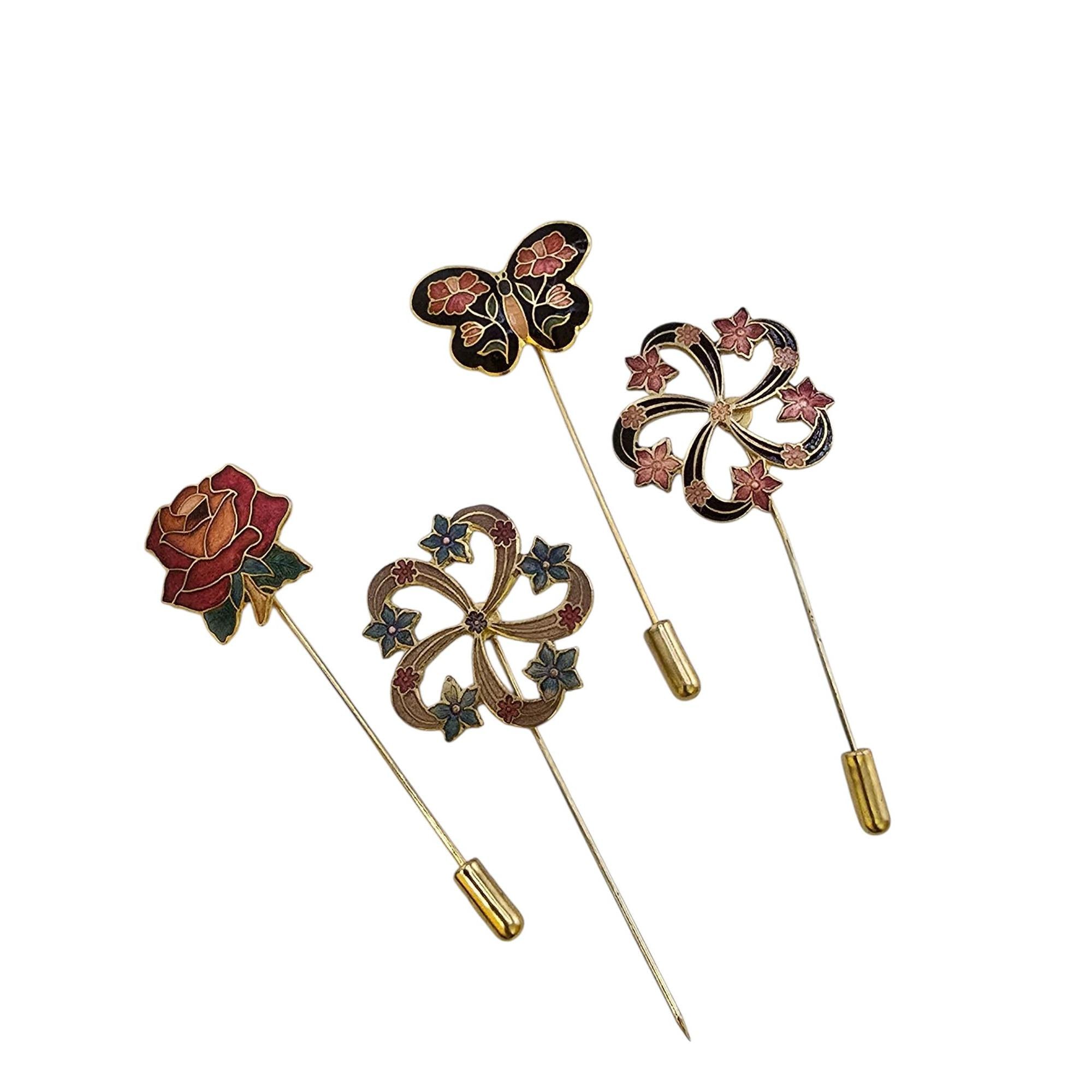 Vintage Lot of 4 Cloisonné Stick Pins (A9199)