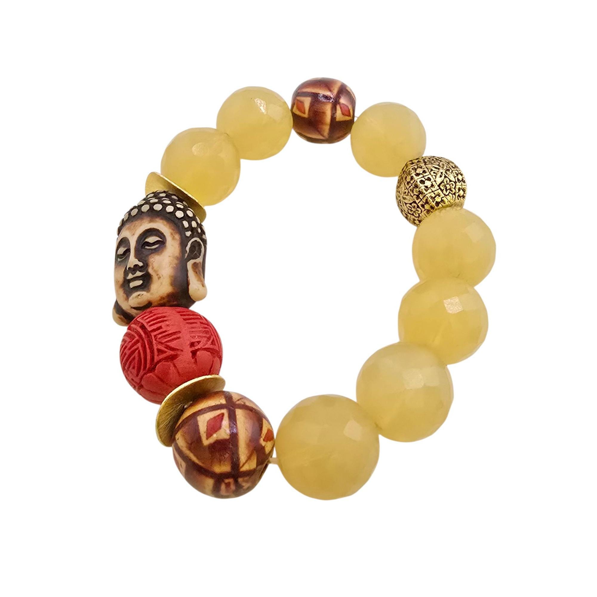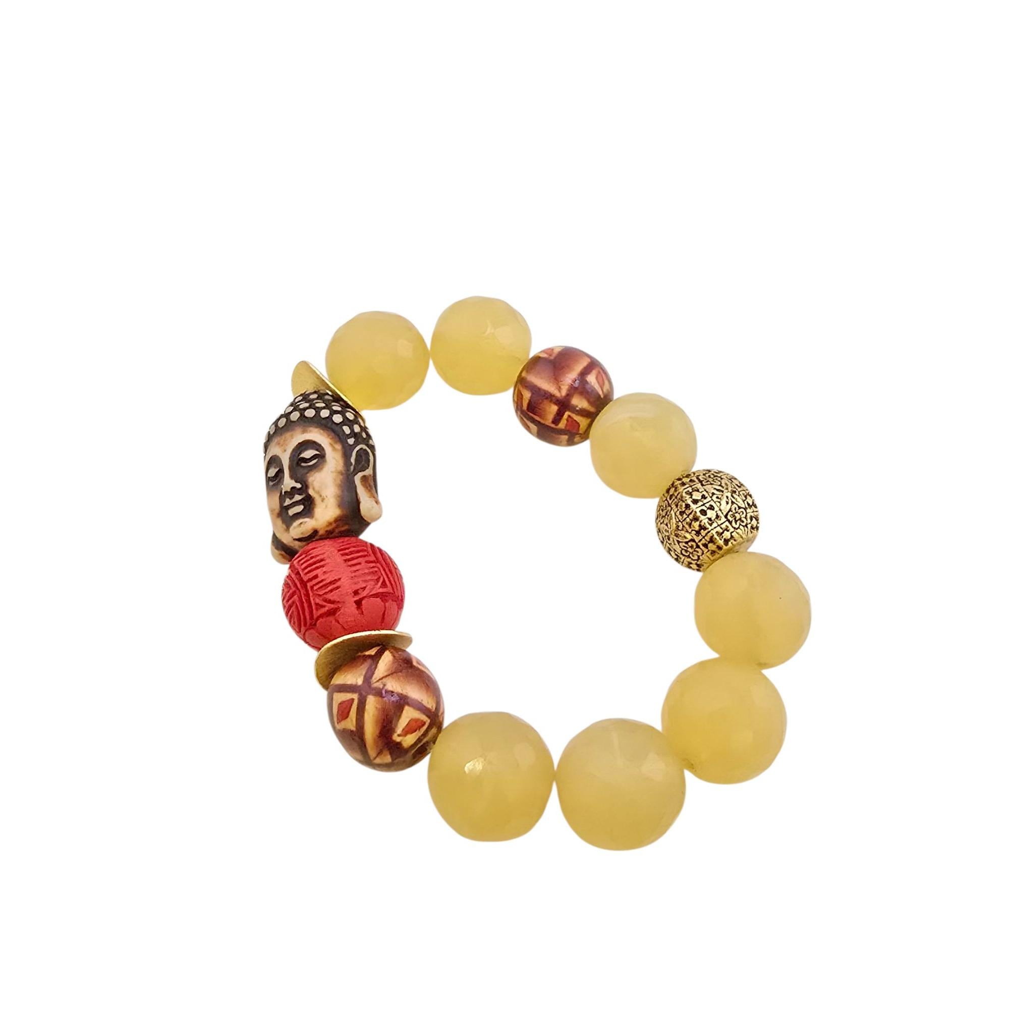 Vintage NOS Bee Charming Buddha Wood & Semi Precious Beaded Stretch Bracelet (A9212)