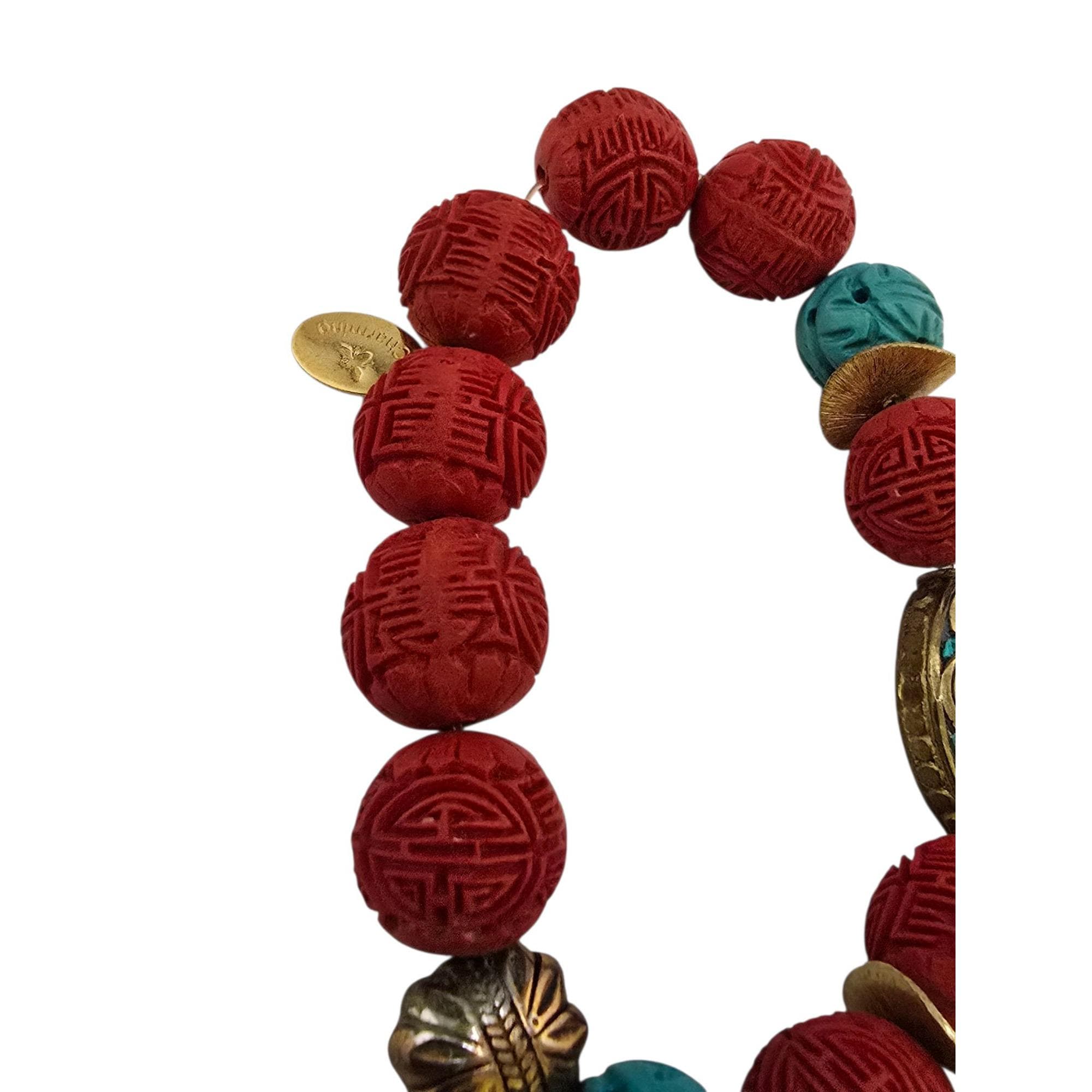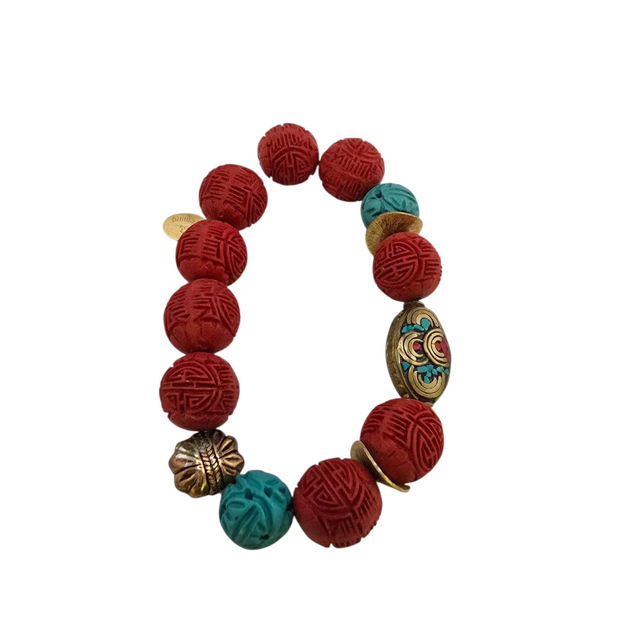 Vintage NOS Bee Charming Cinnabar & Bali Beaded Stretch Bracelet (A9213)