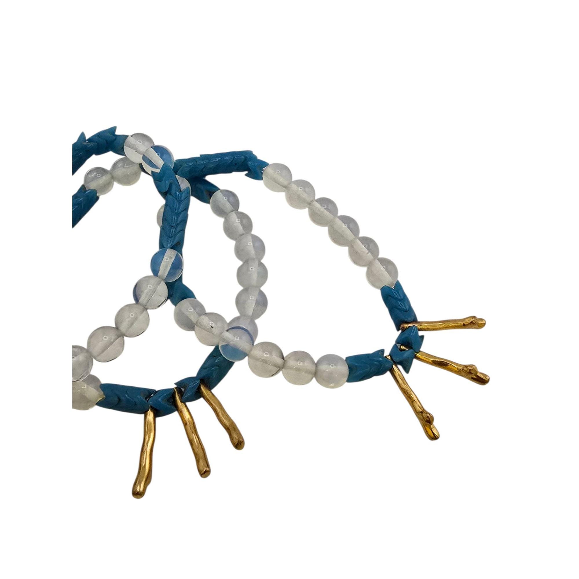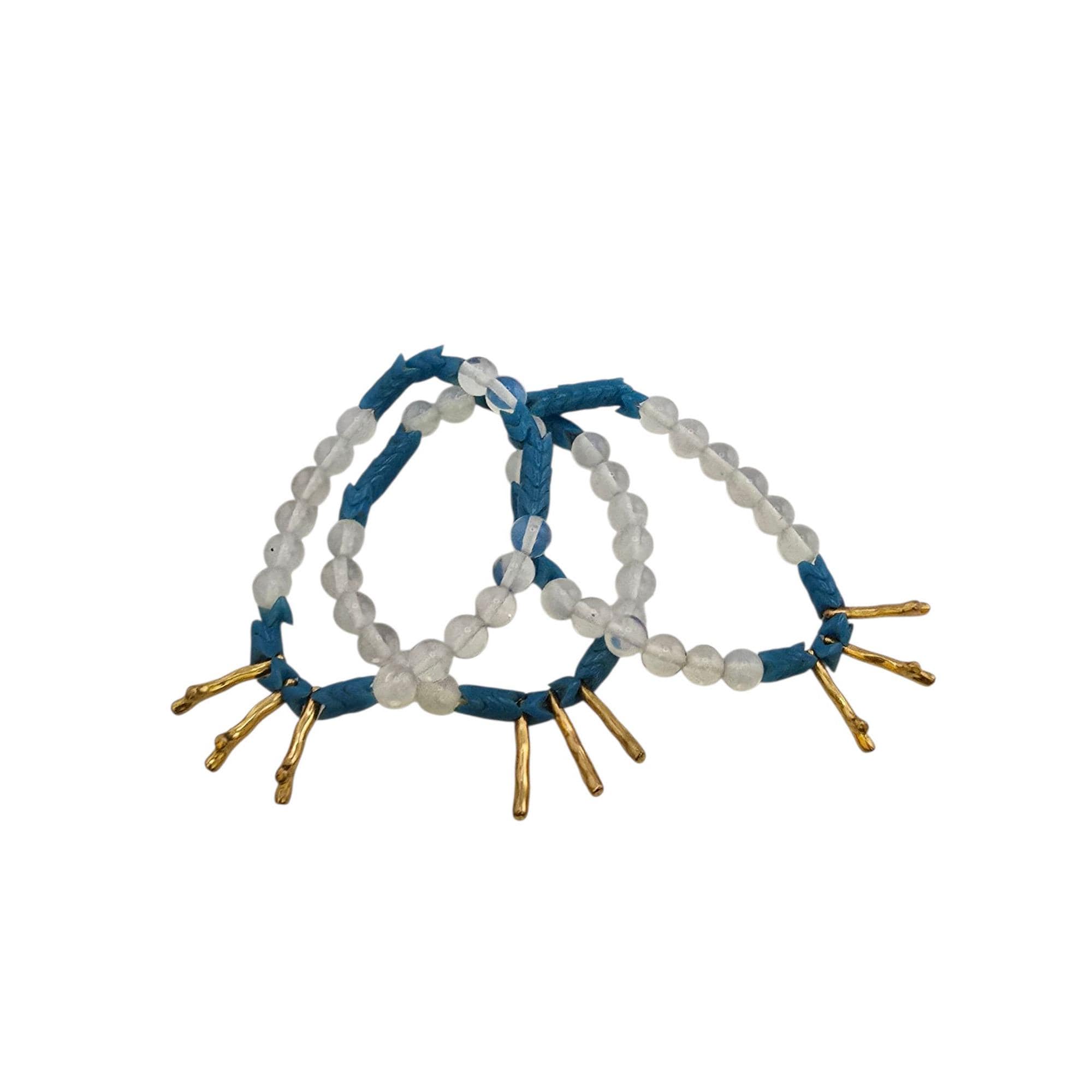 Vintage NOS Bee Charming Glass & Metal Gold Branches Beaded Stretch Bracelet Set of 3 (A9214)