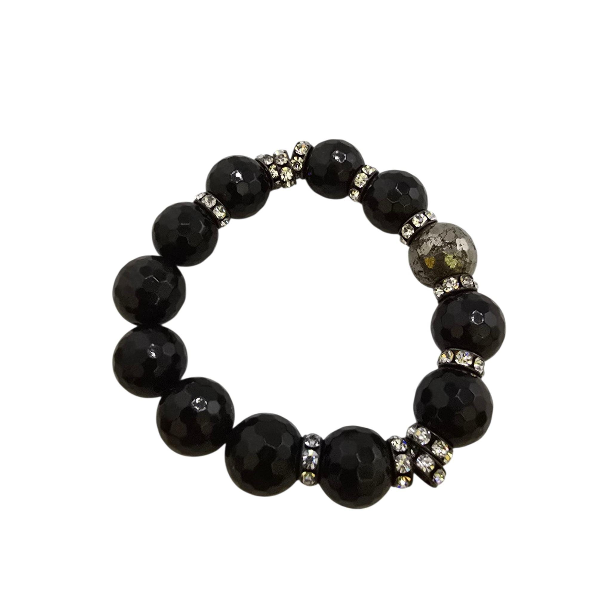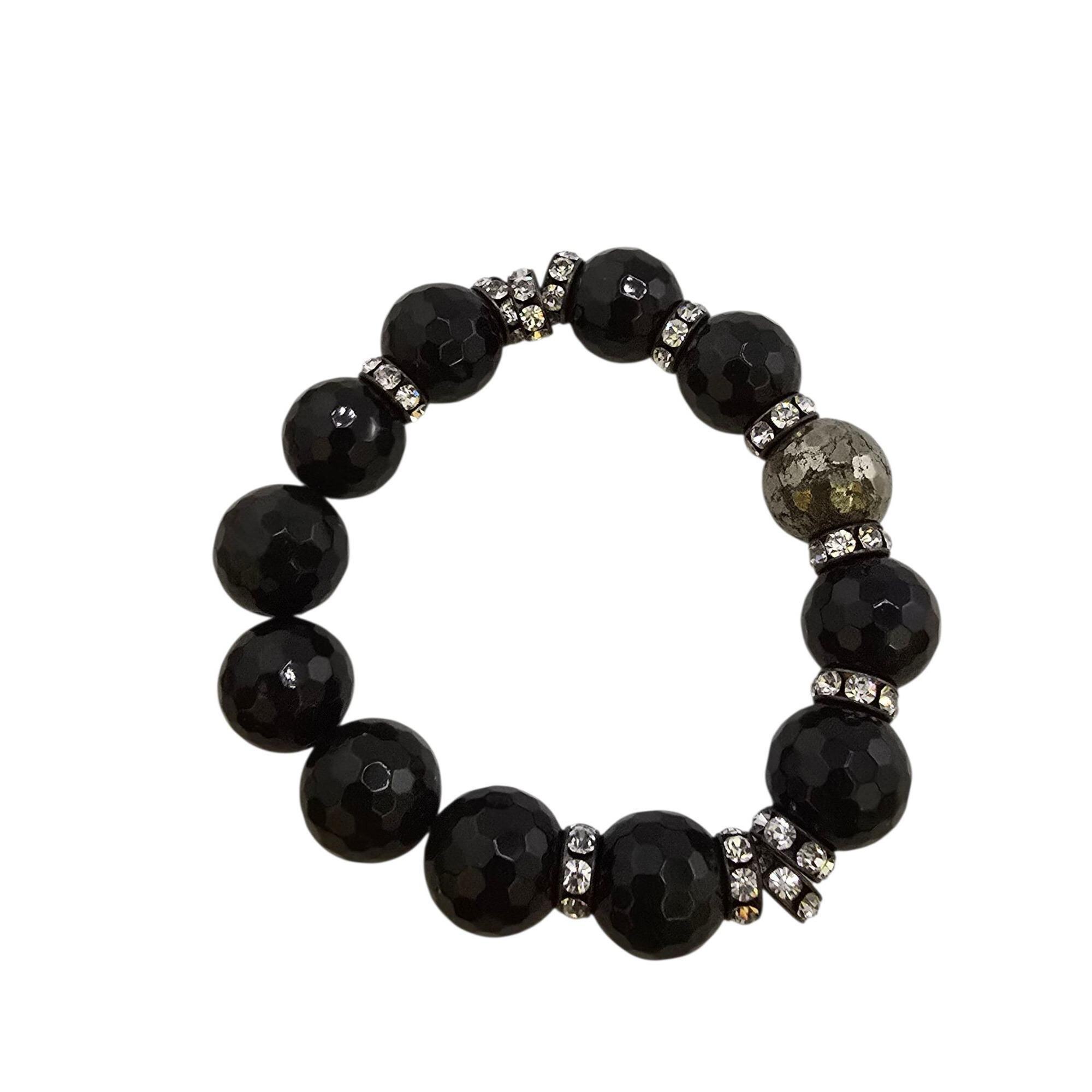 Vintage NOS Bee Charming Pyrite, Rhinestone and Semi Precious Beaded Stretch Bracelet (A9215)